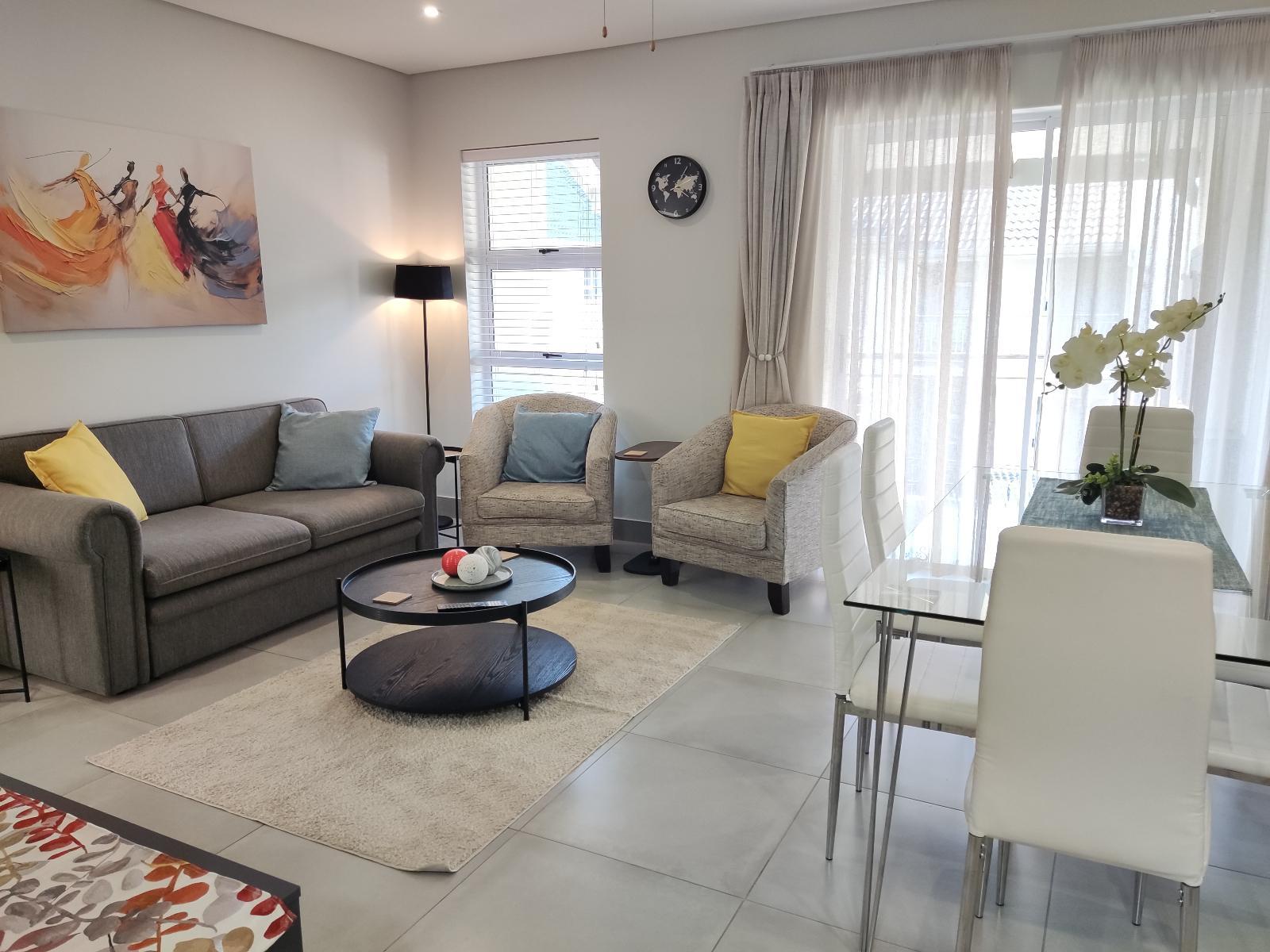 Welcome to 1 On York, a stylish holiday apartment located in the secure and scenic heart of George, South Africa. Perfect for families or a group of friends, this modern retreat accommodates up to six guests with three beautifully appointed bedrooms and two bathrooms. 1 On York offers a serene escape surrounded by nature and convenience. The unit features a stylish living area with a 50-inch TV offering Netflix, and a fully equipped kitchen complete with a dishwasher, washing machine, and tumble dryer. The open-plan design extends to a private balcony, where you’ll find a built-in braai, and a dining table for four, ideal for outdoor relaxation. The unit also boasts a private courtyard for washing, storage, and outdoor gear, all within a secure, 24/7 monitored complex. The three bedrooms offer flexibility with king/twin beds, hotel-grade linen, and remote-controlled wall fans in all rooms for added comfort. The en-suite bedroom features a shower only, while the other two rooms share a second bathroom with a shower and bathtub. Dimmable touch LED wall lamps with three brightness settings add a modern touch to each space. Nestled in the scenic town of George, the gateway to the breathtaking Garden Route, the apartment is just a short distance from the majestic Outeniqua Mountains and pristine Atlantic beaches. A Go George bus station and George Airport, only seven minutes away, ensure seamless travel.