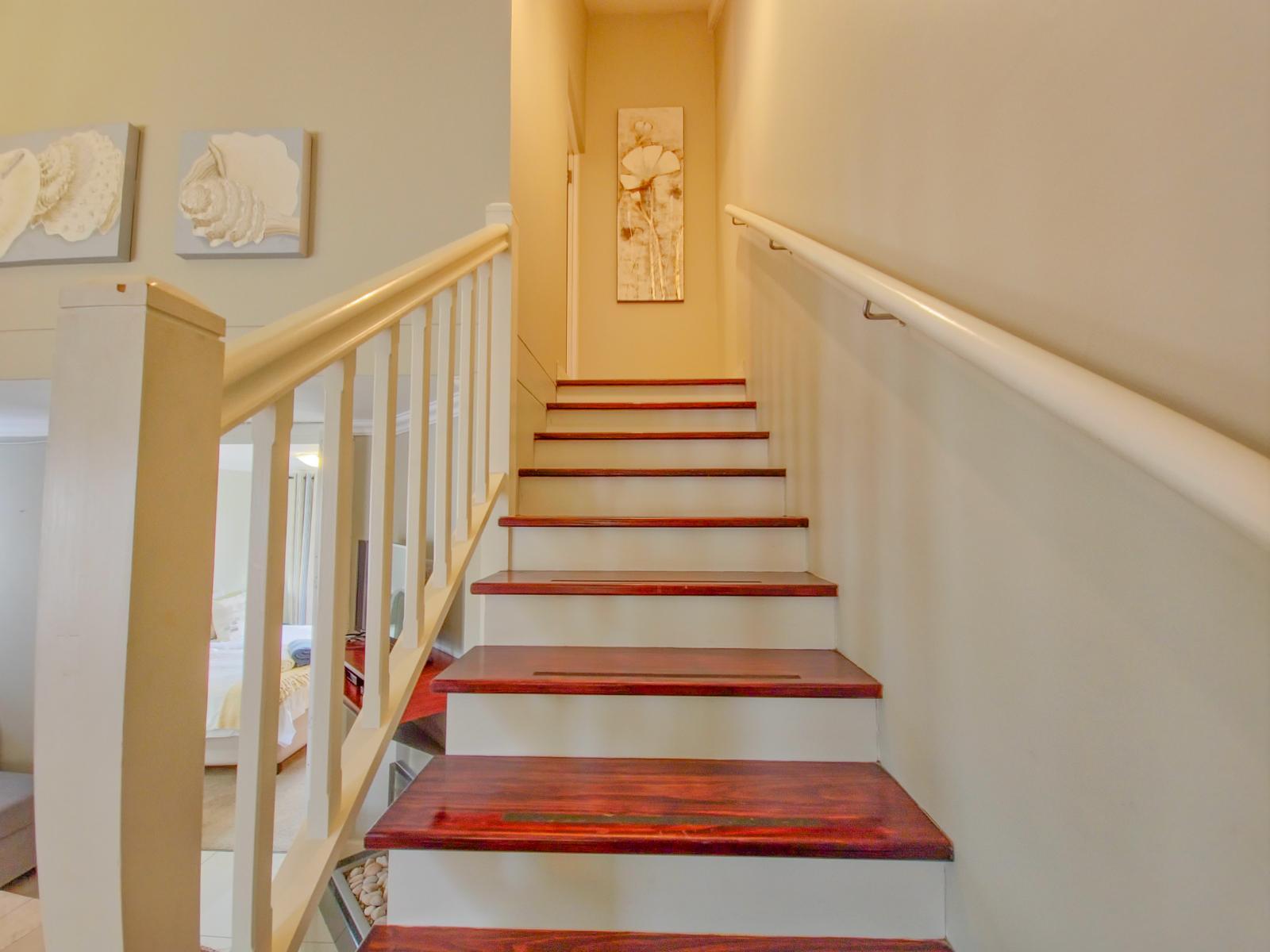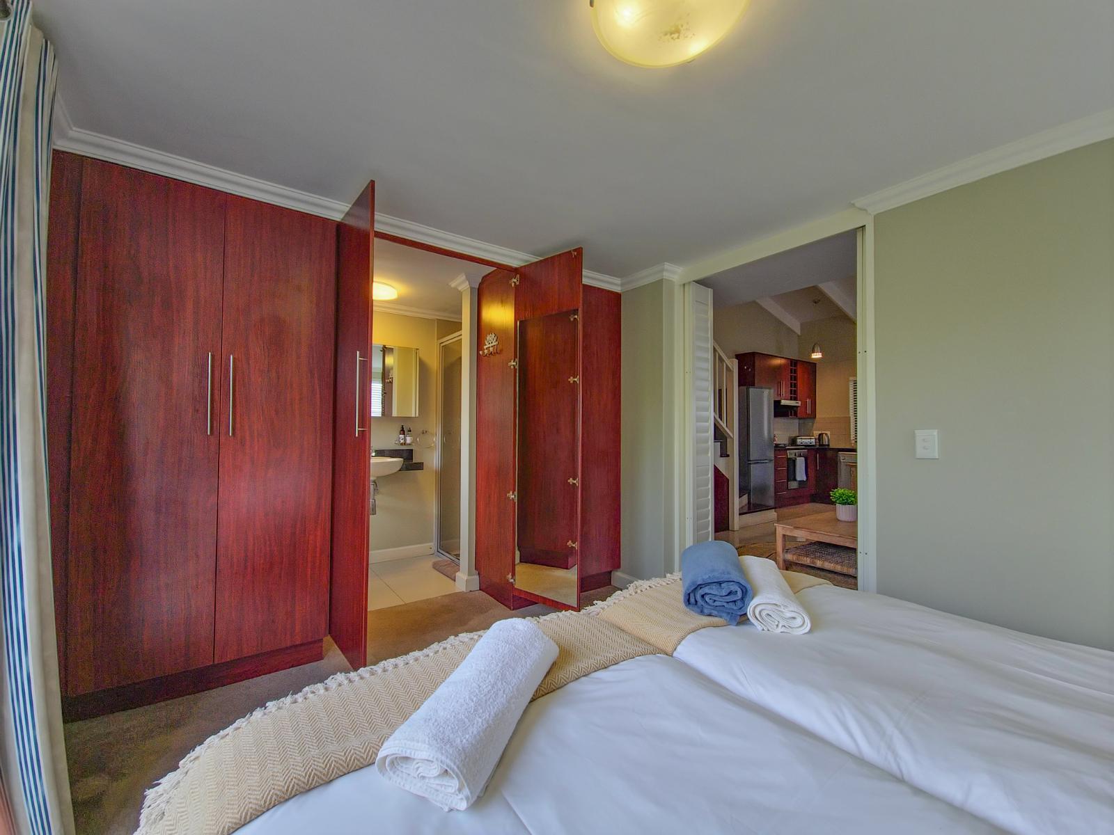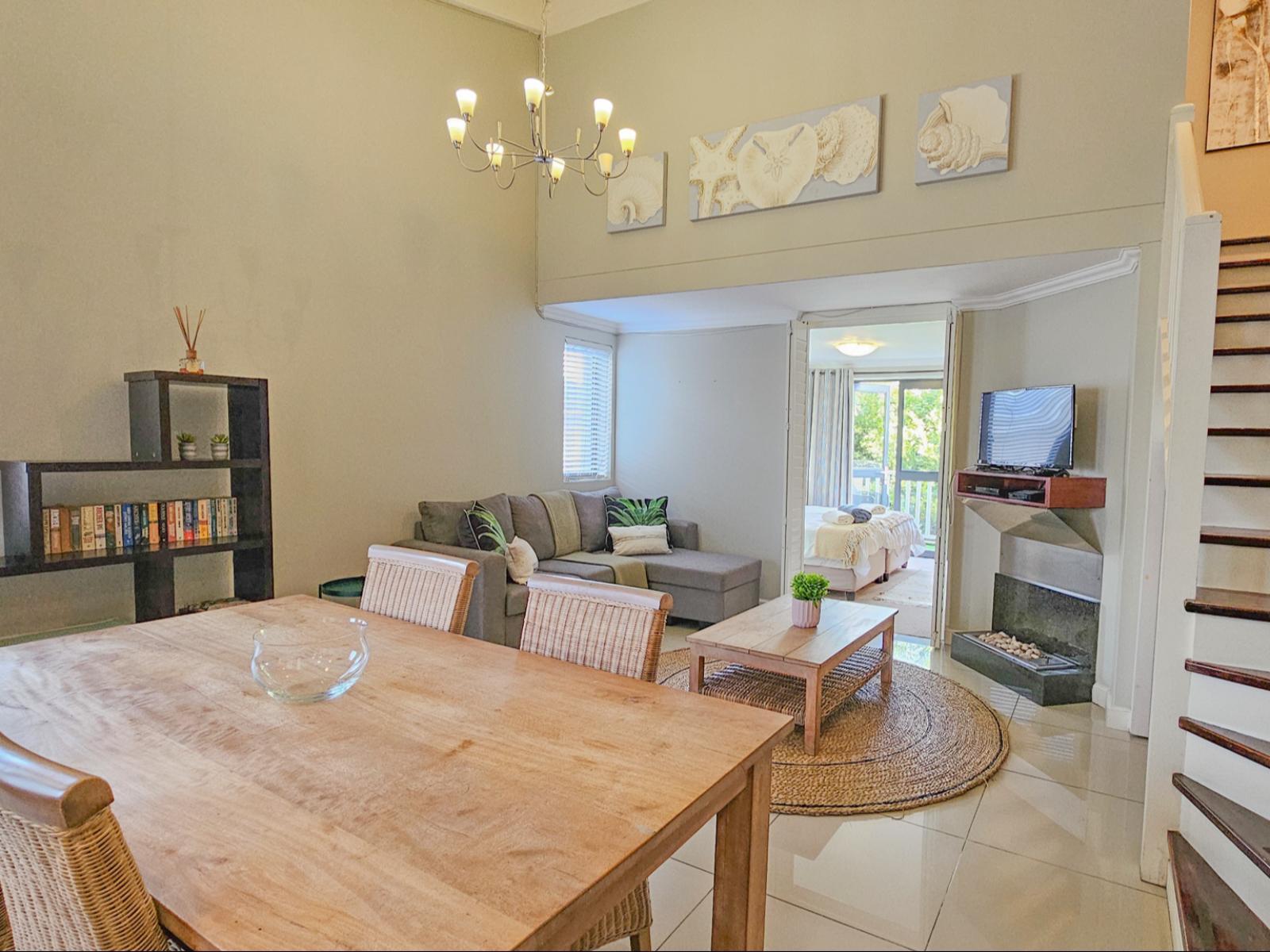 Perfectly positioned just one block from the Knysna Waterfront and within easy walking distance of the town centre, this stylish duplex apartment offers both convenience and comfort. Whether you're here for a relaxing escape or an active holiday, the location is unbeatable—close to boutique shops, top-rated restaurants, and popular attractions, with everything you need right on your doorstep. Located on the second floor of a secure, access-controlled building, the apartment is set over two levels and features two well-appointed bedrooms, each with its own en-suite bathroom. The upstairs bedroom is air-conditioned, and the second bedroom offers a charming balcony. The open-plan living area is tastefully furnished, and the well-equipped kitchen includes all the essentials for a self-catering stay. Unlimited Wi-Fi is available throughout the apartment, and guests have access to a Smart TV with a Netflix profile. DStv can be activated on request for a small additional fee. A small inverter ensures that the Wi-Fi remains active during loadshedding and allows guests to charge phones and devices without interruption. The apartment also includes a small safety box for peace of mind, and one undercover parking bay is provided behind a secure gate. With its unbeatable location, thoughtful amenities, and warm, inviting interiors, this Knysna apartment is ideal for families, friends, or couples looking to explore the Garden Route in style and comfort.