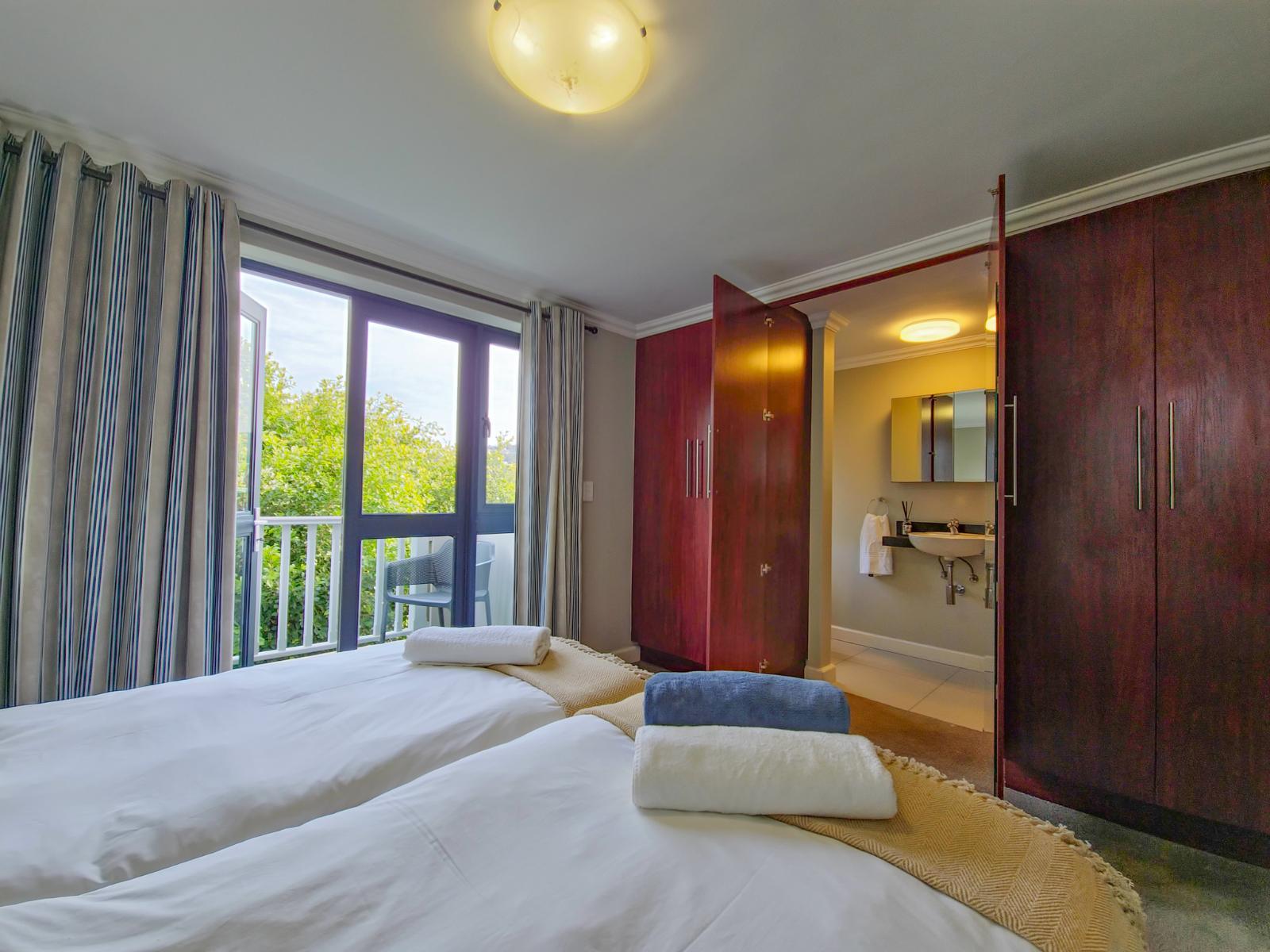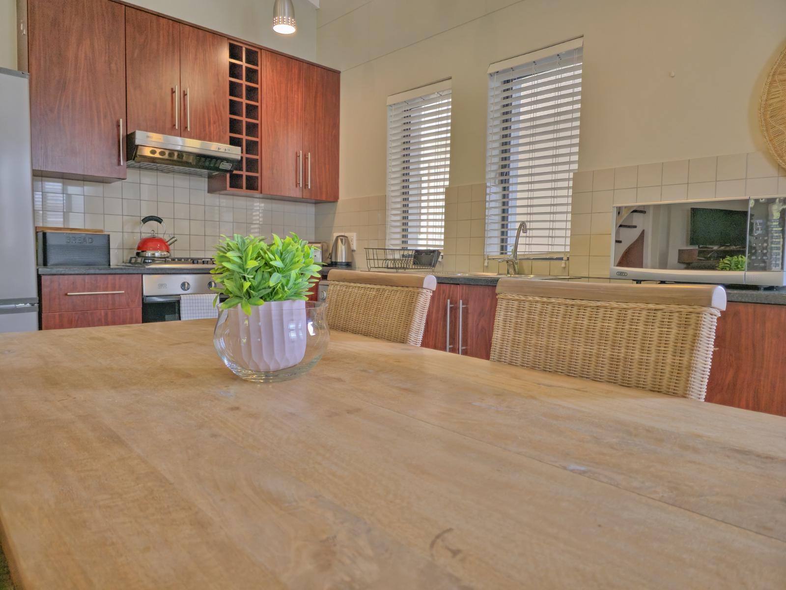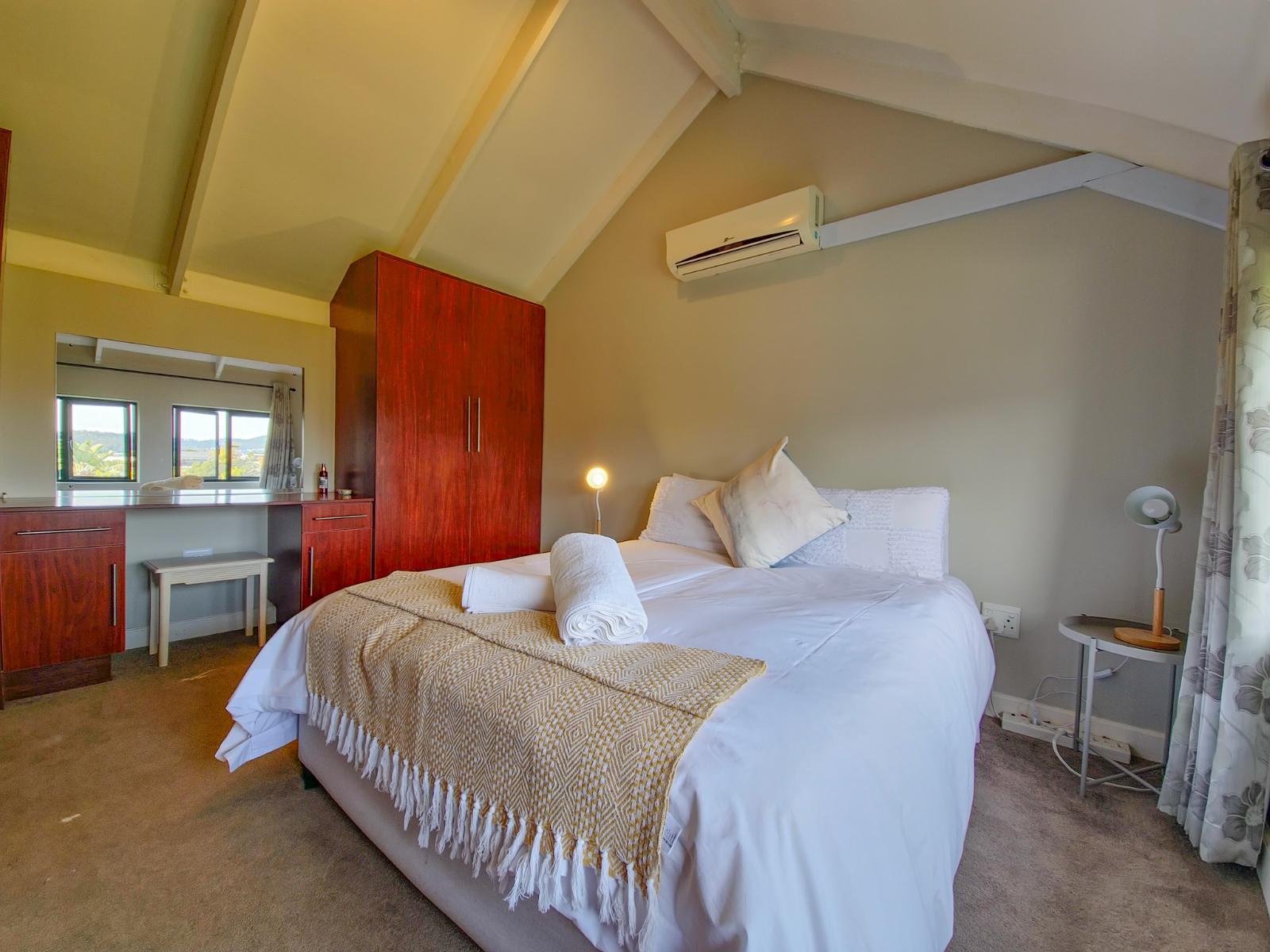 Perfectly positioned just one block from the Knysna Waterfront and within easy walking distance of the town centre, this stylish duplex apartment offers both convenience and comfort. Whether you're here for a relaxing escape or an active holiday, the location is unbeatable—close to boutique shops, top-rated restaurants, and popular attractions, with everything you need right on your doorstep. Located on the second floor of a secure, access-controlled building, the apartment is set over two levels and features two well-appointed bedrooms, each with its own en-suite bathroom. The upstairs bedroom is air-conditioned, and the second bedroom offers a charming balcony. The open-plan living area is tastefully furnished, and the well-equipped kitchen includes all the essentials for a self-catering stay. Unlimited Wi-Fi is available throughout the apartment, and guests have access to a Smart TV with a Netflix profile. DStv can be activated on request for a small additional fee. A small inverter ensures that the Wi-Fi remains active during loadshedding and allows guests to charge phones and devices without interruption. The apartment also includes a small safety box for peace of mind, and one undercover parking bay is provided behind a secure gate. With its unbeatable location, thoughtful amenities, and warm, inviting interiors, this Knysna apartment is ideal for families, friends, or couples looking to explore the Garden Route in style and comfort.