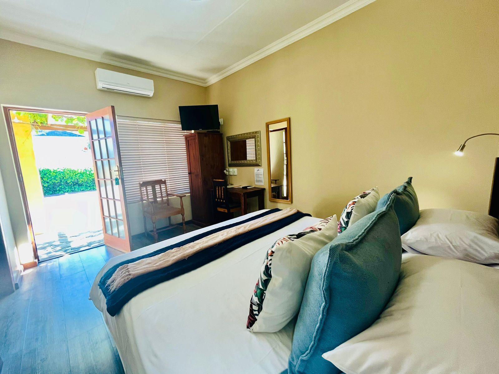 We have 11 en-suite fully air conditioned rooms all varying in size from 2 – 4 sleeper which are equipped with a bar fridge, hairdryers, tea/coffee facilities, DSTV and electric blankets for the winter nights. Some of the rooms are equipped with self-catering options, please enquire when making a booking if you will require this option We have three separate full self-catering cottages/houses which vary from 2-3 bedrooms, they have their own kitchens, living areas and backyards with your own braai facilities. The cottages have air-conditioning and are equipped with a bar fridge, hairdryers, tea/coffee facilities, DSTV and electric blankets for the winter nights.