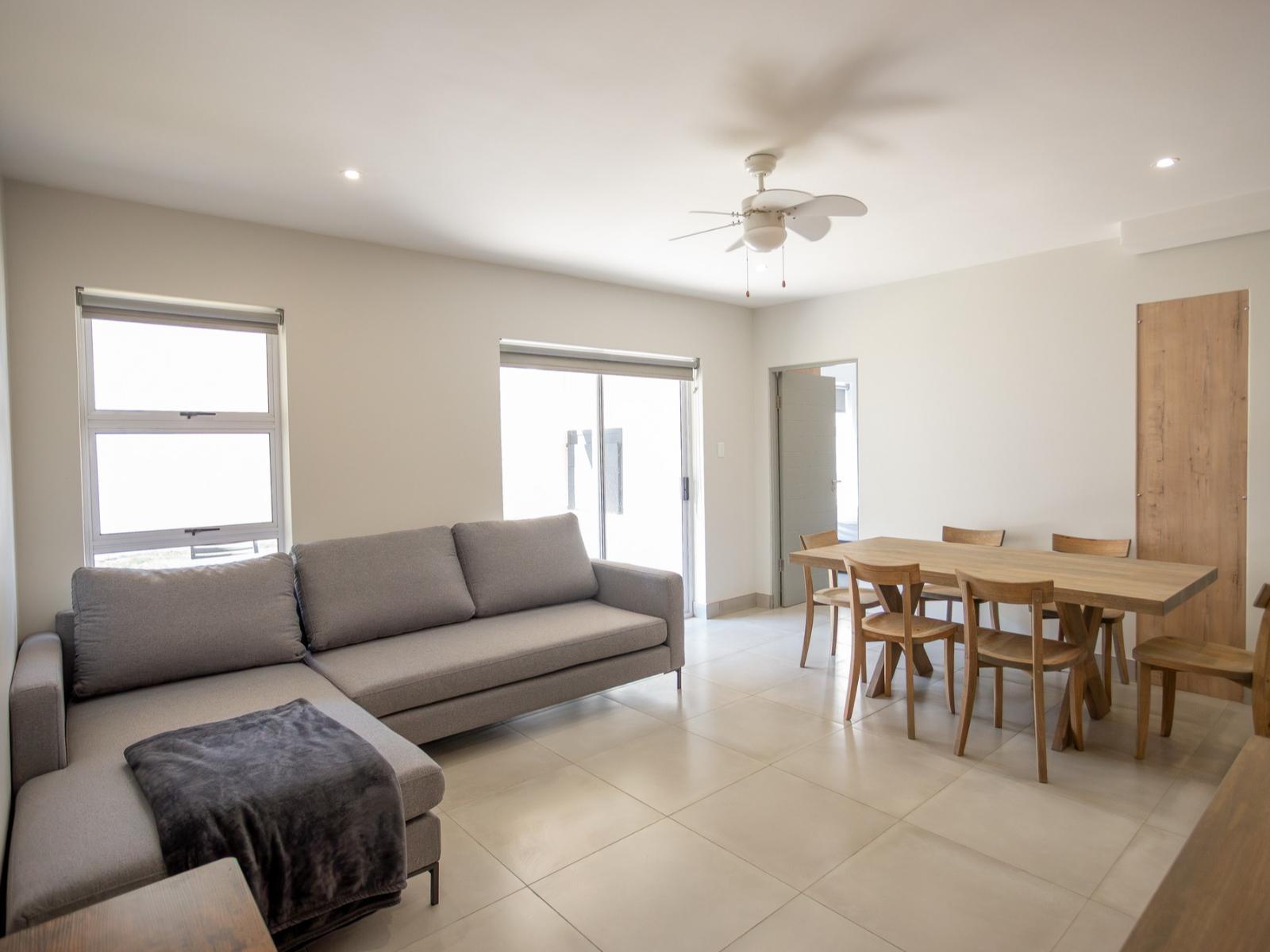 Welcome to your perfect short-term apartment rental in the heart of George, located in the sought-after One on York Estate. This apartment offers modern self-catering luxury, comfort, and convenience — ideal for both business travellers and holiday seekers exploring the beautiful Garden Route. This stunning apartment comprises 3 bedrooms and 2 bathrooms. The unit features free Wi-Fi, a fully equipped kitchen with a dishwasher and a washing machine, and an open-plan living and dining area with a TV for media entertainment. The lounge leads out onto a patio with a built-in BBQ/braai area with outdoor furniture to enjoy alfresco meals. The estate boasts 24-hour security for peace of mind and is in a prime location close to top schools, shops, restaurants, and medical facilities. The complex is also 10 minutes drive from George Airport, Wilderness Beach, Herolds Bay, Victoria Bay, and Oubaai Golf Estate. Whether you're here for business or pleasure, this secure and sophisticated estate puts you close to everything George and the Garden Route have to offer.
