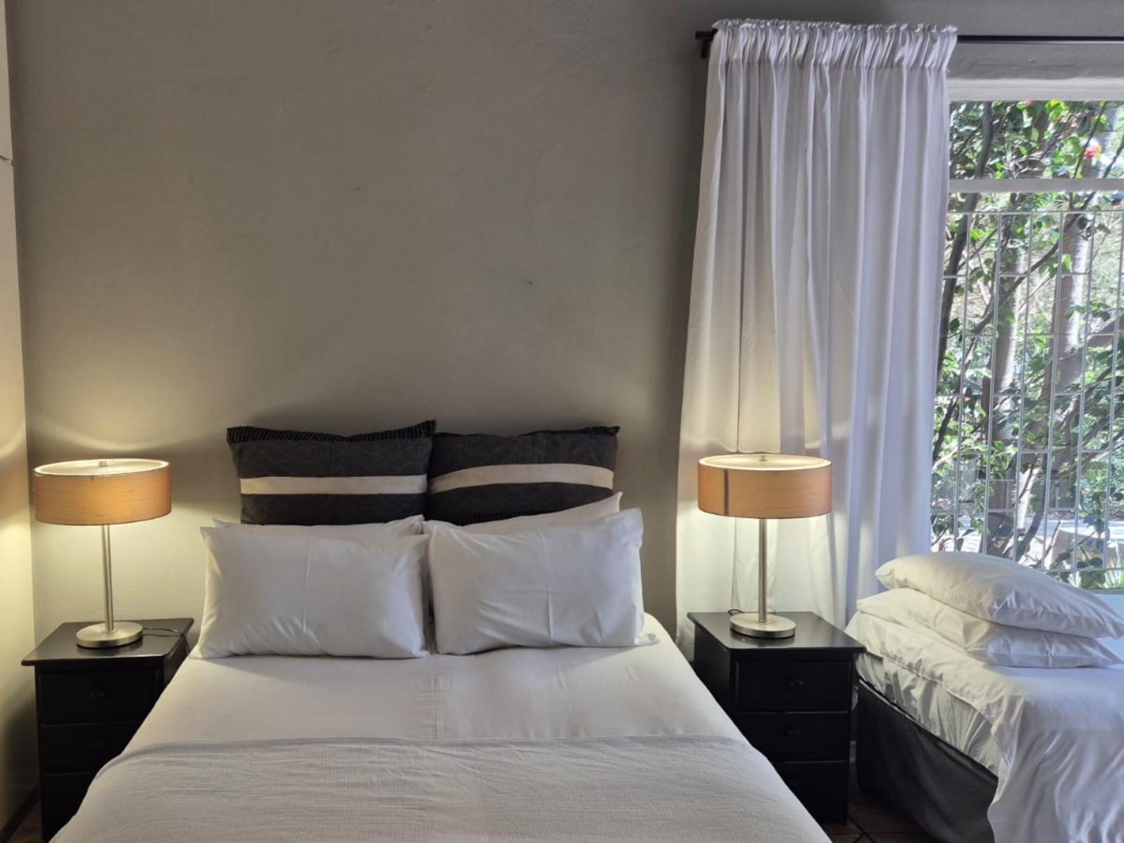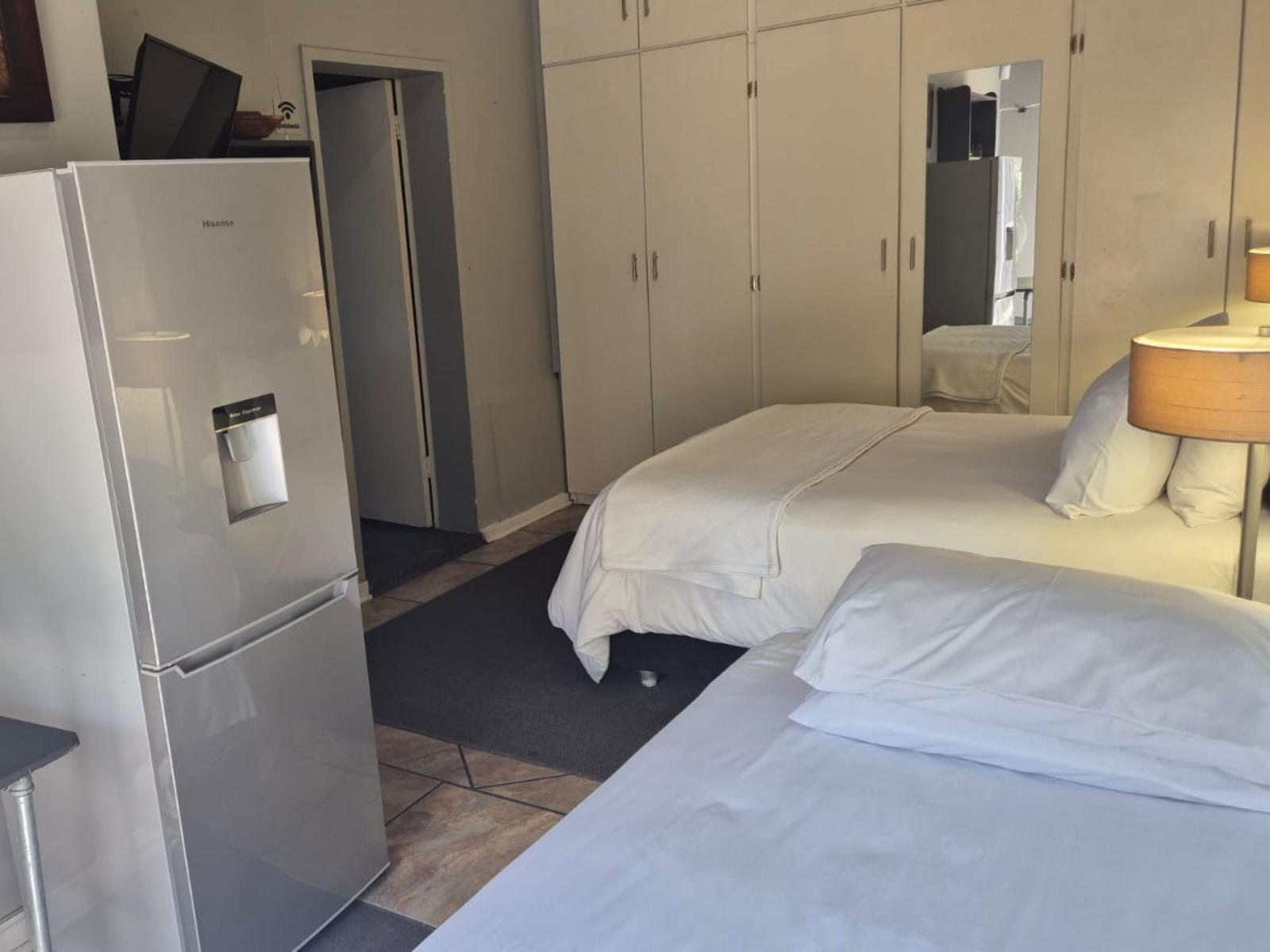 Modern with double bed, large working spaceand ensuite bathroom. Private stoep.