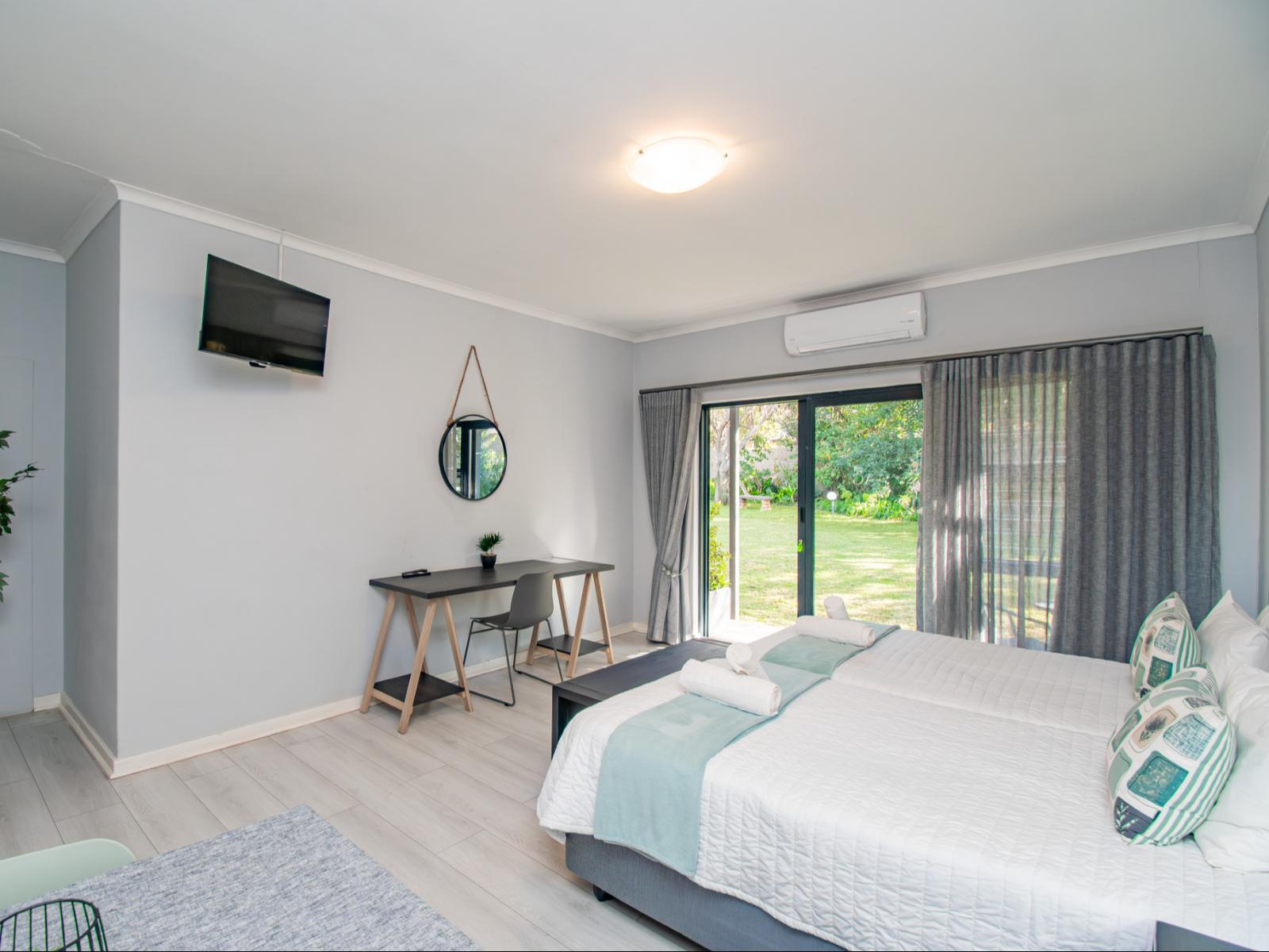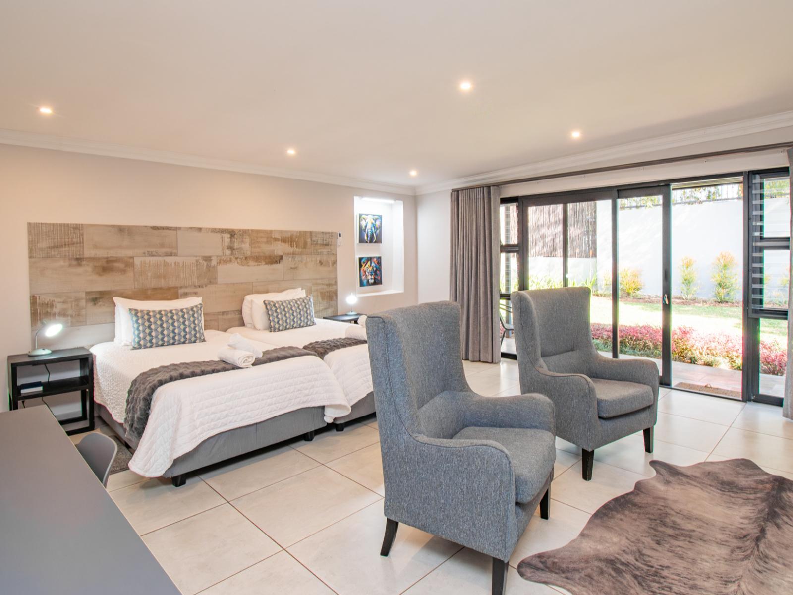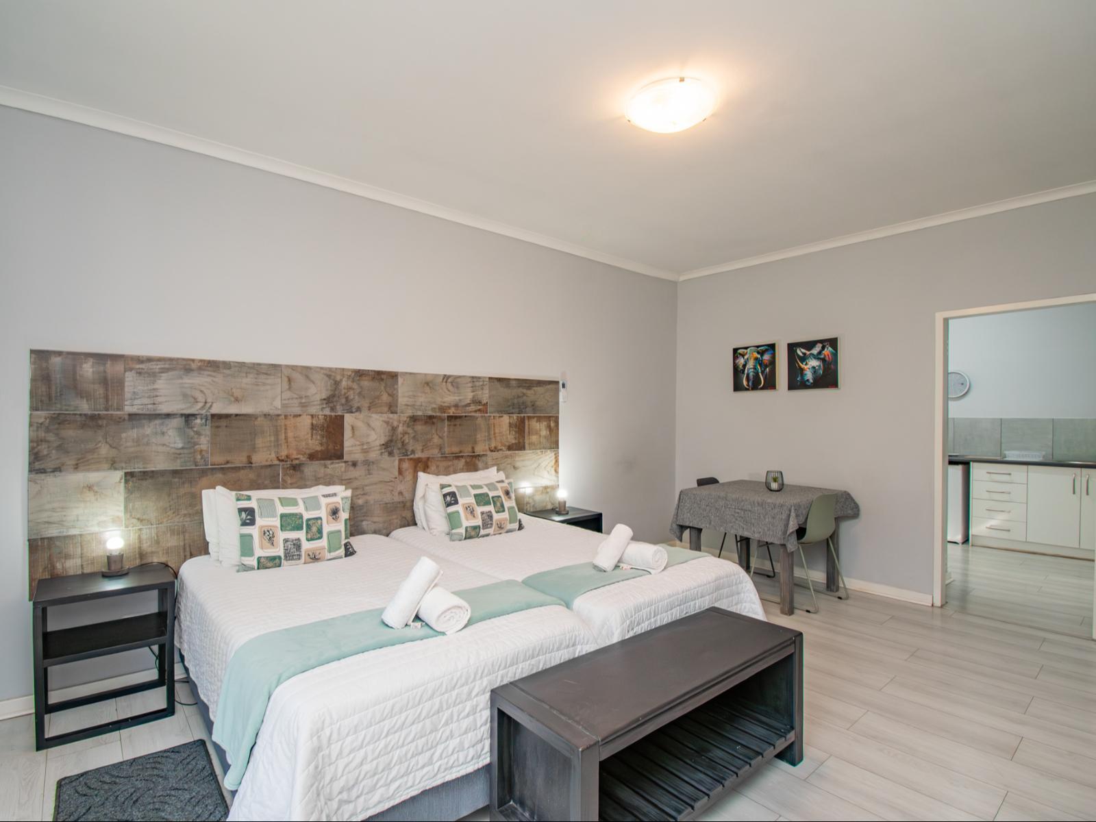 Spacious, air-conditioned suite equipped with a smart TV with Openview channels and Wi-Fi access. Kitchenette with a fridge, a microwave, a single induction plate, and tea/coffee-making facilities. The room has two 3/4 beds and an en-suite bathroom.