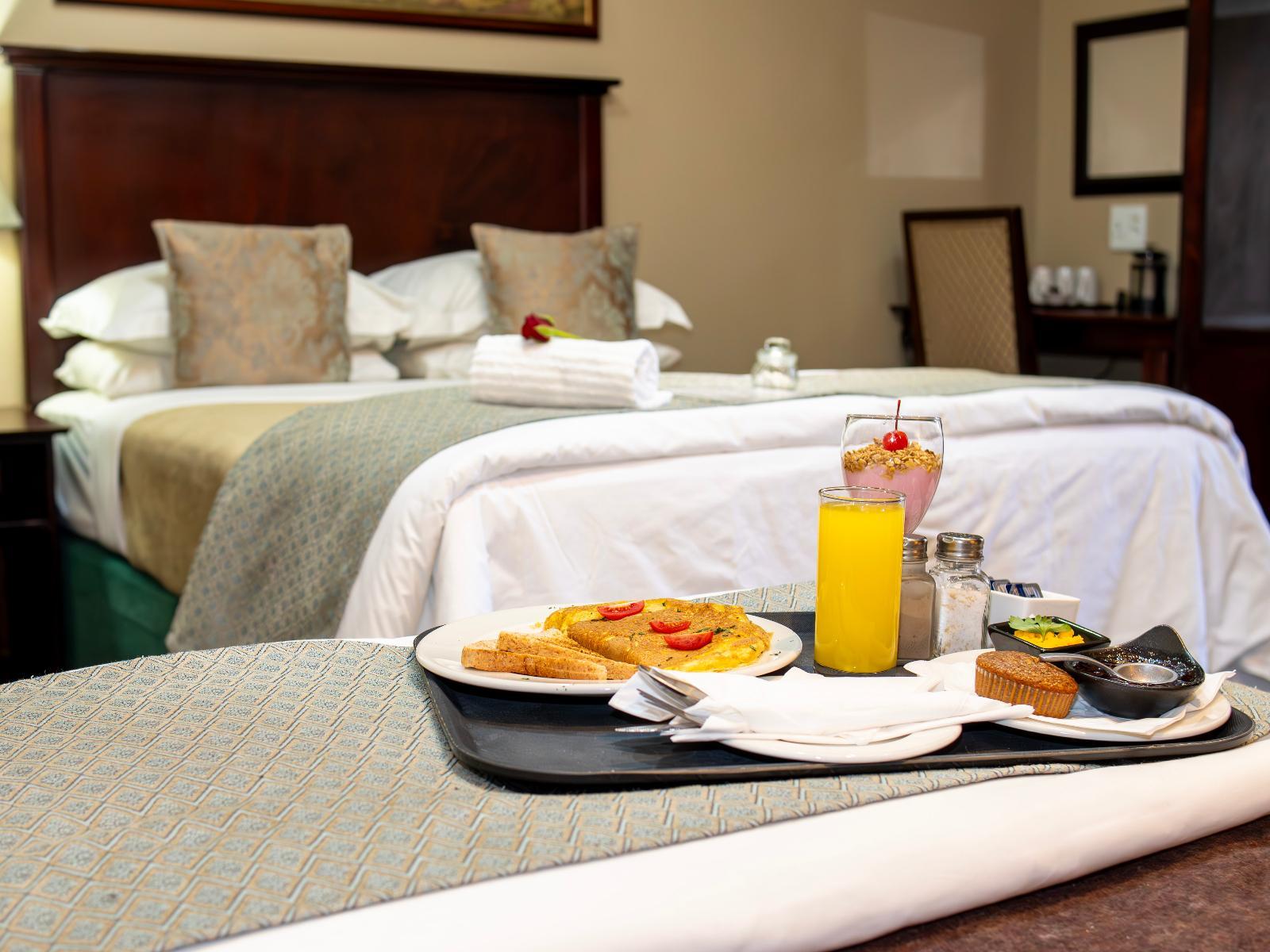 Double Bed with ensuite bathroom with shower. DStv, TV, coffee-making facilities, bathroom amenities, safe, air conditioning and wireless internet in the room.
