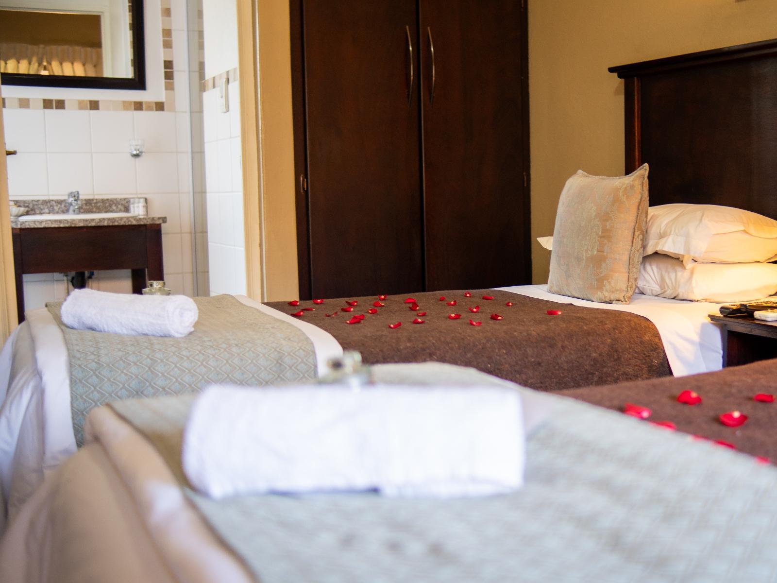 2 Single Beds with en suite bathroom with shower. DStv, TV, coffee-making facilities, bathroom amenities, safe, air conditioning and wireless internet in room.