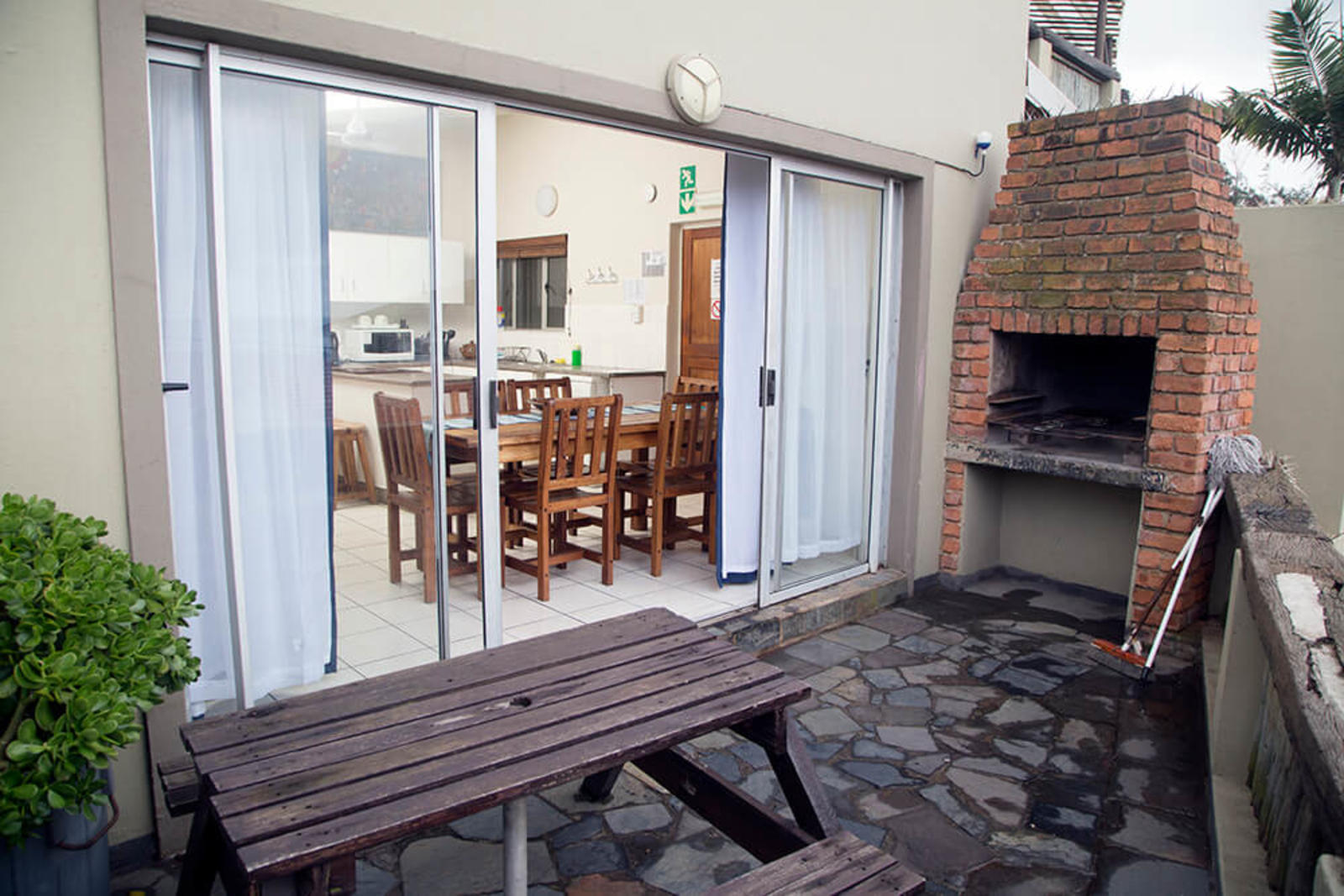 Cosy Studio style 2 sleeper apartment. Open plan room with 2 x single beds, own bathroom, kitchenette and private barbecue area. Please note: apt is adjacent to bottom communal bathrooms & can get noisy at times. No sea view. DSTV Hotel Package