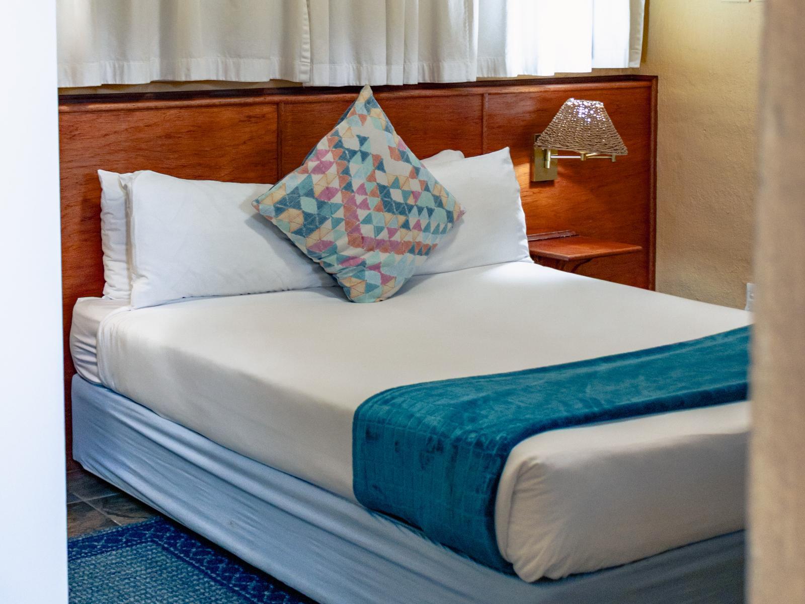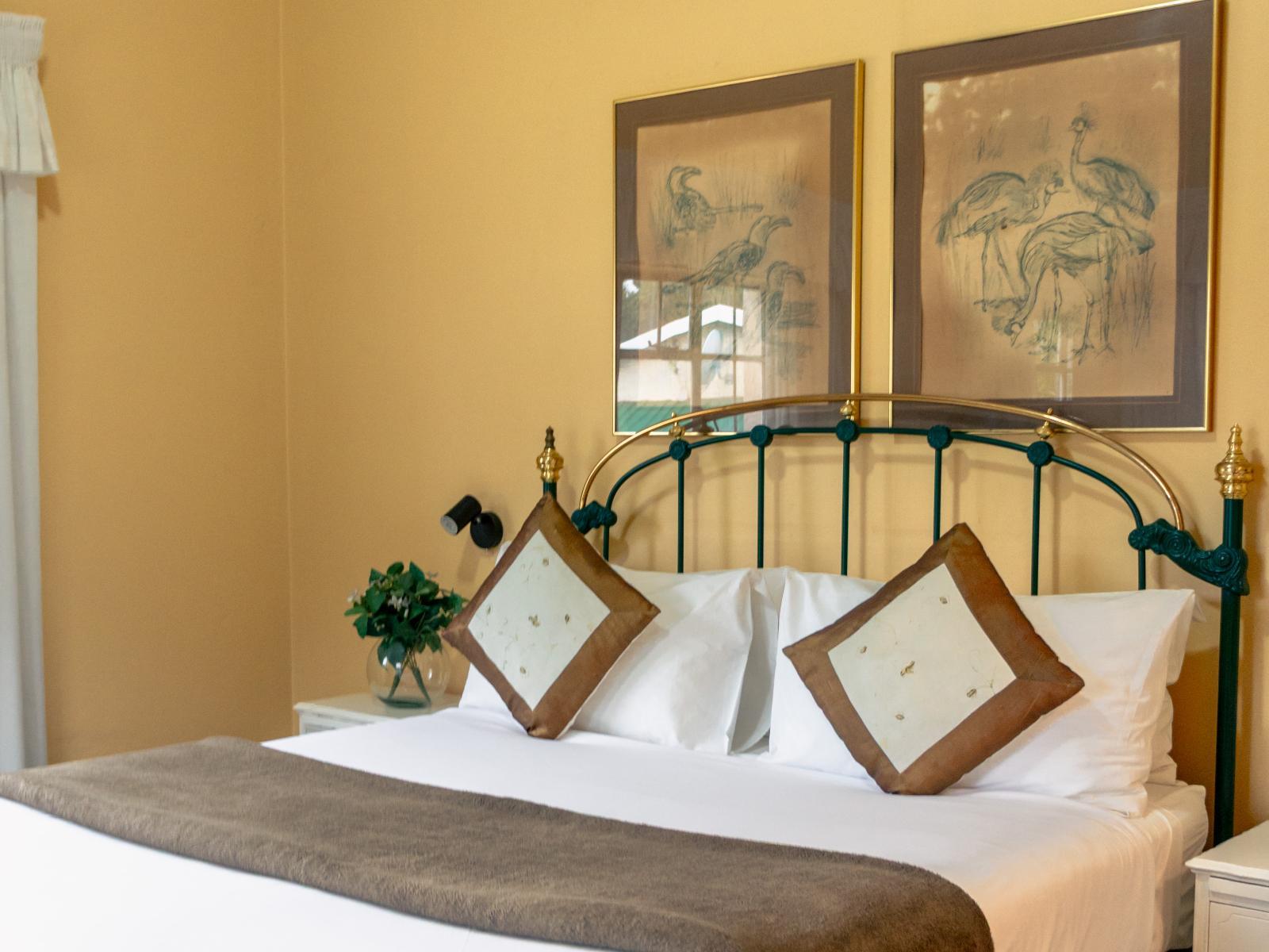 Each room contains a queen-size bed, and an en-suite bathroom. Each room contains hot/cold air-conditioning, a TV with 63 selected DStv channels, a bar fridge, a kettle, and a beverage pack.