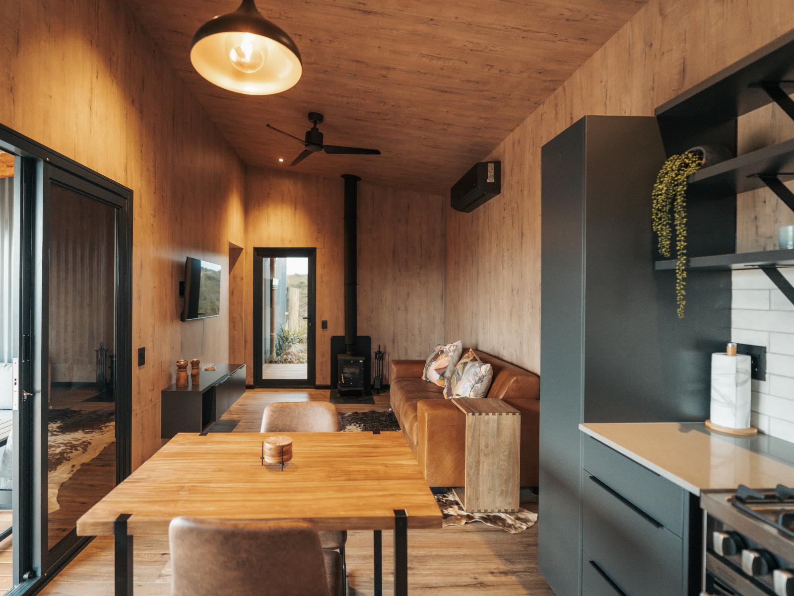 The cabin was thoughtfully designed and tastefully furnished to ensure maximum comfort and views from every angle. It has a queen bed and a full kitchen (oven, gas stove, kettle, and fridge). In the room, there is a bath that is located close to the window to have a view of the natural landscape. Guests can take in the view fully with inside and outside shower. There is a Hot tub that is wood-fired with a custom-made hammock that overlooks the valley and the surroundings. There are board games and cards that you are welcome to use. Aviary Hills Luxury Hideaway is just under 2.5 hours from Cape Town, the cabin is easily accessible from the N2. The roads have been designed for any car to make it to the cabin - no 4x4 required.