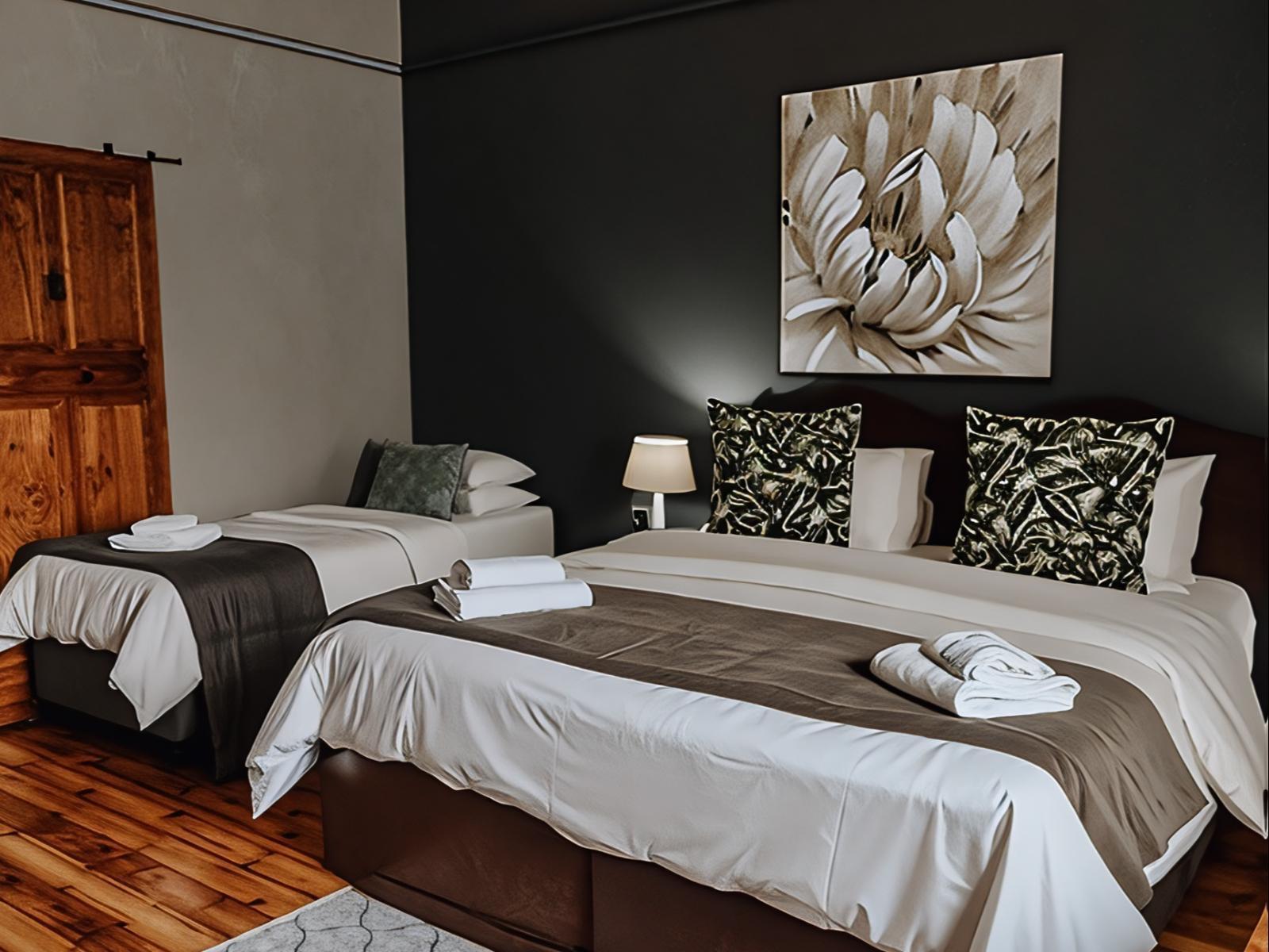 This room is situated in the main building and shares an entrance to the building. It consists of a king-size bed and 1 single bed or 3 single beds. The room has an en-suite bathroom. DStv and Wi-Fi can be found in the room.