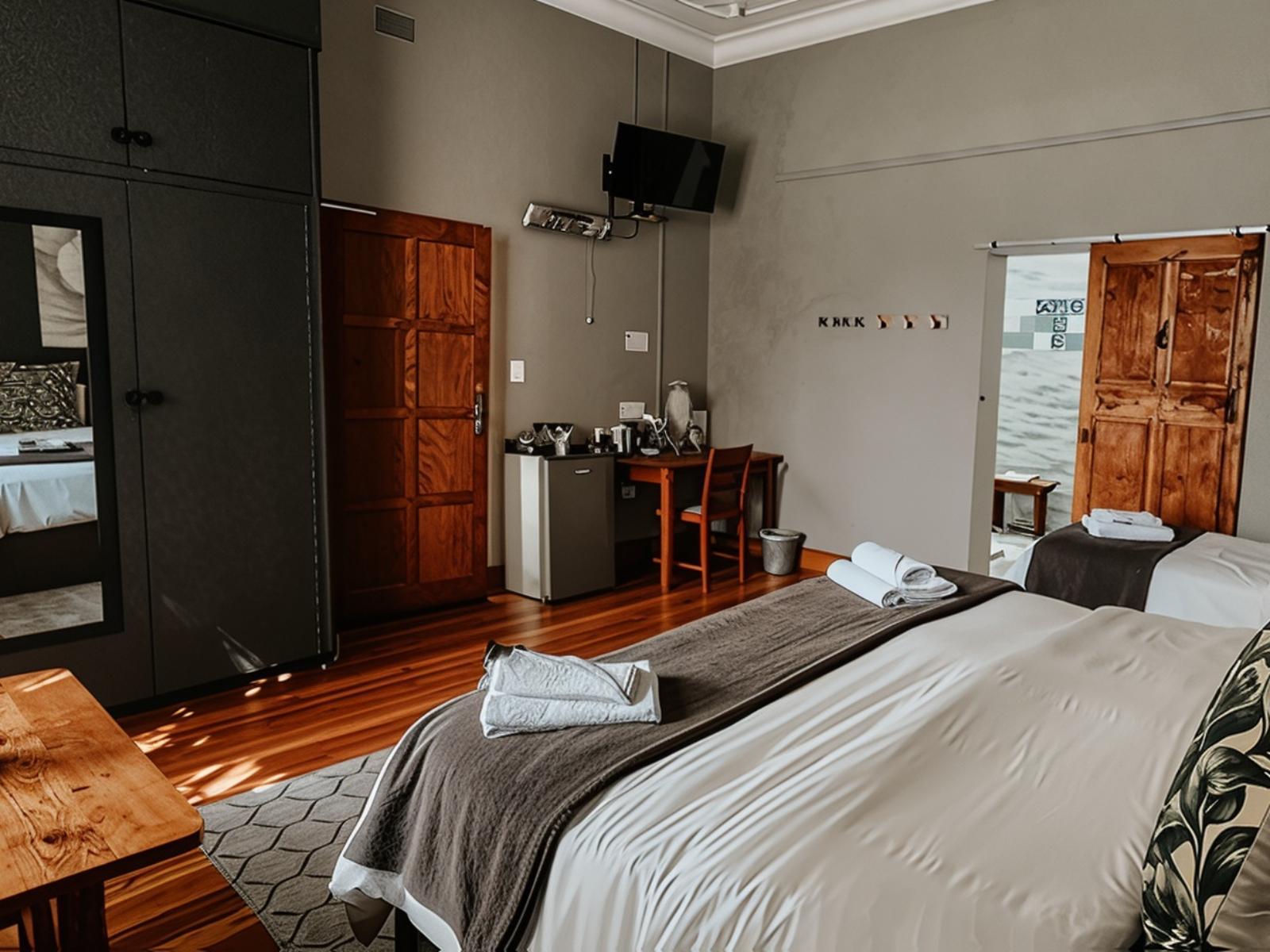 This room is situated outside, away from the main building, with a private entrance. The room has twin beds and an en-suite bathroom. The room has a TV with DStv and Wi-Fi.