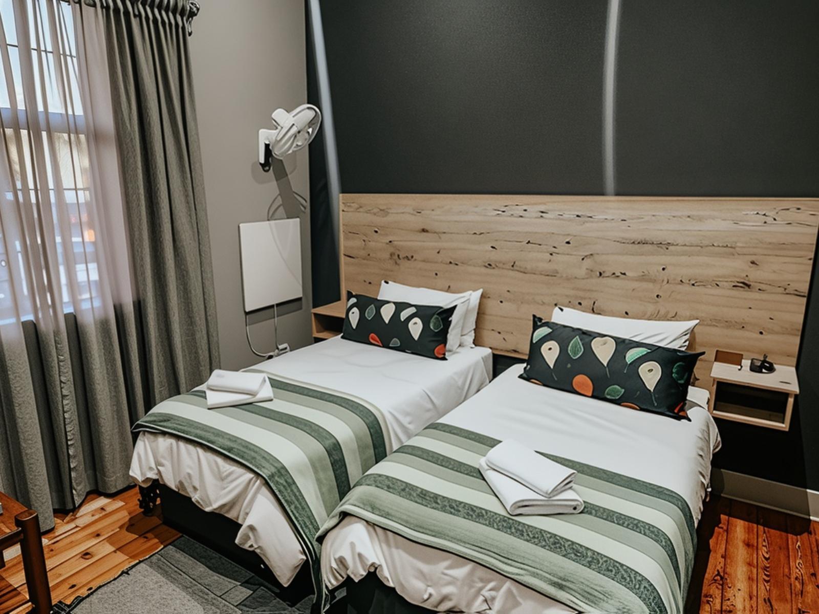 This room is situated in the main building and share an entrance to the building. This lovely room is equipped with 2 single beds and contains an en-suite bathroom. The room has a TV with DStv and Wi-Fi.