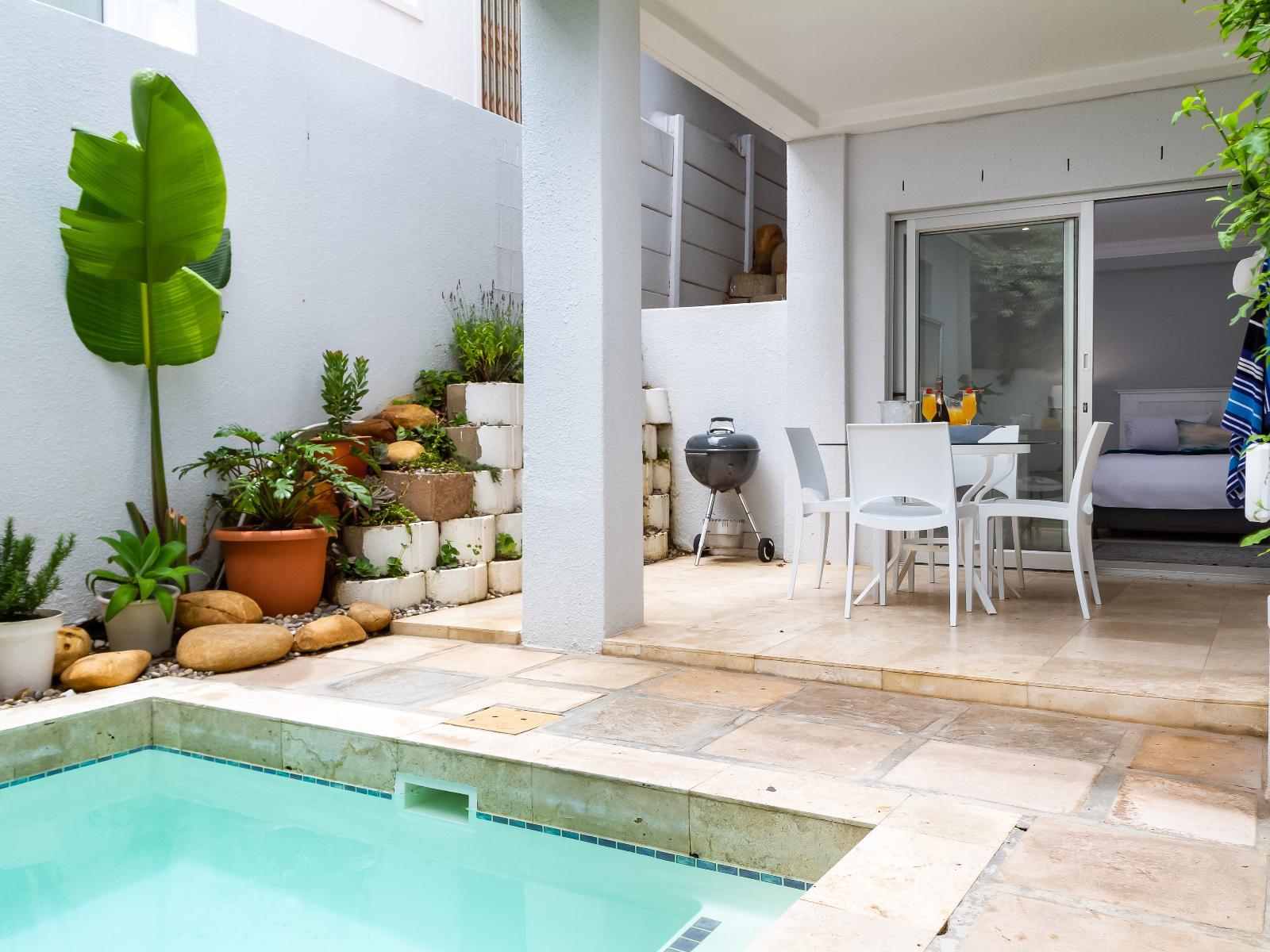 Beautifully decorated apartment in a tranquil garden setting with all the comforts of home. A four-minute stroll to iconic Camps Bay beach and trendy cafes. Enjoy a BBQ while listing to your favourite tunes played by Amazon's Alexa.