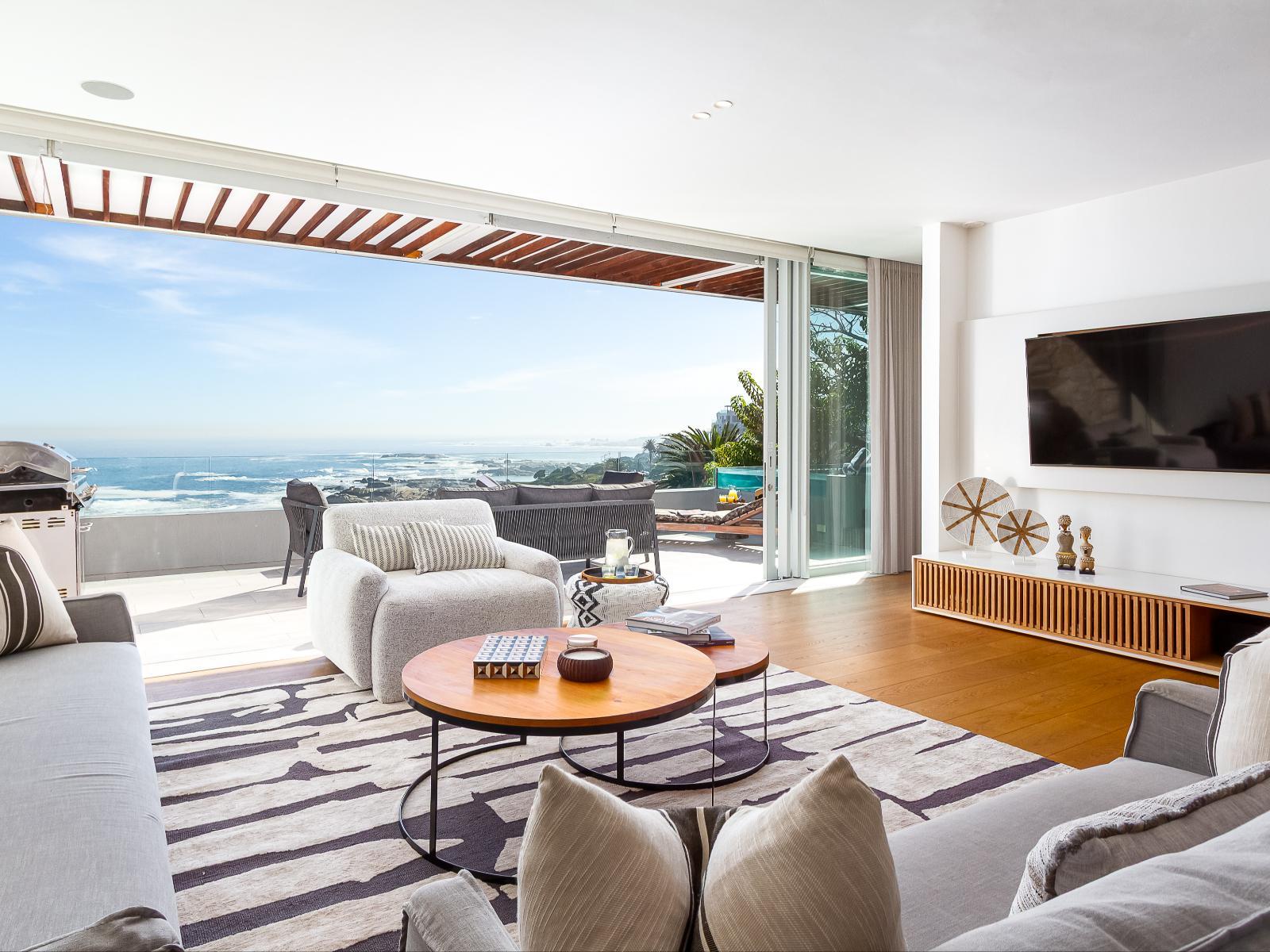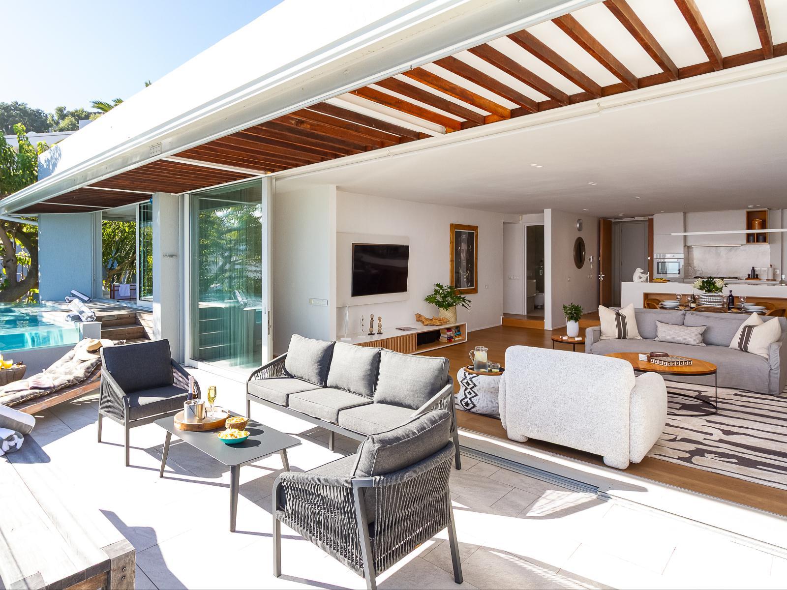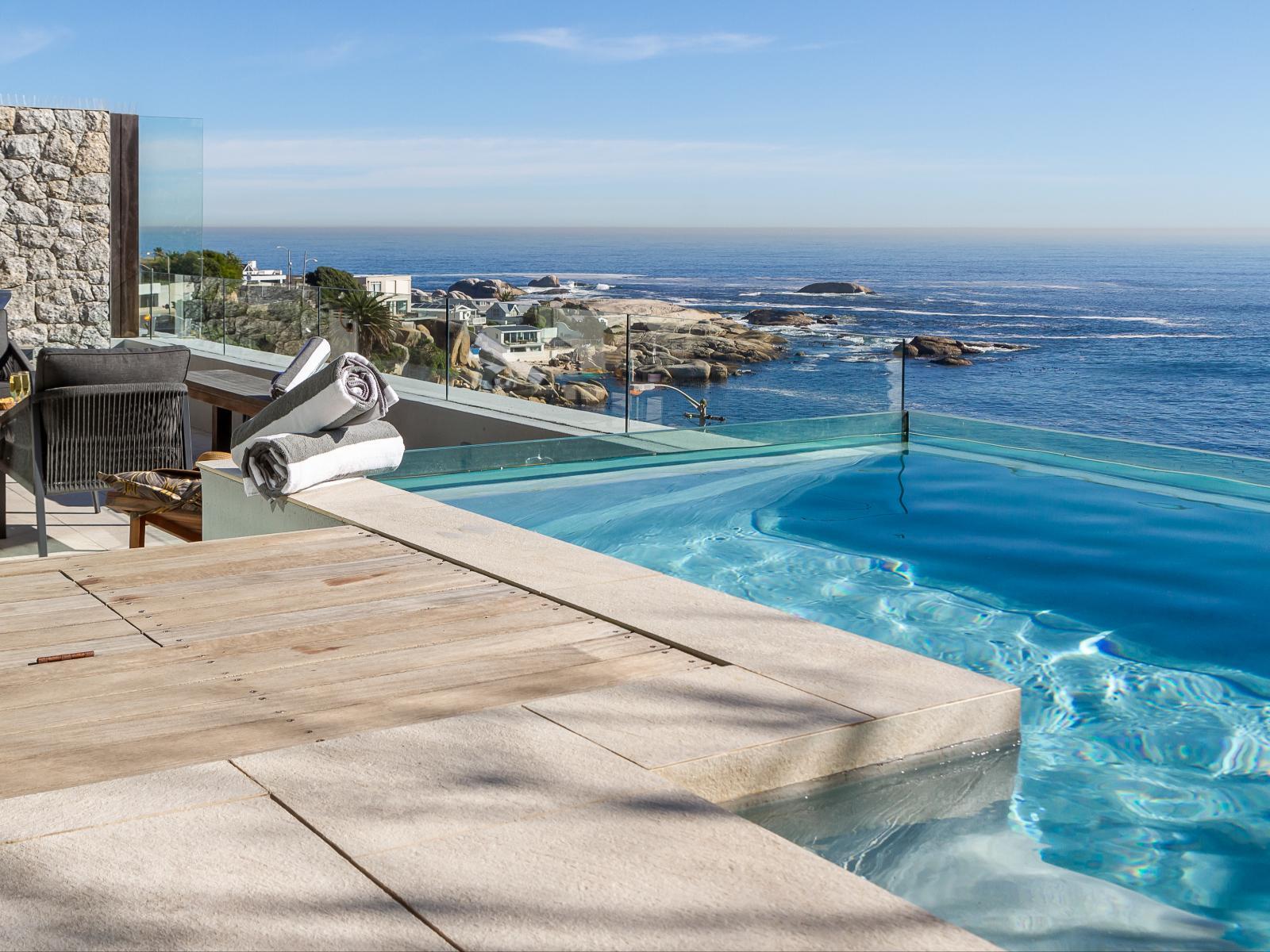 Slide open a wall of windows to let the sea breeze float in. A spacious, private patio offers a haven of tranquility, featuring a private pool overlooking the ocean. This stylish, beautifully decorated apartment in Camps Bay boasts an ever-changing vista.