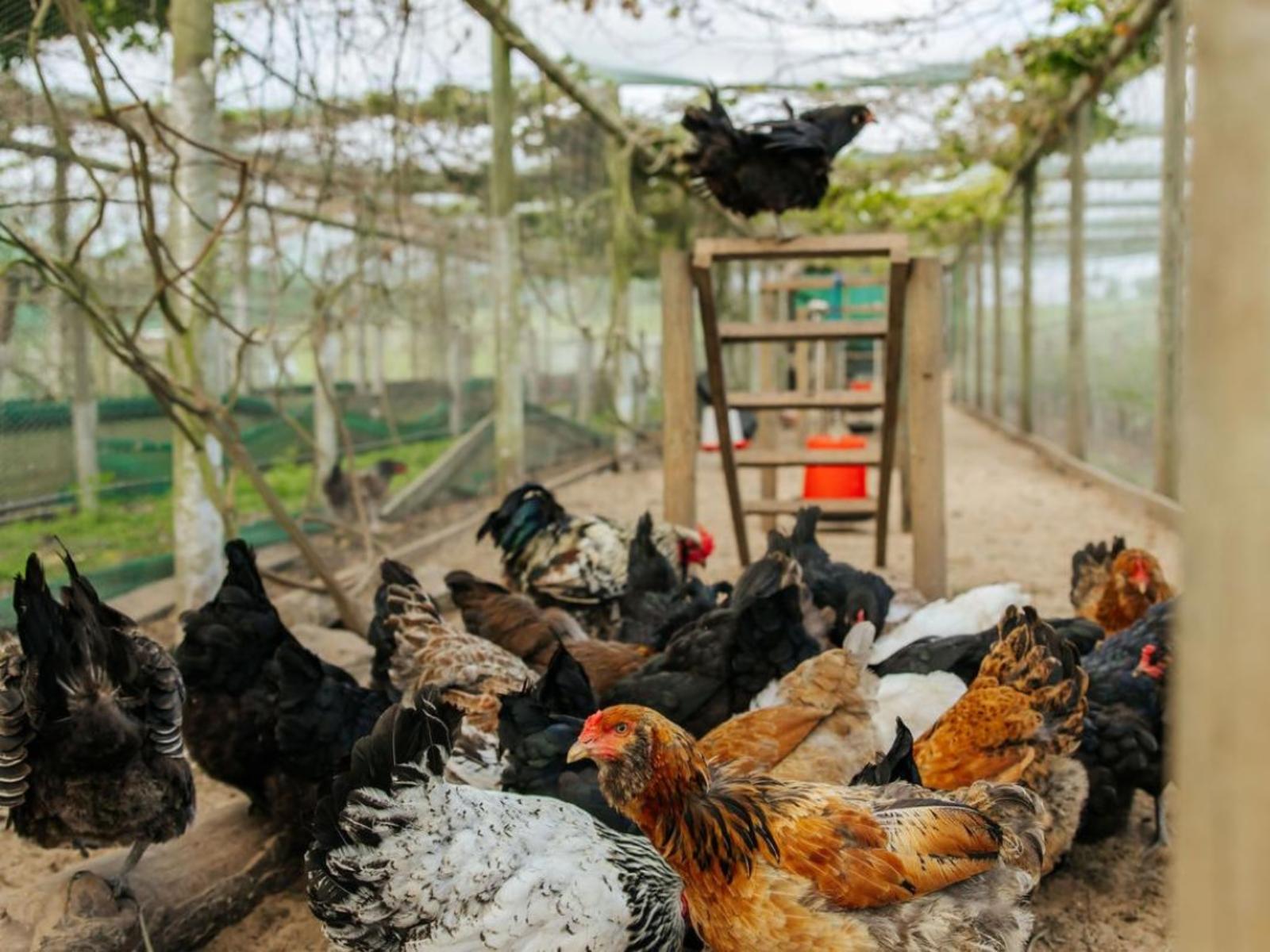 This peaceful farm unit sleeps six adults, one child, and one baby across three bedrooms and 1.5 bathrooms. It offers a fully equipped kitchen, stunning mountain views, a jungle gym, and catch-and-release fishing.