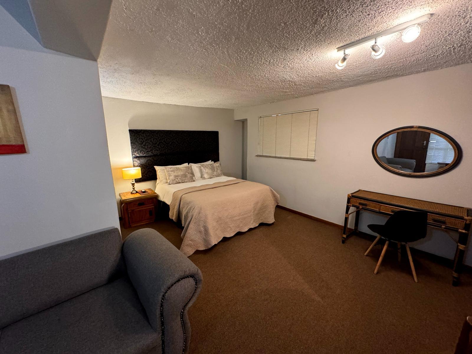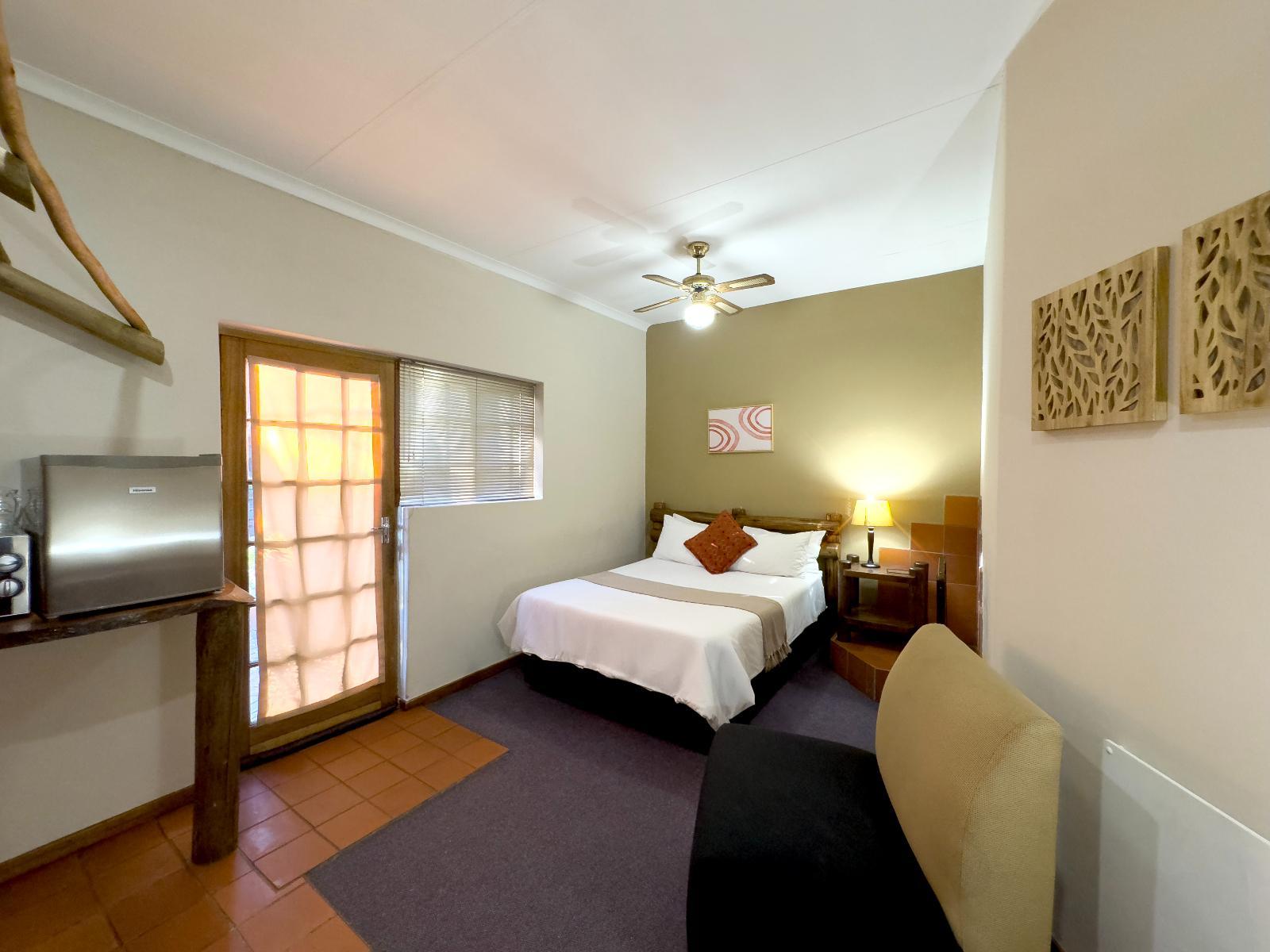Each room features a double-size bed and an en-suite bathroom as well as DSTV, tea and coffee making facilities, fan and bar fridge.