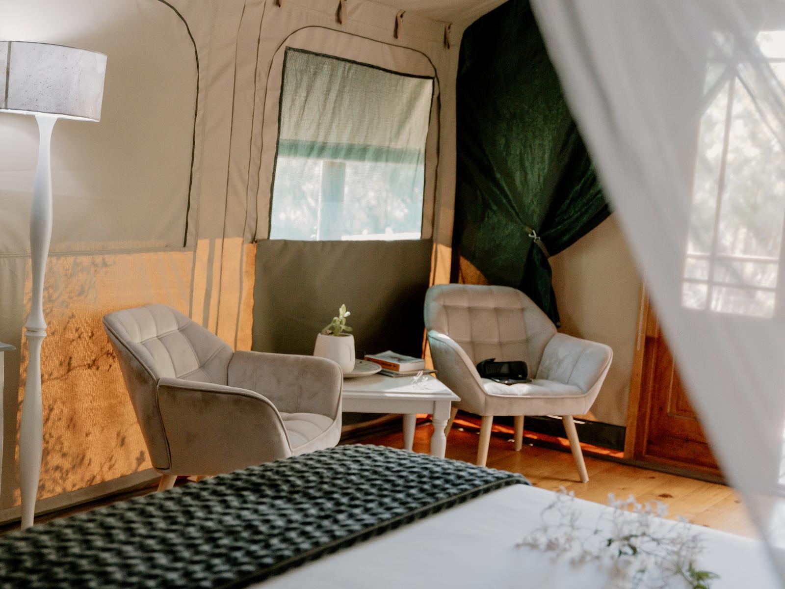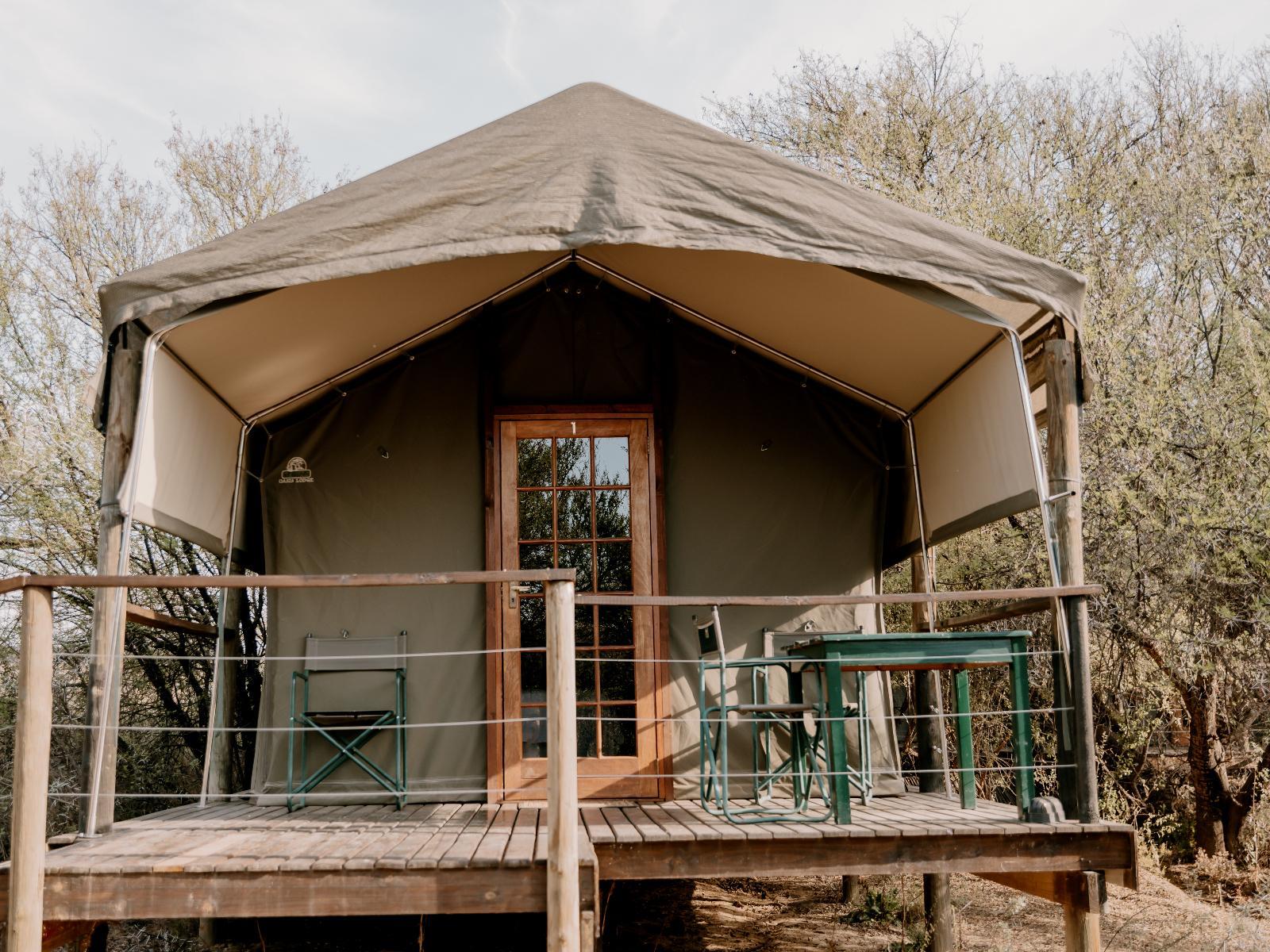 Ten private, en-suite tented chalets on wooden decks with unique views, equipped with white linen, as well as corner baths and air-conditioning or fans. The stylish décor creates superb 4 star luxury at 3 star rates. Two self catering Log Homes with 2 rooms.