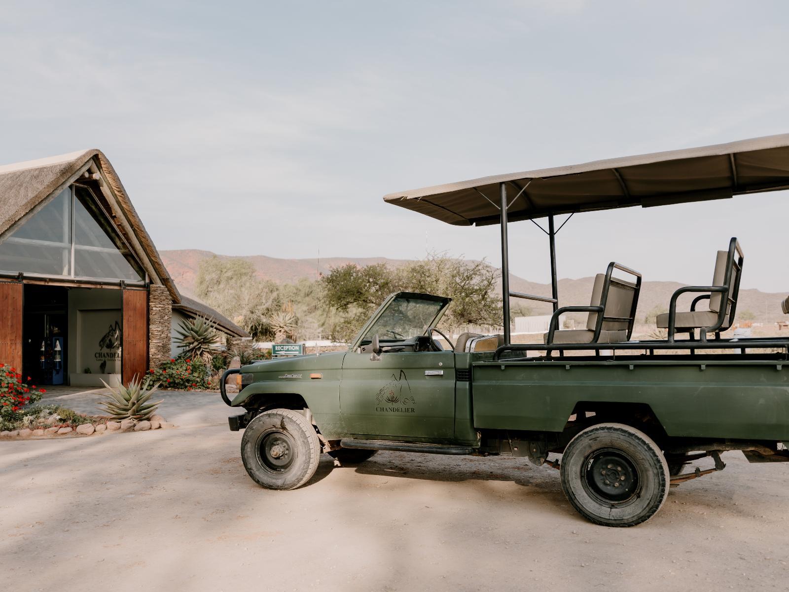 Chandelier is easily accessible, next to the N12 (Route 62), between the Garden Route and Oudtshoorn. Chandelier offers luxury, en-suite, tented chalets and self-catering Log Homes as well as various activities such as ostrich-riding, game drives, conference & wedding facilities and Sundowner Bush Dinners.