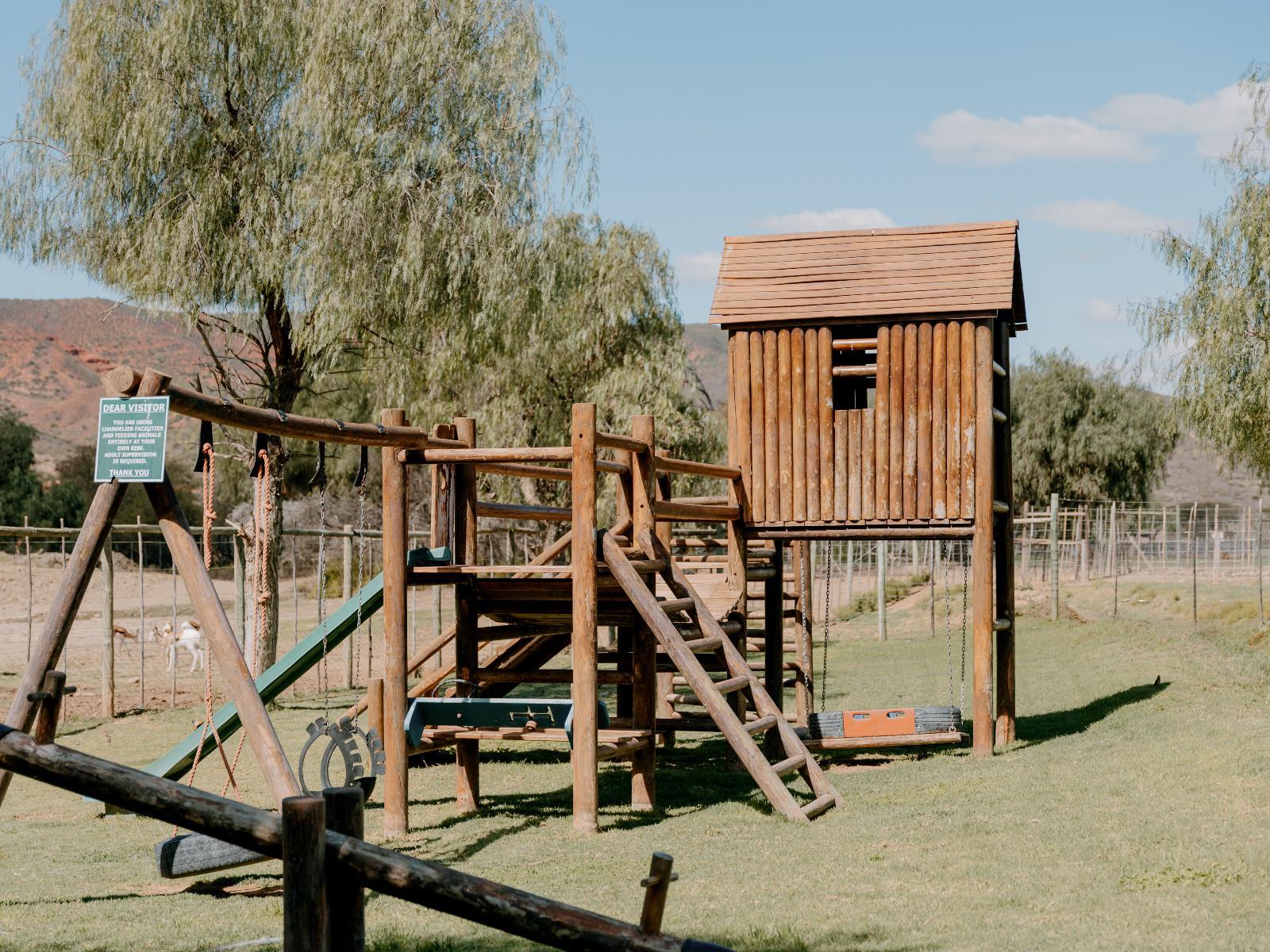 The African Log Home is set on a wooden deck with a great view of the mountains and plains. There are two en-suite bedrooms, an open plan kitchen/lounge with bunker beds, television, air-conditioning, heaters, a fridge, gas stove & Braai facilities.