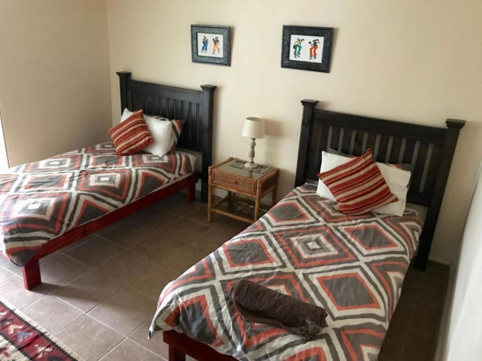 A twin room stunningly decorated with true African flavour. Stunning view of the garden. Large walk-in shower.