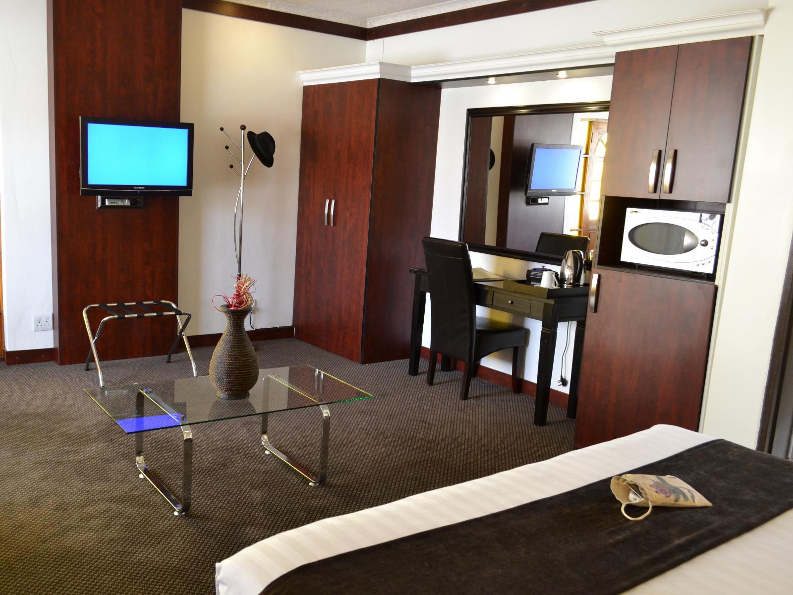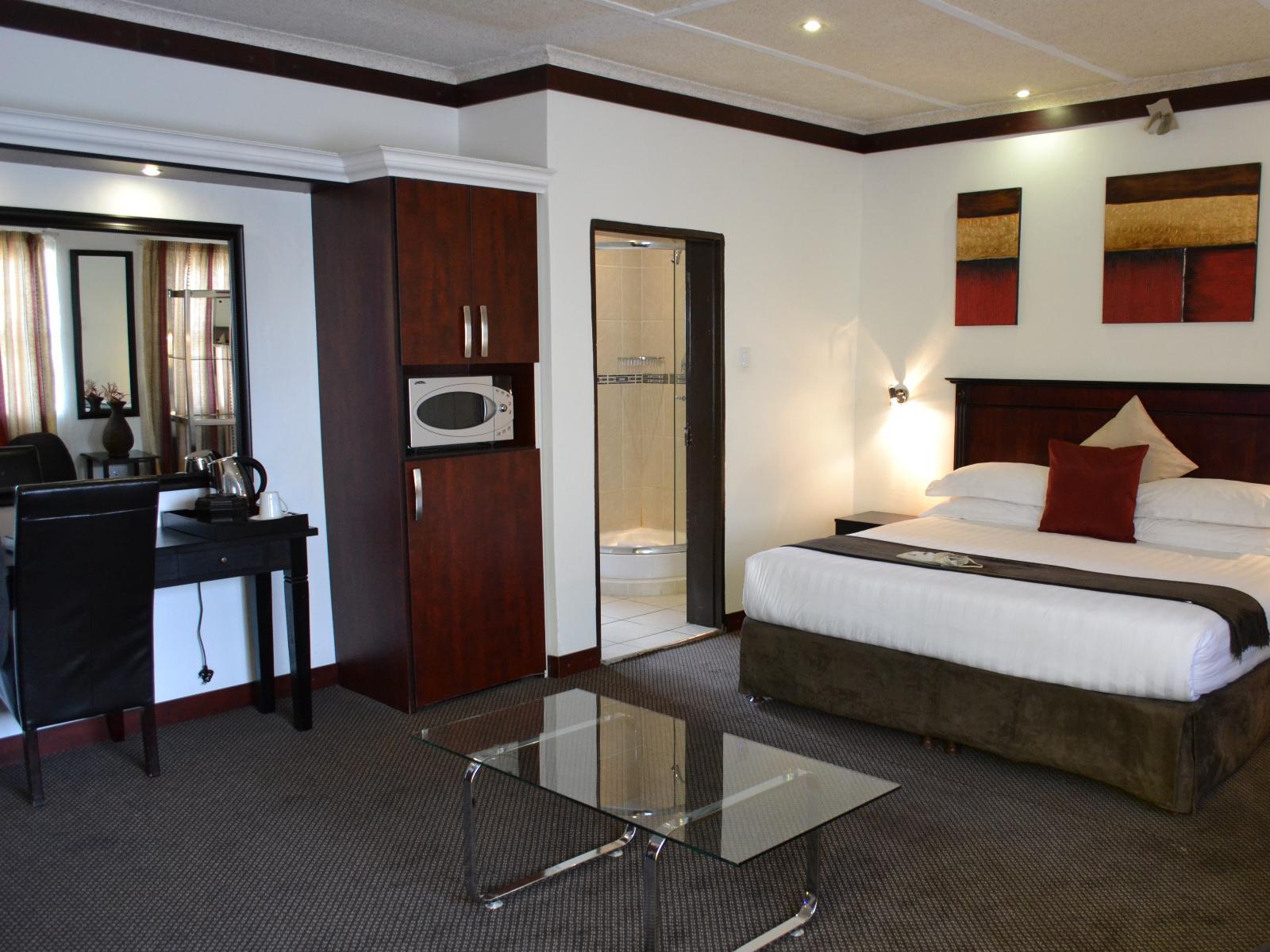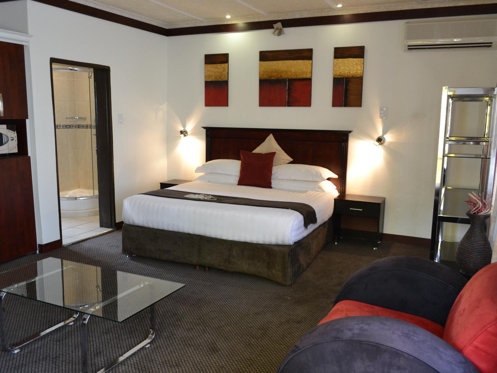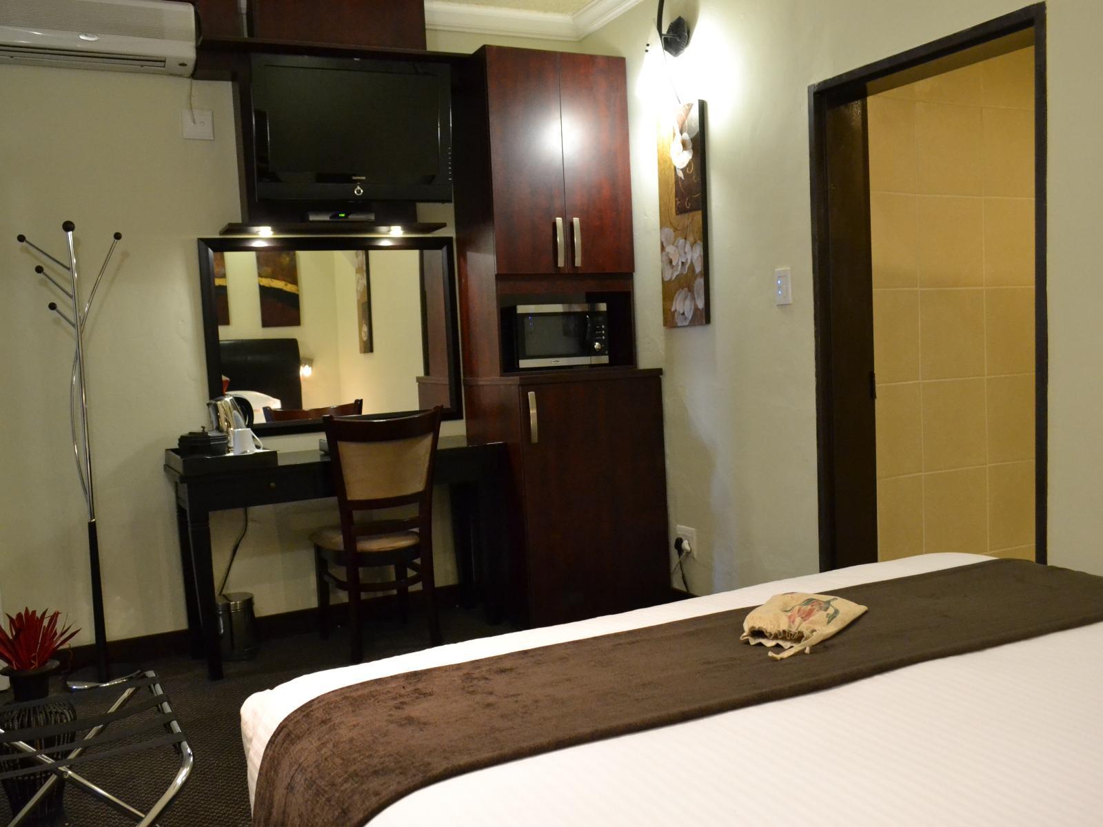 Queen-size bed, shower, plasma TV, bar fridge, Wi-Fi and safe. Air-conditioning, bathroom amenities, coffee/tea facilities, DStv and shower