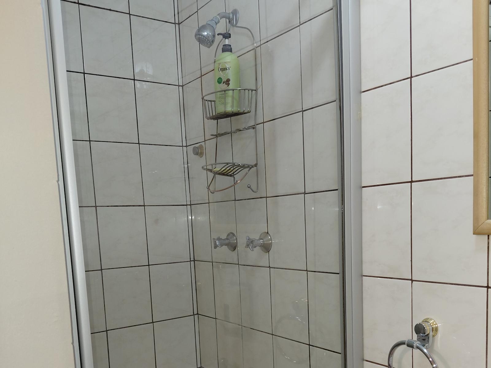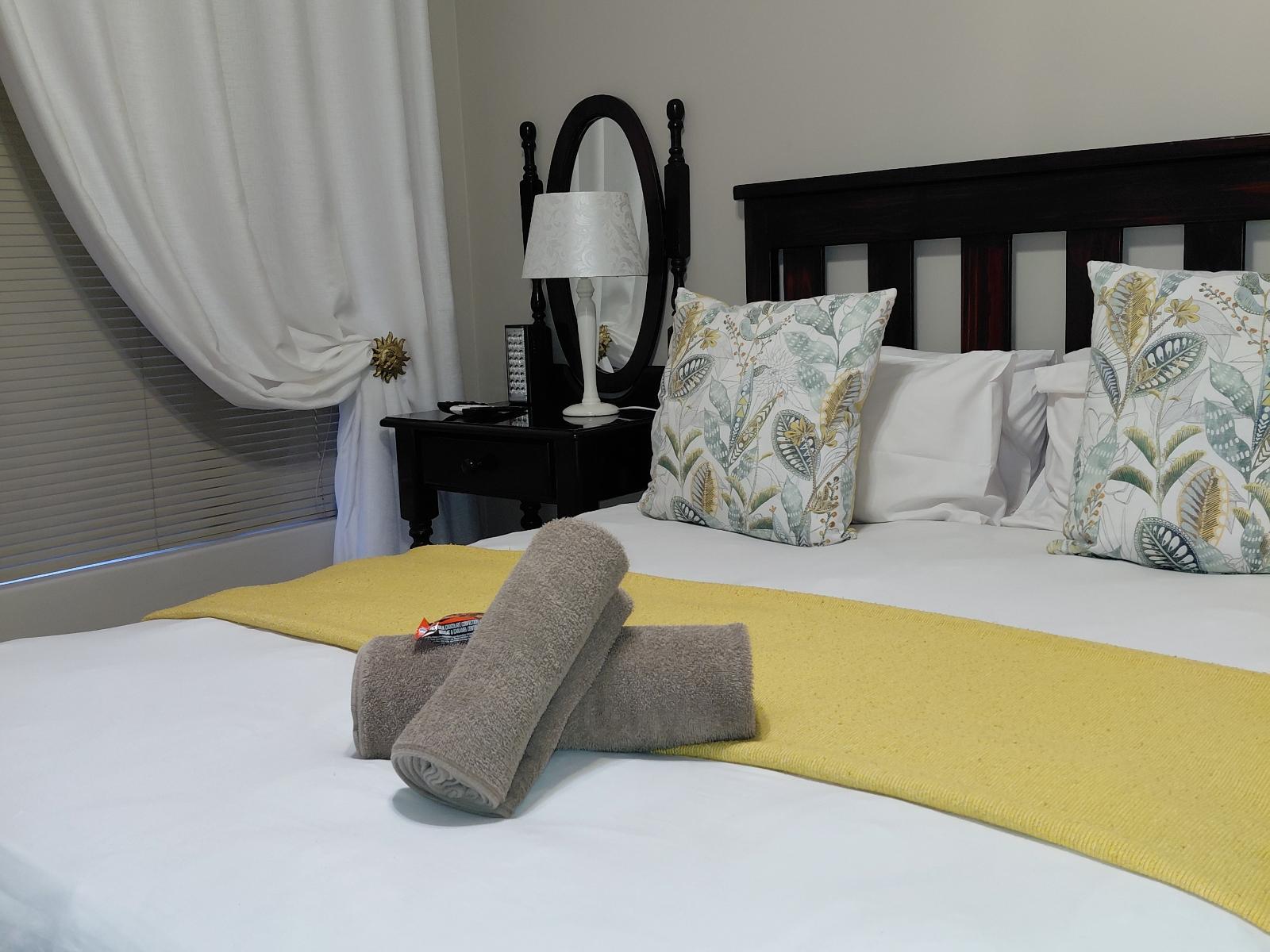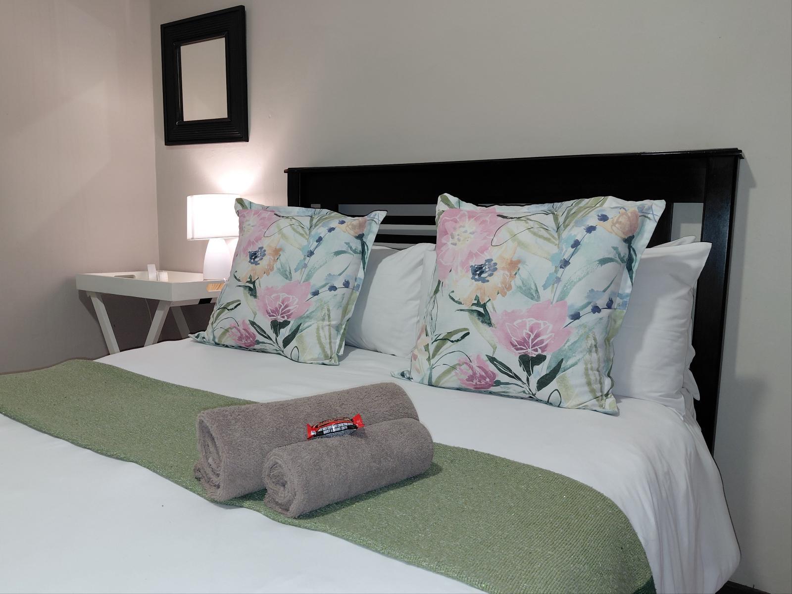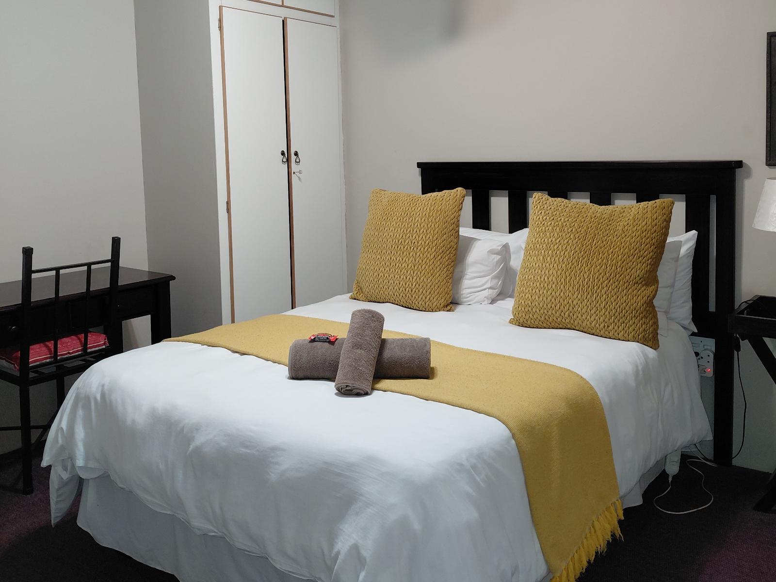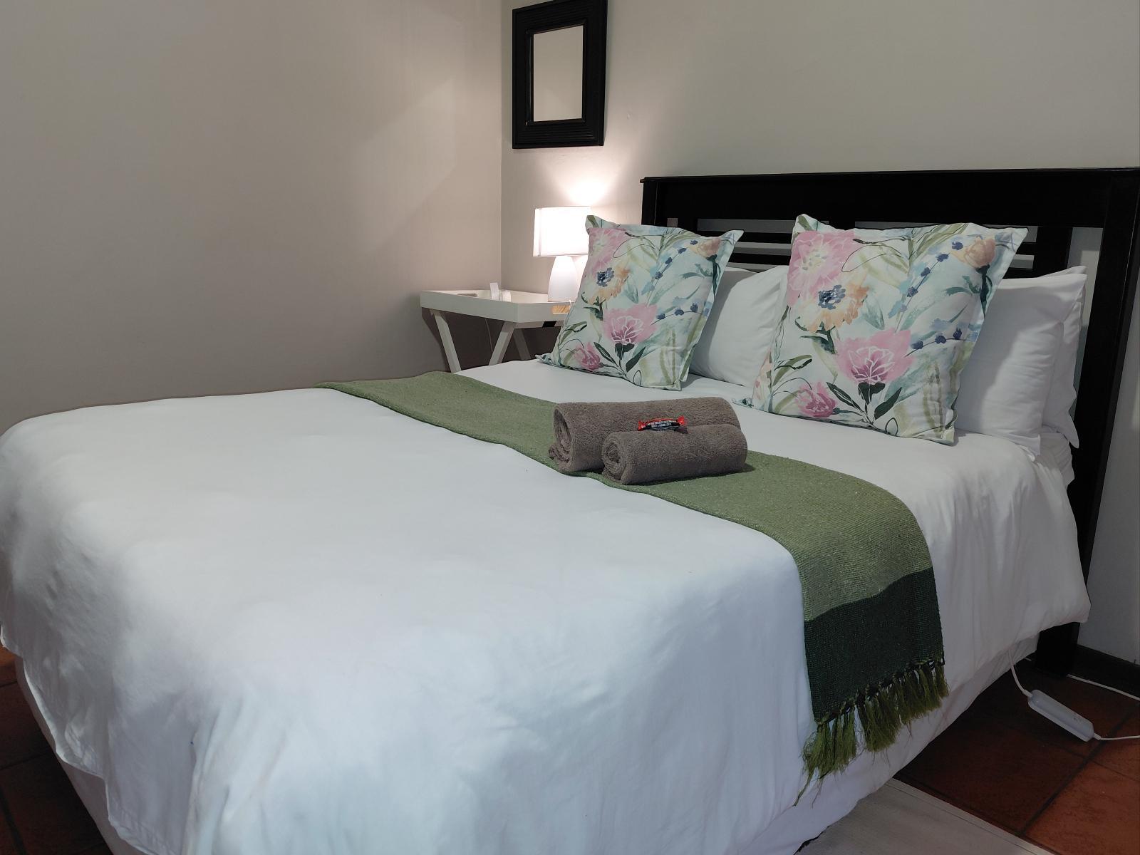 This room has a queen bed and a bathroom with a shower. It includes air-conditioning, a TV with DStv, a working desk, a bar fridge, and coffee-and tea-making facilities.