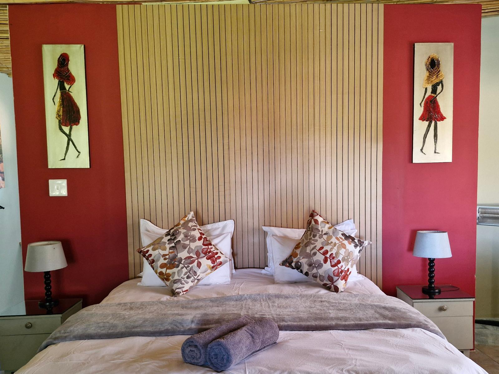 Luxury Safari Tent covered with Thached roof. Spacious bedroom, en-suite bathroom with shower. Fully equipped shared kitchen area and bathrooms. Private with great views.
