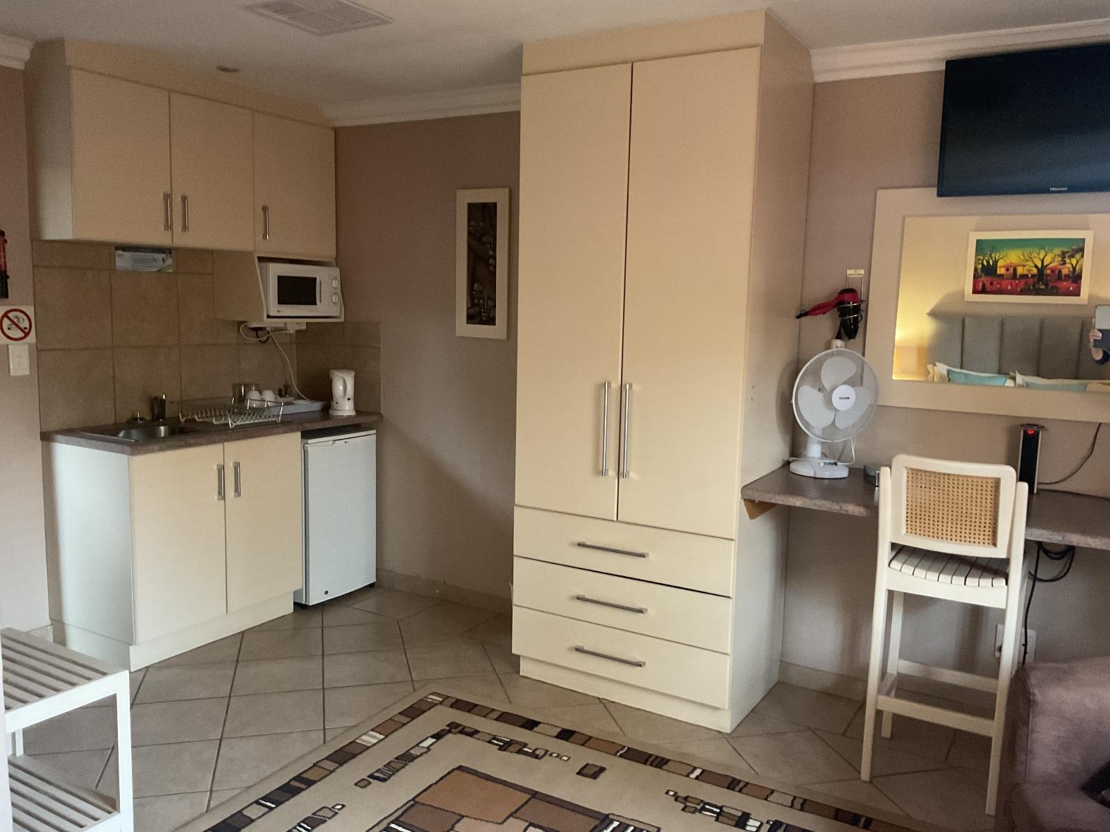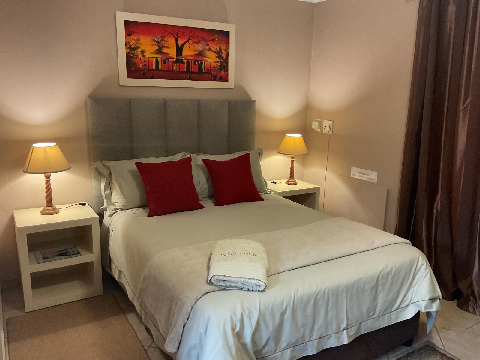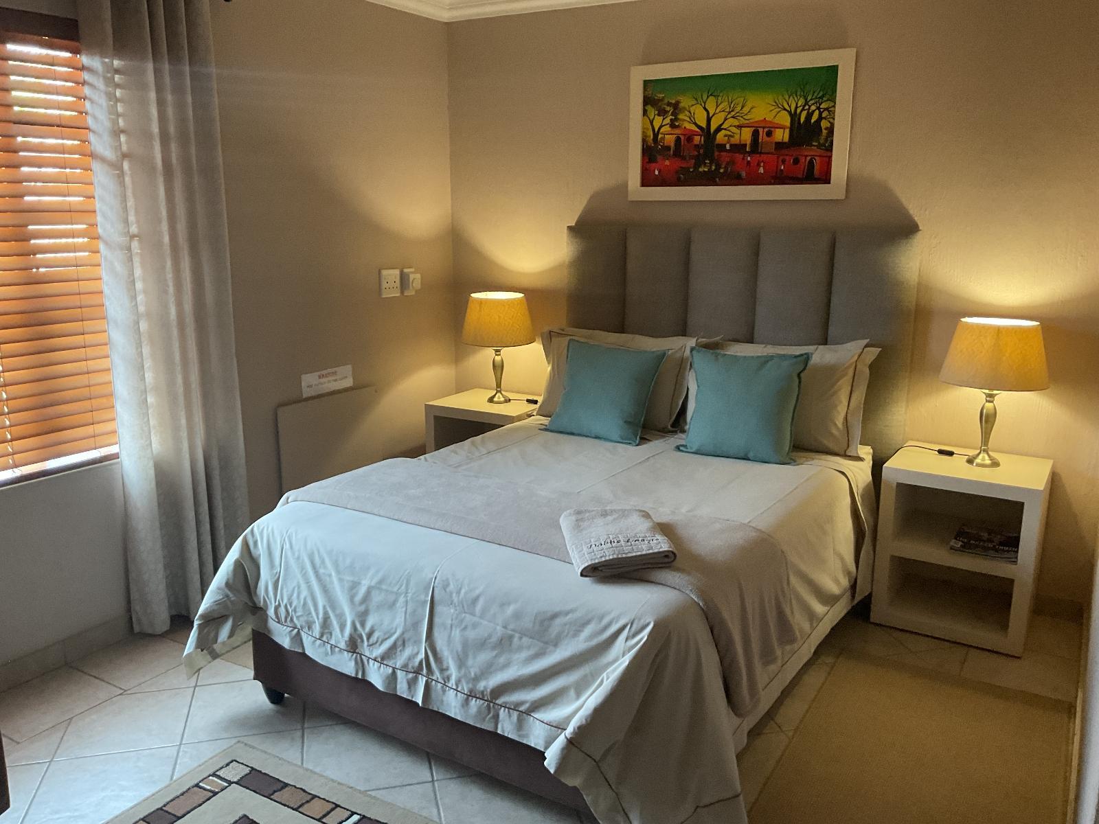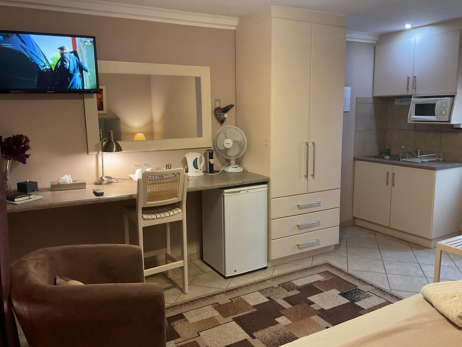 All rooms have a double bed . Each room has 32Cm tv with 7 channels available including DSTV, Wi-Fi, Bar Fridge, Hair dryer, Air-con, Panel Heaters, Iron On request, Cutlery & crockery, Tea/Coffee.