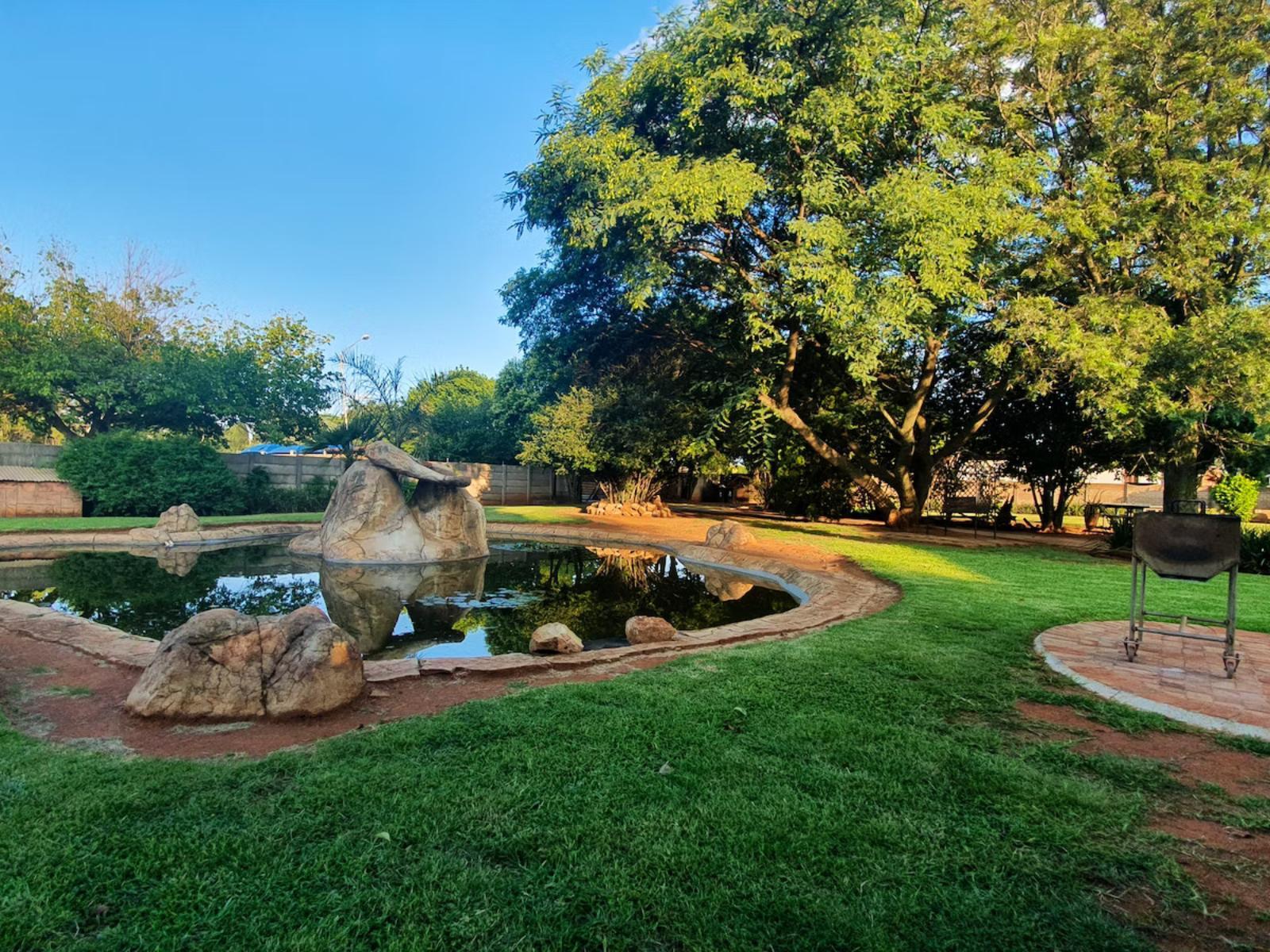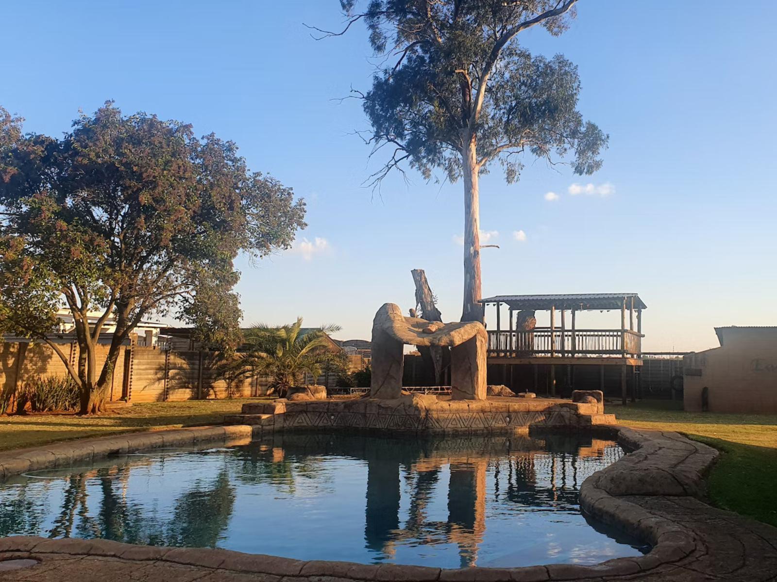 Eastwoods Lodge is near to all local industry and amenities, including easy access to both the N12 and N17 freeways. There are a total of 14 double rooms. There are six rooms with two three-quarter beds in each and an en-suite bathroom with a shower. Eight bedrooms have queen-size beds and an en-suite bathroom with a shower. The Honeymoon Suite contains a queen-size bed and an en-suite bathroom with a shower-over-bath. The lodge has a swimming pool, spacious garden, braai facilities, pizza oven, dart board and other board games, a sundowner deck, a cosy African-style bar/restaurant with a fireplace, an airport shuttle service on request, and free and secure parking. Daily housekeeping is available.