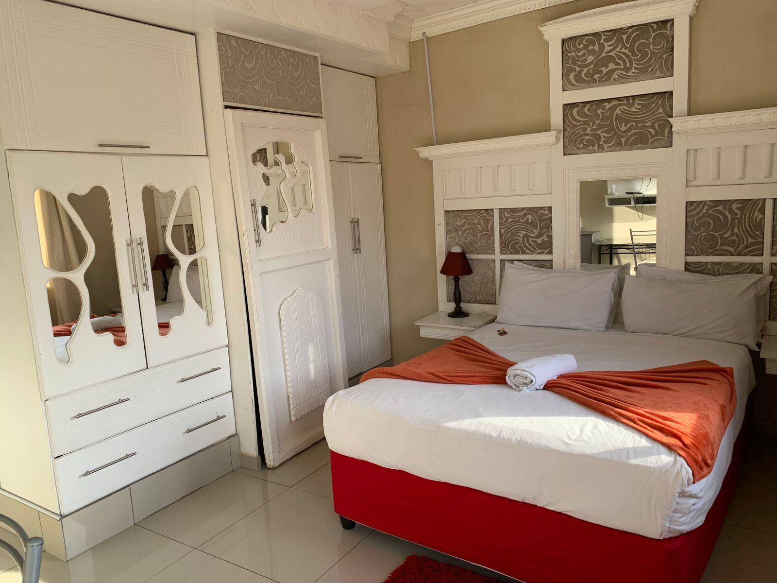 Standard Double Room with double bed, Air-conditioning, Coffee/Tea maker, TV, Desk, DStv, Full Kitchen, Shower only.