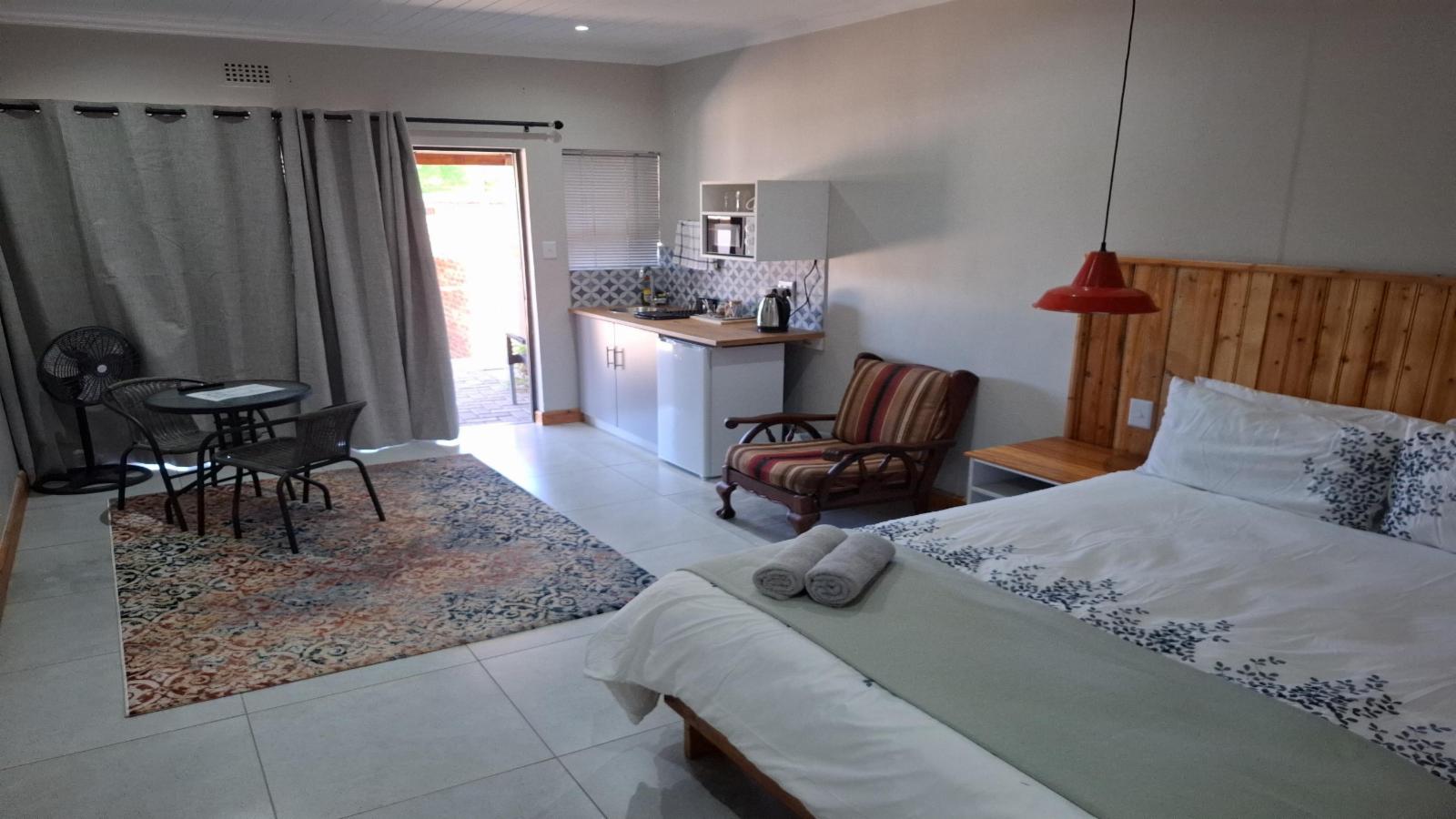 Figtree Guesthouse in Colesberg offers quality, comfortable accommodation ideal for both small families and business travellers, and is conveniently located close to the N1 highway, local shops, and restaurants. The guest house provides private, soundproofed units designed for a peaceful stay. Accommodation options include Deluxe Double, Triple, and Family Rooms, with the Deluxe Family Room being notably spacious at approximately 48 square meters. Guests have praised the accommodation for its cleanliness, comfort, and excellent value for money, making it a highly-rated stopover on long journeys. Each well-appointed guest room at Figtree features an en-suite bathroom, which includes a shower, toilet, and basin. Many rooms boast a spacious shower, with a reviewer specifically noting a "spacious bathroom and shower" as a highlight of their stay. For added convenience, the self-catering units come with a practical kitchenette area equipped for 'heat-and-eat' meals, including a bar fridge, microwave, and tea/coffee-making facilities with necessary crockery and cutlery. Beyond the comfortable interior, Figtree provides a range of desirable amenities to enhance the guest experience. The property is pet-friendly by arrangement and features a lovely garden and outdoor seating area, often praised by guests travelling with their pets as an "awesome garden" for dogs to play. Other key features include free private parking on the premises, complimentary Wi-Fi, barbecue facilities for outdoor cooking, and private check-in/check-out for an easy and discreet arrival and departure.