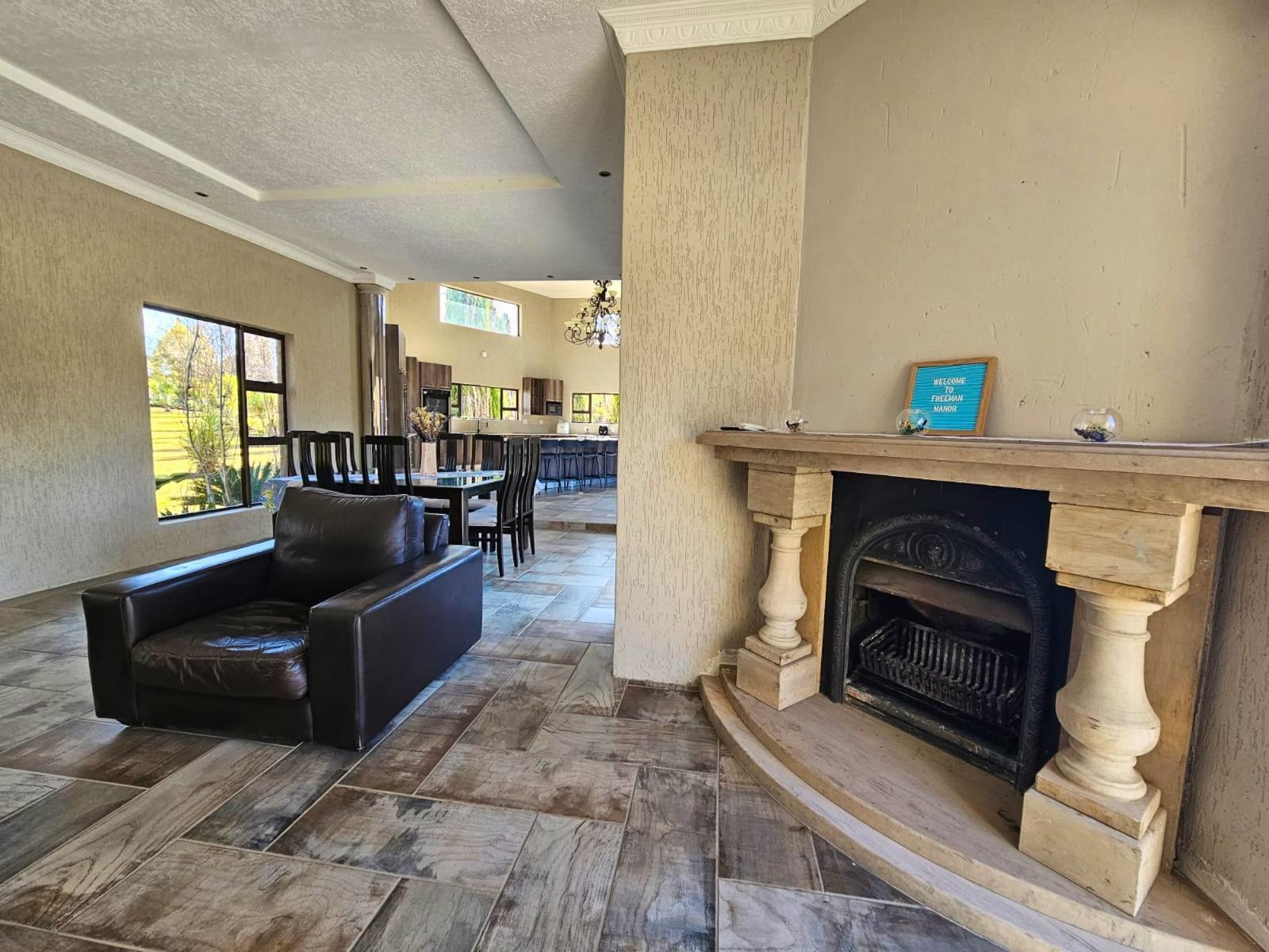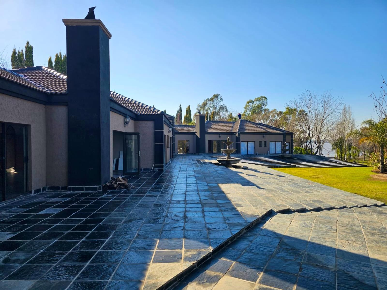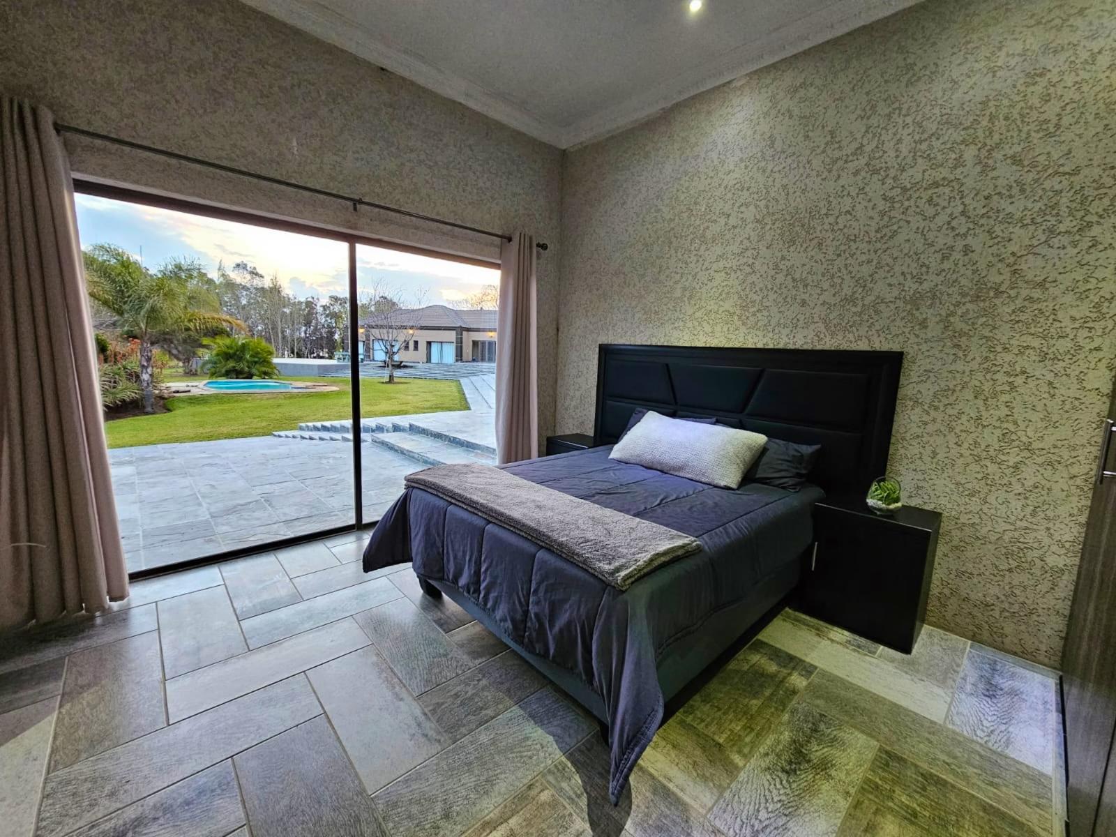 Nestled within the prestigious Peninsula Estate in Oranjeville, Freeman Manor - Peninsula is an unparalleled luxury villa. This exceptionally spacious and beautifully appointed residence offers every modern convenience and thoughtful amenity for an uplifting stay. It serves as the ideal, exclusive retreat for large families or sophisticated groups of friends seeking a five-star experience in total privacy. Designed for unparalleled comfort and privacy, the villa features twelve lavish, individually designed en-suite bedrooms, each appointed with a comfortable queen-size bed. This generous setup ensures every guest enjoys a private retreat, perfectly suitable for large families or sophisticated groups of friends, with a maximum capacity of twenty-four guests. The en-suite bathrooms offer convenience and choice; all bedrooms are equipped with modern walk-in showers, and three feature relaxing soaking baths. The heart of the home is the expansive, open-plan living area, engineered for seamless socialising and dining. The area centres around a gourmet-ready kitchen, fully equipped with an oven, stove, microwave, fridge-freezer, and dishwasher, plus the modern convenience of an air fryer. Guests can gather casually at the breakfast bar with stools. Adjacent to the kitchen, an 8-seater dining table sets the scene for communal meals, leading directly into the primary lounge area. This inviting space features comfortable couches, a TV, and a cosy fireplace, ideal for relaxing evenings. Outdoors, guests can relax in the lush gardens, which feature a koi pond, a braai area, and a swimming pool
