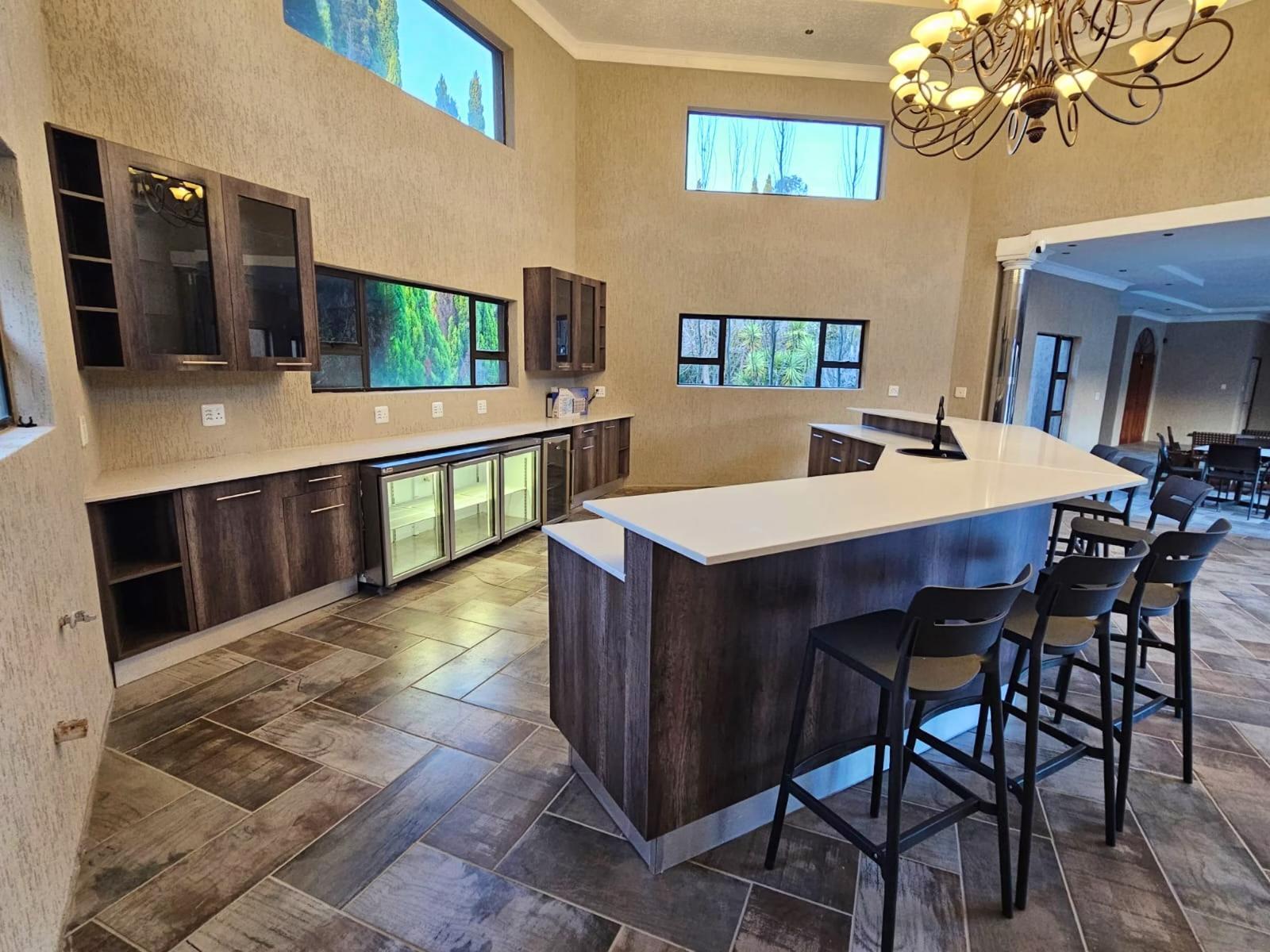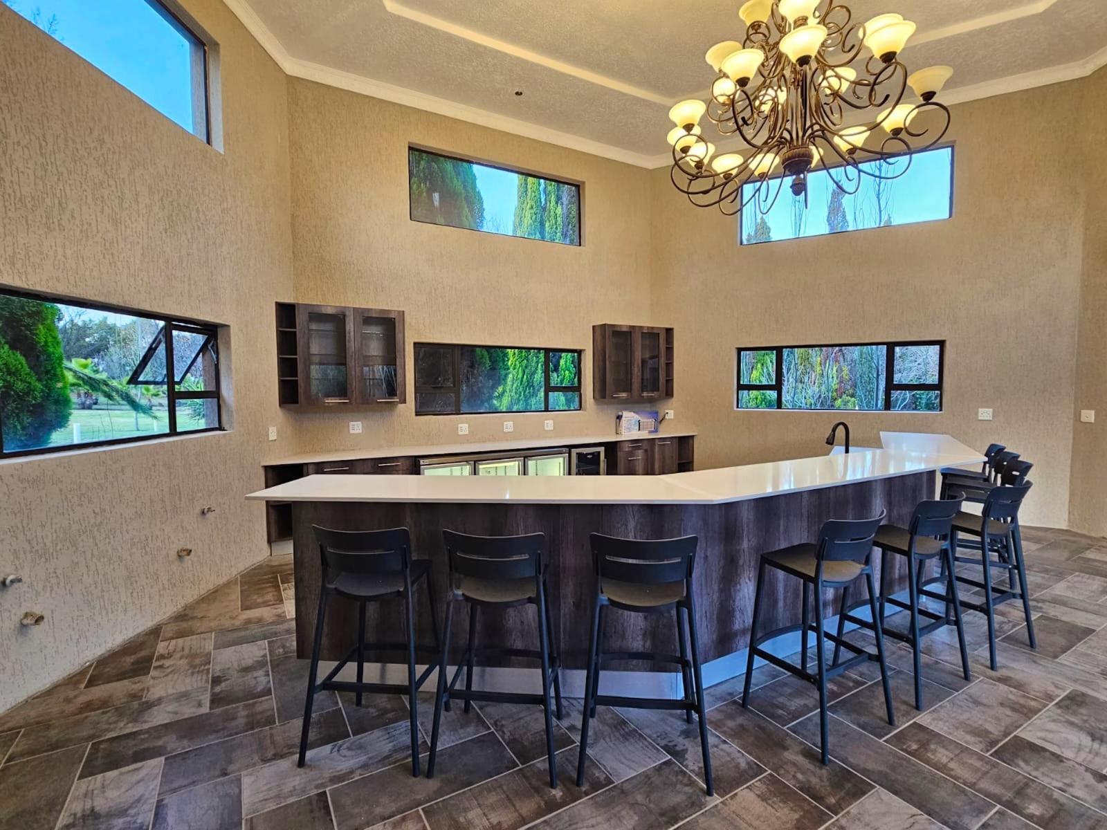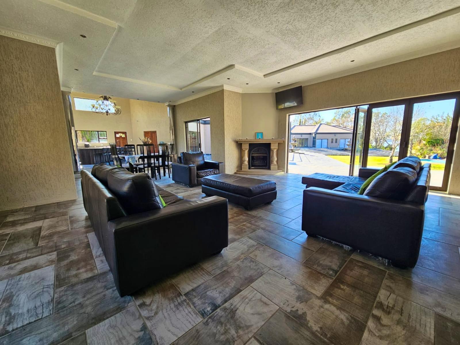 Nestled within the prestigious Peninsula Estate in Oranjeville, Freeman Manor - Peninsula is an unparalleled luxury villa. This exceptionally spacious and beautifully appointed residence offers every modern convenience and thoughtful amenity for an uplifting stay. It serves as the ideal, exclusive retreat for large families or sophisticated groups of friends seeking a five-star experience in total privacy. Designed for unparalleled comfort and privacy, the villa features twelve lavish, individually designed en-suite bedrooms, each appointed with a comfortable queen-size bed. This generous setup ensures every guest enjoys a private retreat, perfectly suitable for large families or sophisticated groups of friends, with a maximum capacity of twenty-four guests. The en-suite bathrooms offer convenience and choice; all bedrooms are equipped with modern walk-in showers, and three feature relaxing soaking baths. The heart of the home is the expansive, open-plan living area, engineered for seamless socialising and dining. The area centres around a gourmet-ready kitchen, fully equipped with an oven, stove, microwave, fridge-freezer, and dishwasher, plus the modern convenience of an air fryer. Guests can gather casually at the breakfast bar with stools. Adjacent to the kitchen, an 8-seater dining table sets the scene for communal meals, leading directly into the primary lounge area. This inviting space features comfortable couches, a TV, and a cosy fireplace, ideal for relaxing evenings. Outdoors, guests can relax in the lush gardens, which feature a koi pond, a braai area, and a swimming pool