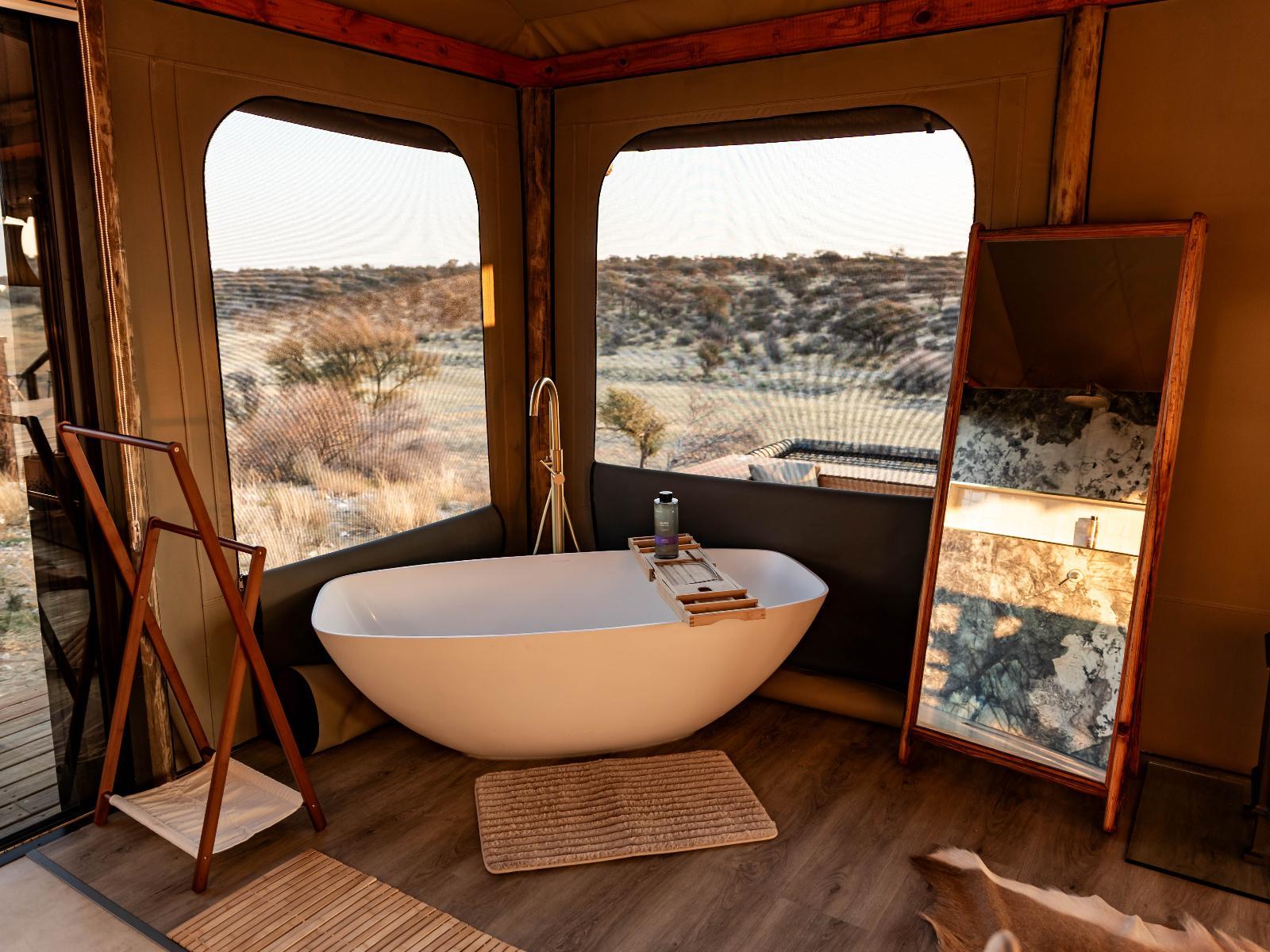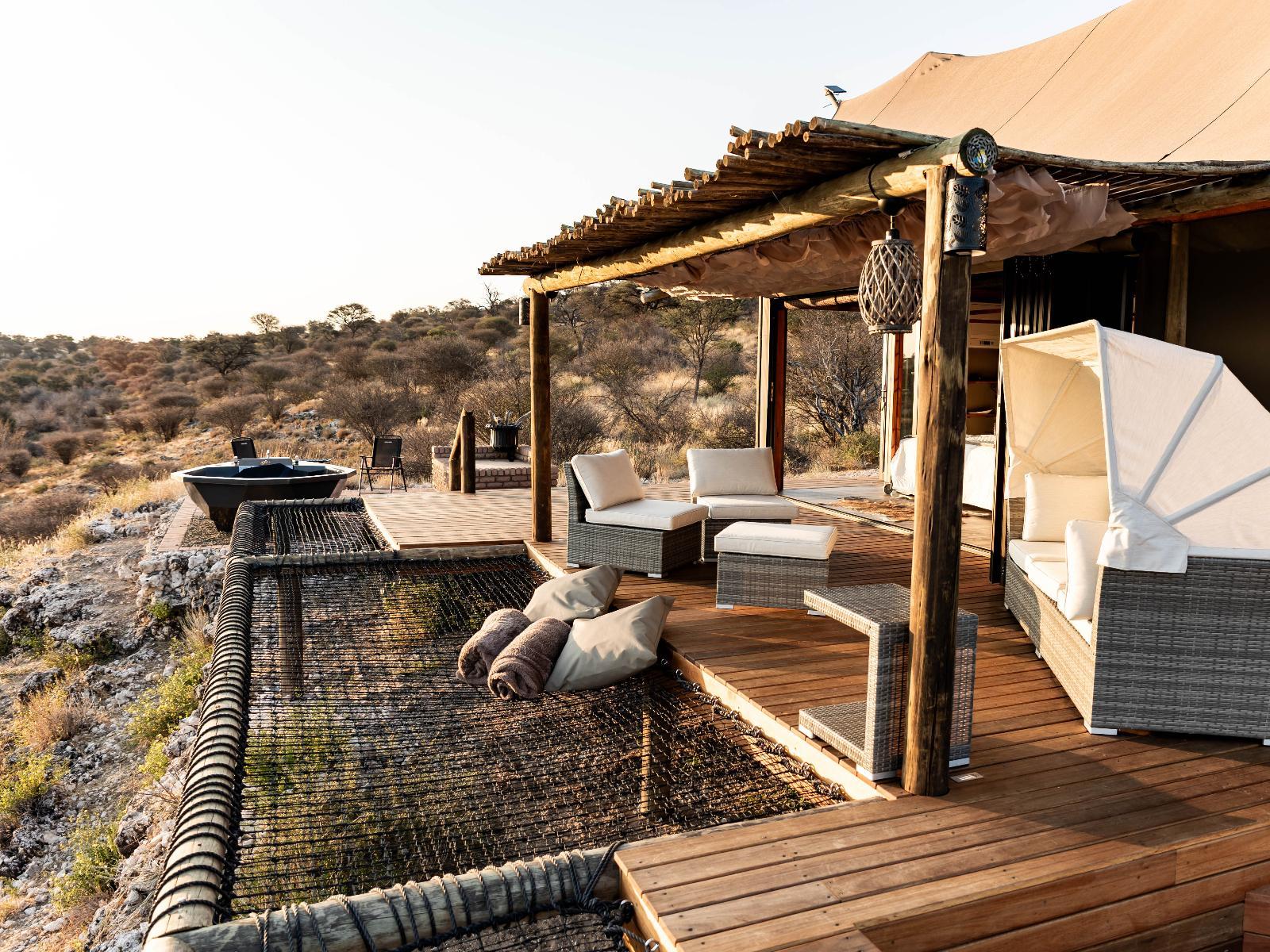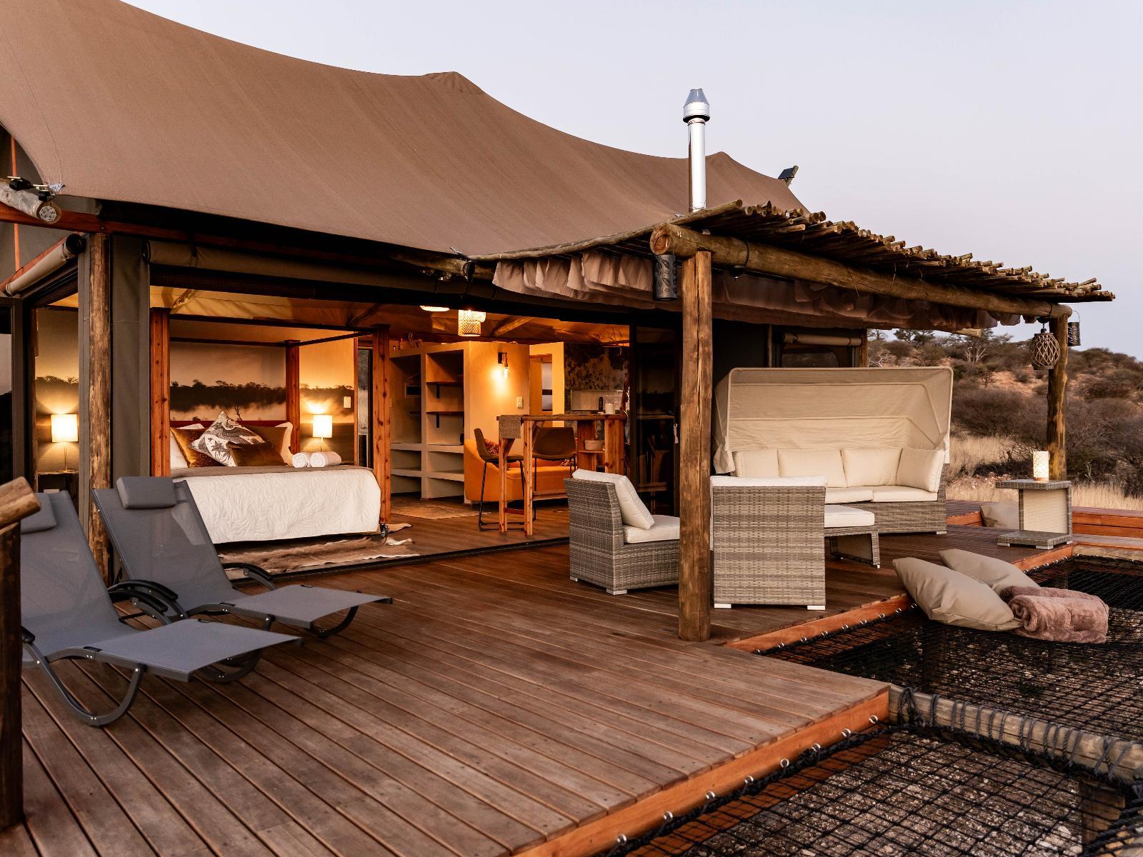 A private, self-catering luxury unit with a king bed. Open-plan bathroom with shower and bathtub, fully equipped kitchen, solar power, fireplace and water cooler. Outside deck, lounge, hot/cold tub and braai facilities. 4x4 vehicle access only.