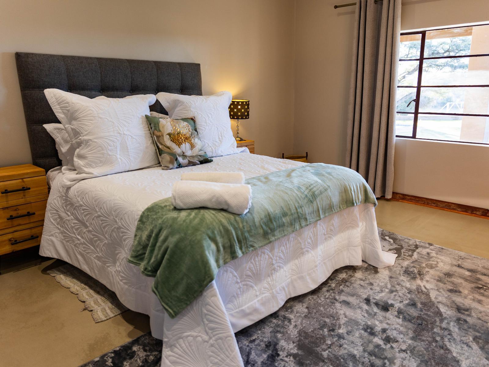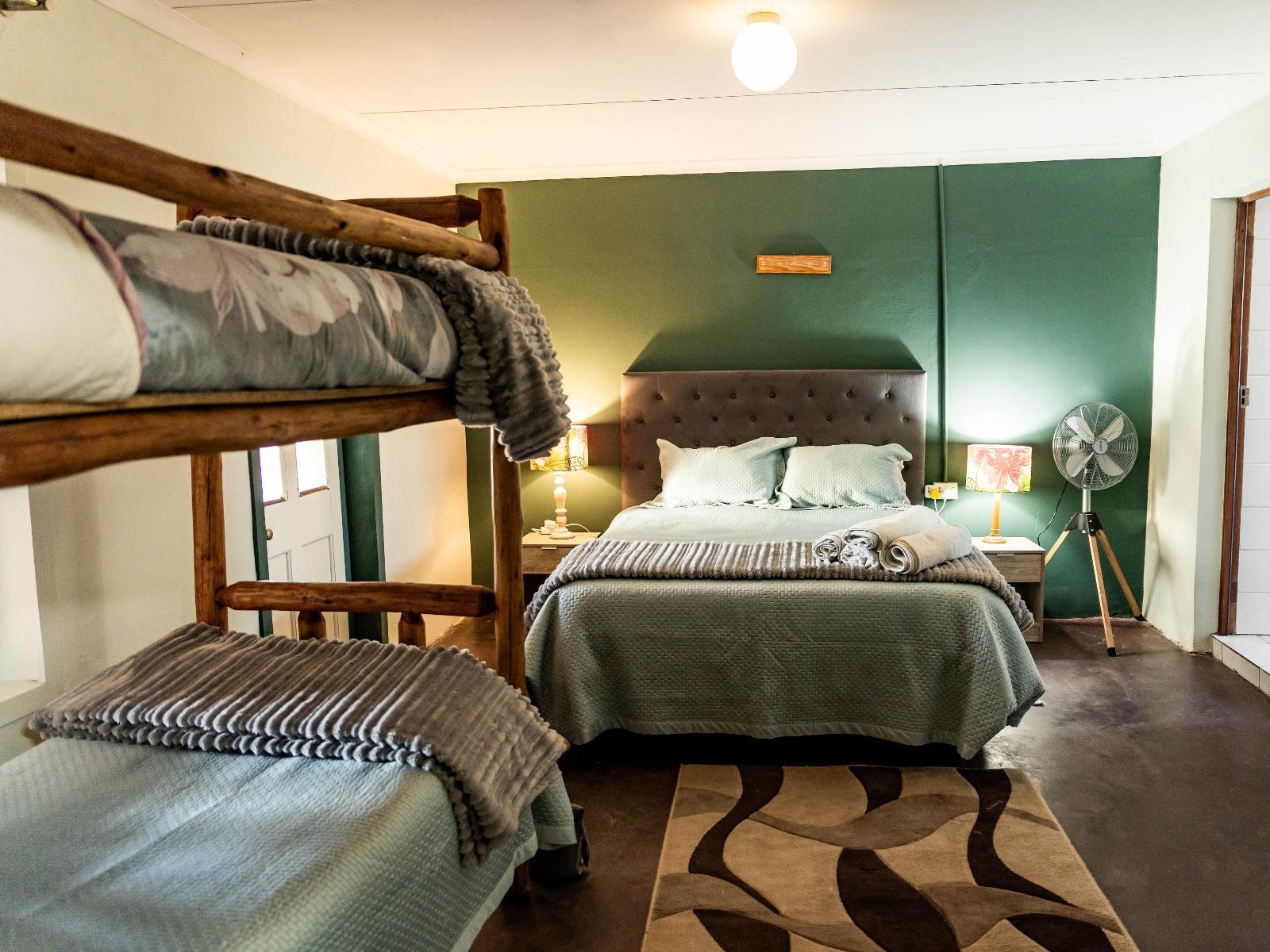 This room offers 1 queen and 1 three-quarter bed. Access to a shared full bathroom and full kitchen, sitting and dining room in the guesthouse. No Wi-Fi. MTN signal only. 12 km from the main venue hall. Tranquil and quiet, surrounded by wildlife.