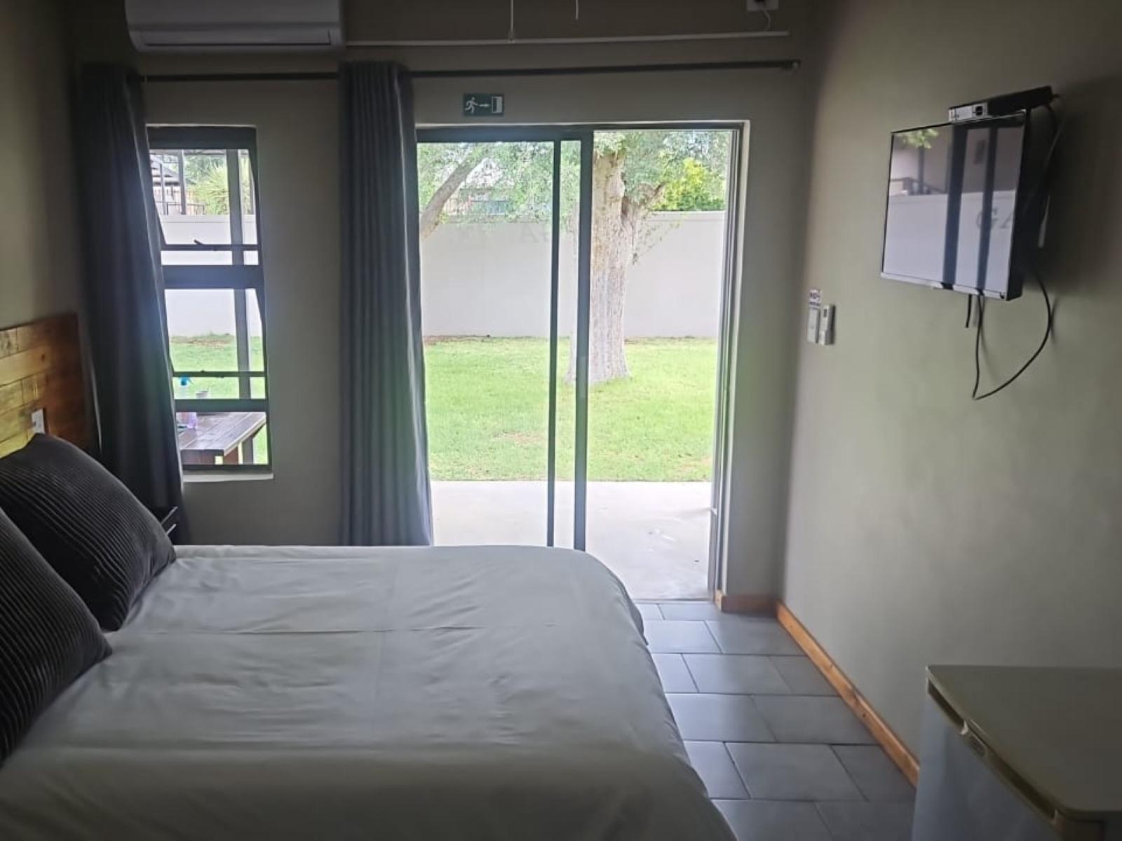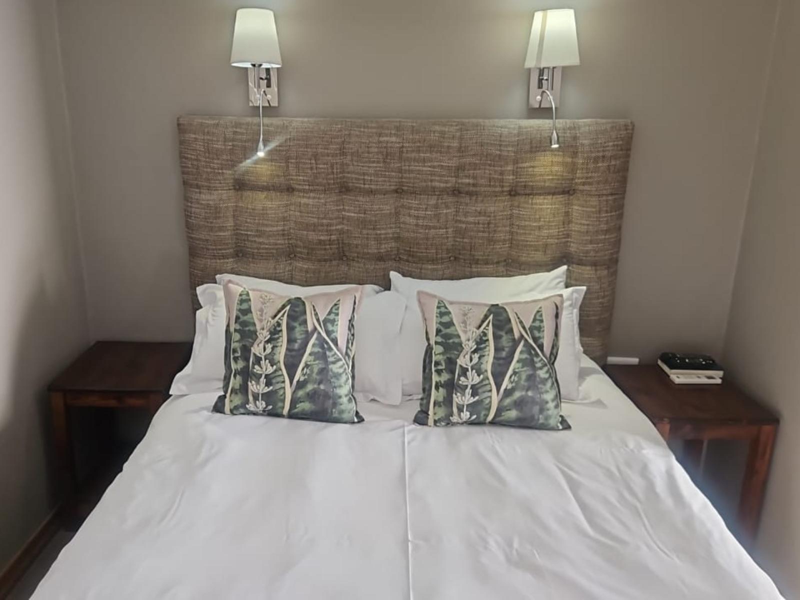 The Deluxe Double Room features a comfortable double bed and an en-suite bathroom. Amenities include a bar fridge, microwave, coffee and tea facilities, air-con, free Wi-Fi, a TV with DStv, a patio with seating, a communal pool, and a braai area.