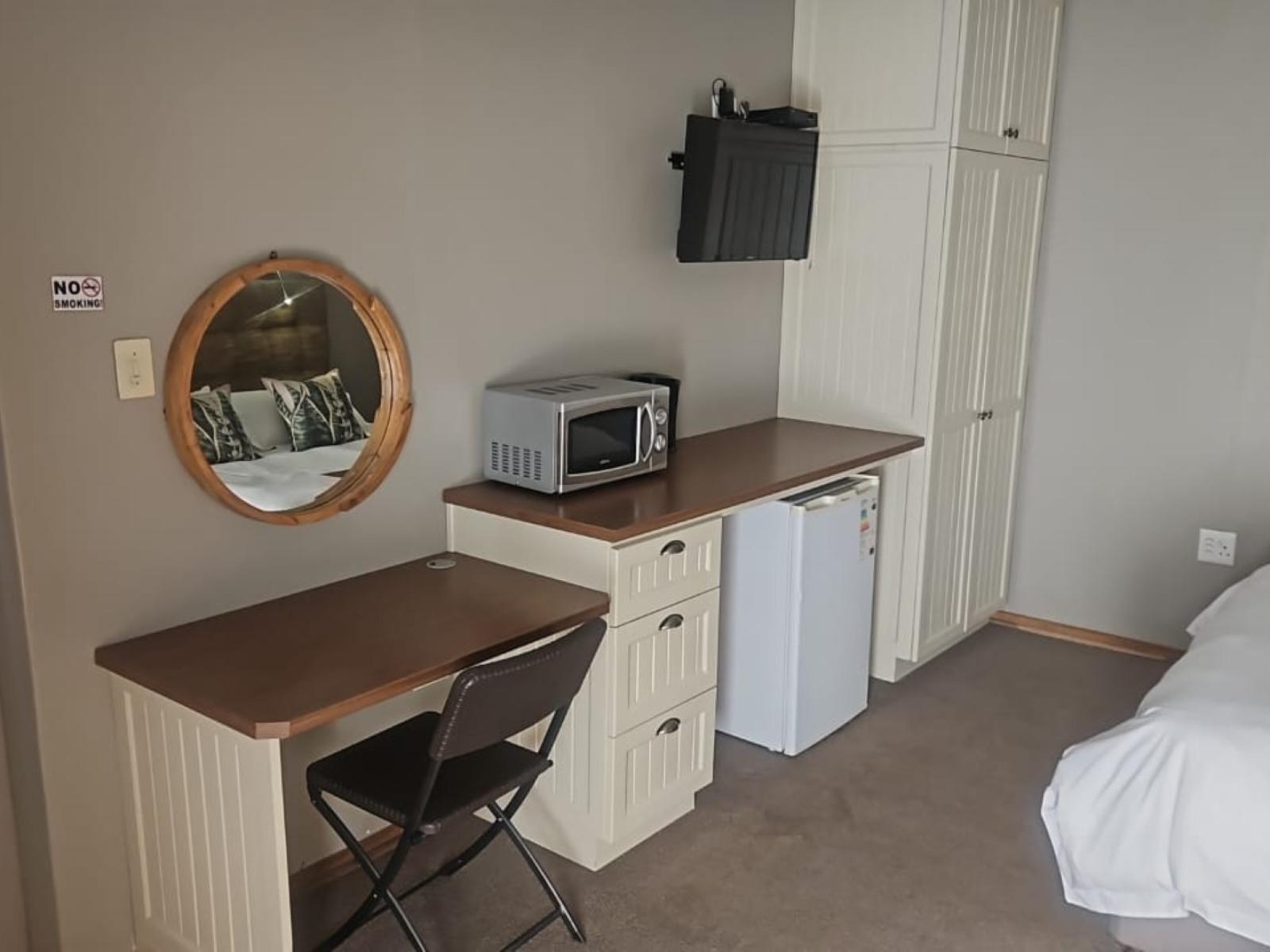 The Deluxe Queen Room offers a comfy stay with a queen bed and an en-suite bathroom with a shower. Wheelchair-friendly, it has a bar fridge, microwave, coffee and tea facilities, air-con, Wi-Fi, a TV with DStv, and access to a shared pool and braai area.