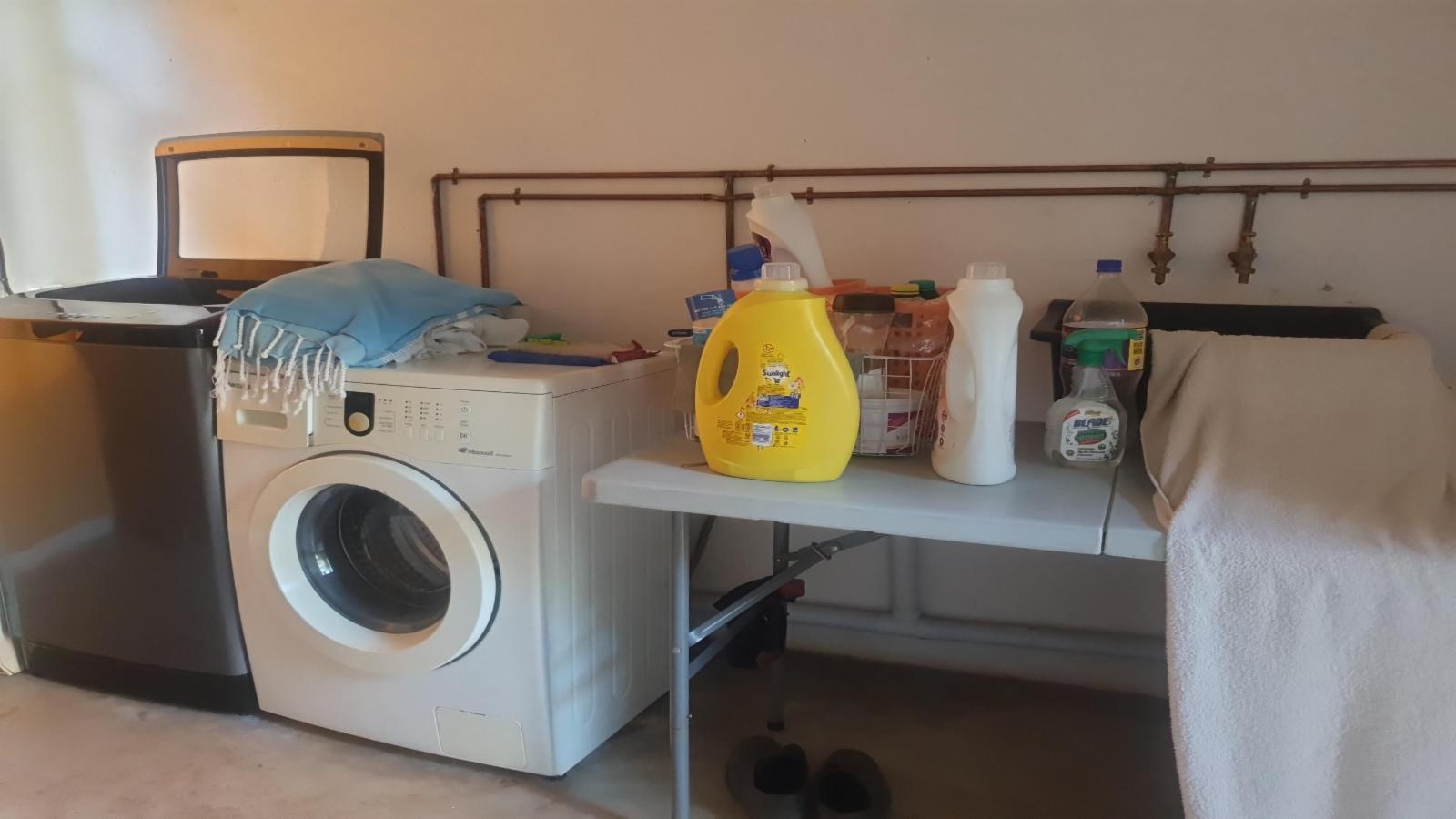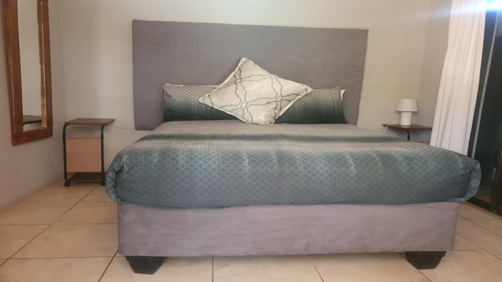 This studio has a double bed and an en-suite bathroom with a shower. The kitchenette includes a halogen oven, a microwave, a refrigerator and a toaster. It features a furnished patio with a drop screen, braai facilities and a small garden area.