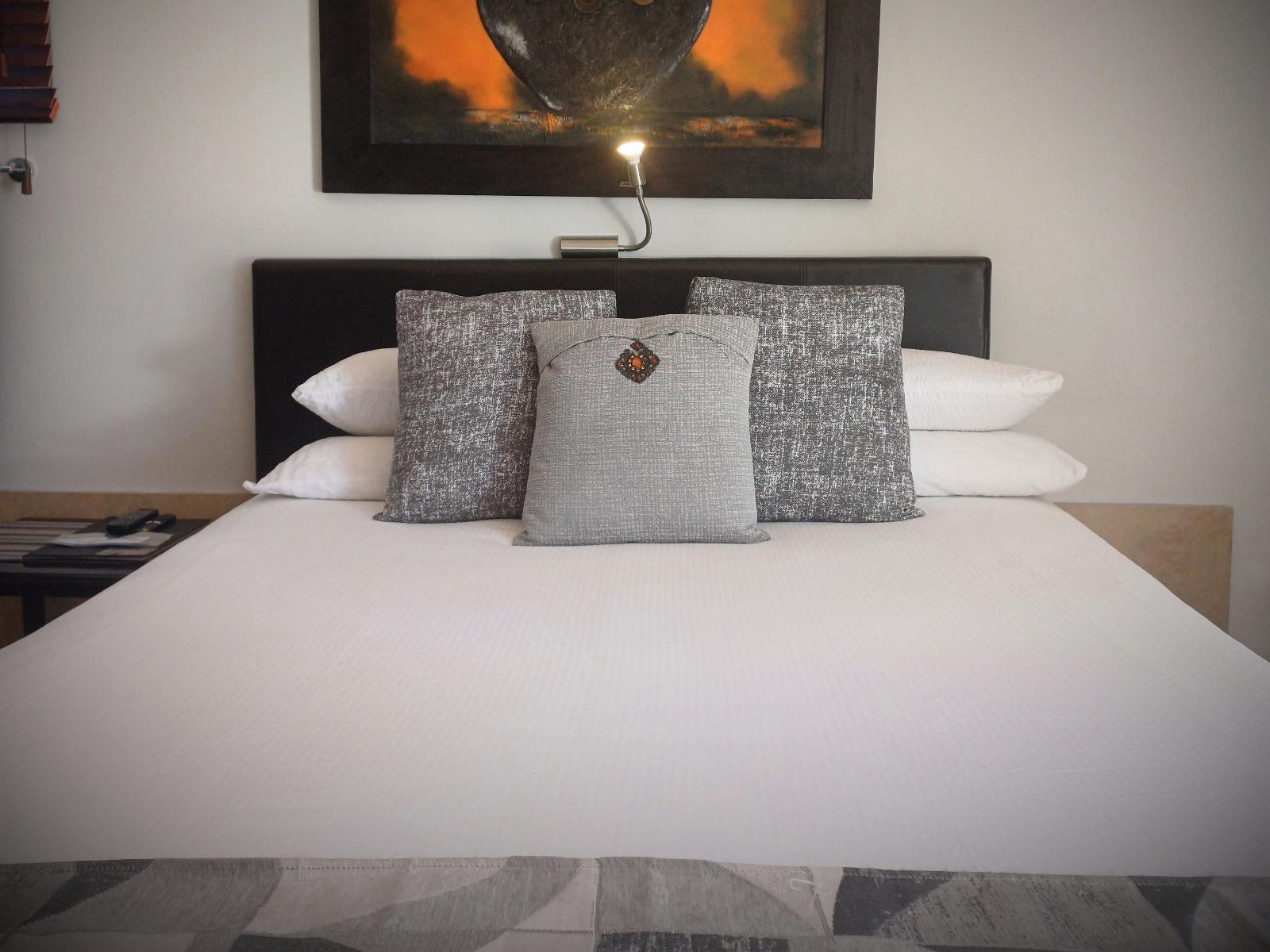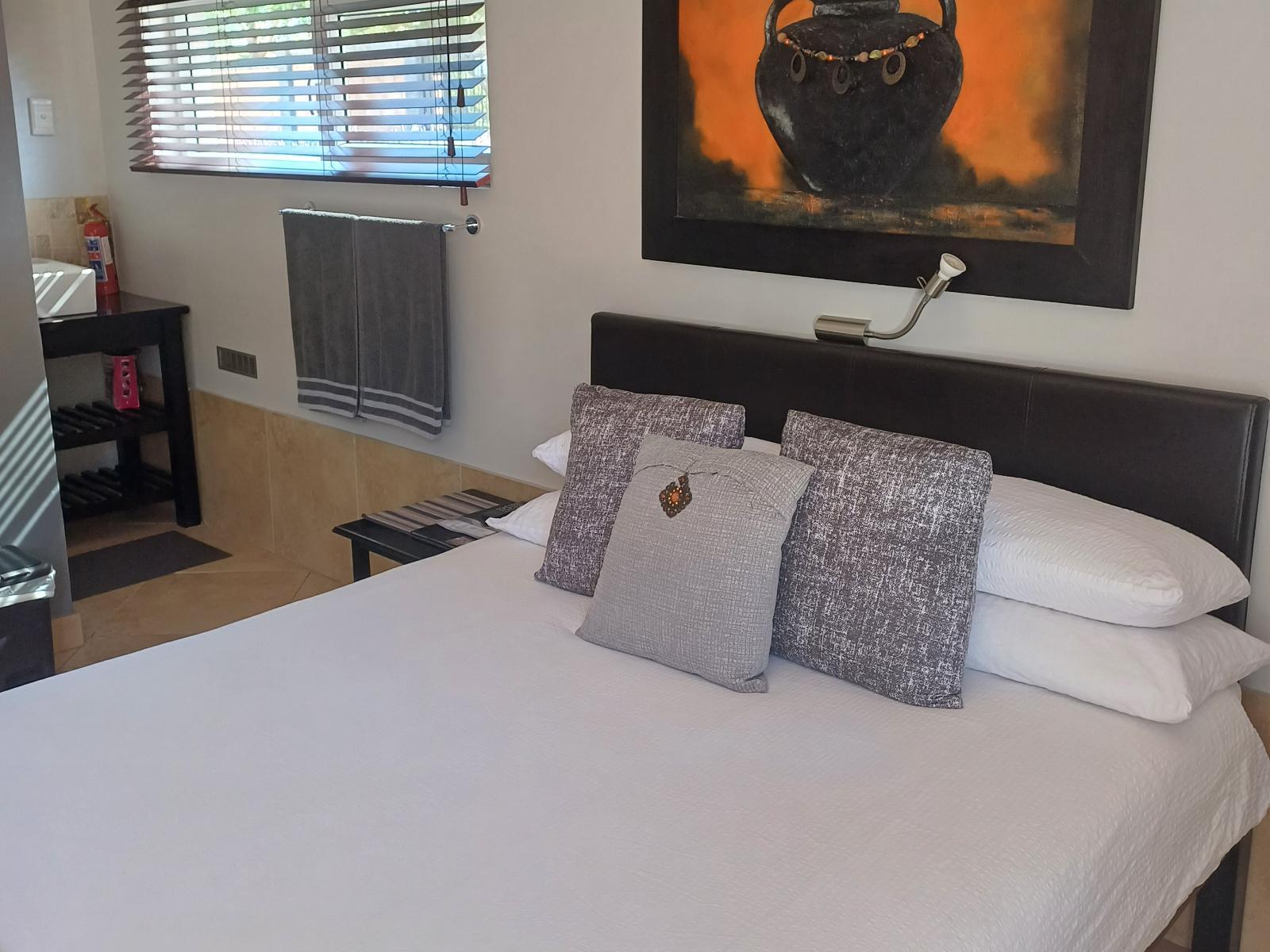 Luxury modern suite with a King Size Bed and en-suite bathroom, with a shower, basin and toilet. Double bed sleeper couch included in the room, as well as DStv, air-conditioning and free Wi-Fi Internet.