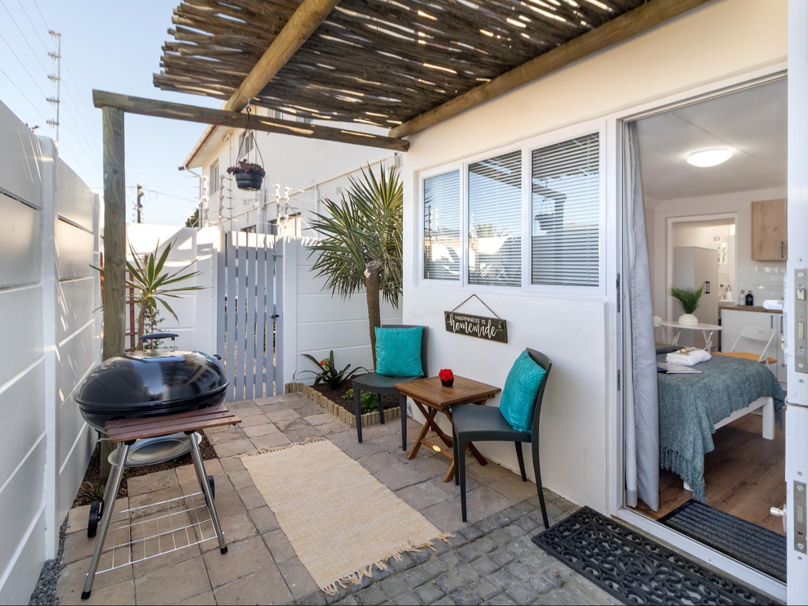 Escape to Hideaway, a stylish studio for 2 with a Queen bed and shower. It features a kitchenette (bar fridge, microwave, kettle, toaster) and a private courtyard with outdoor seating and a braai (BBQ) for relaxed evenings.