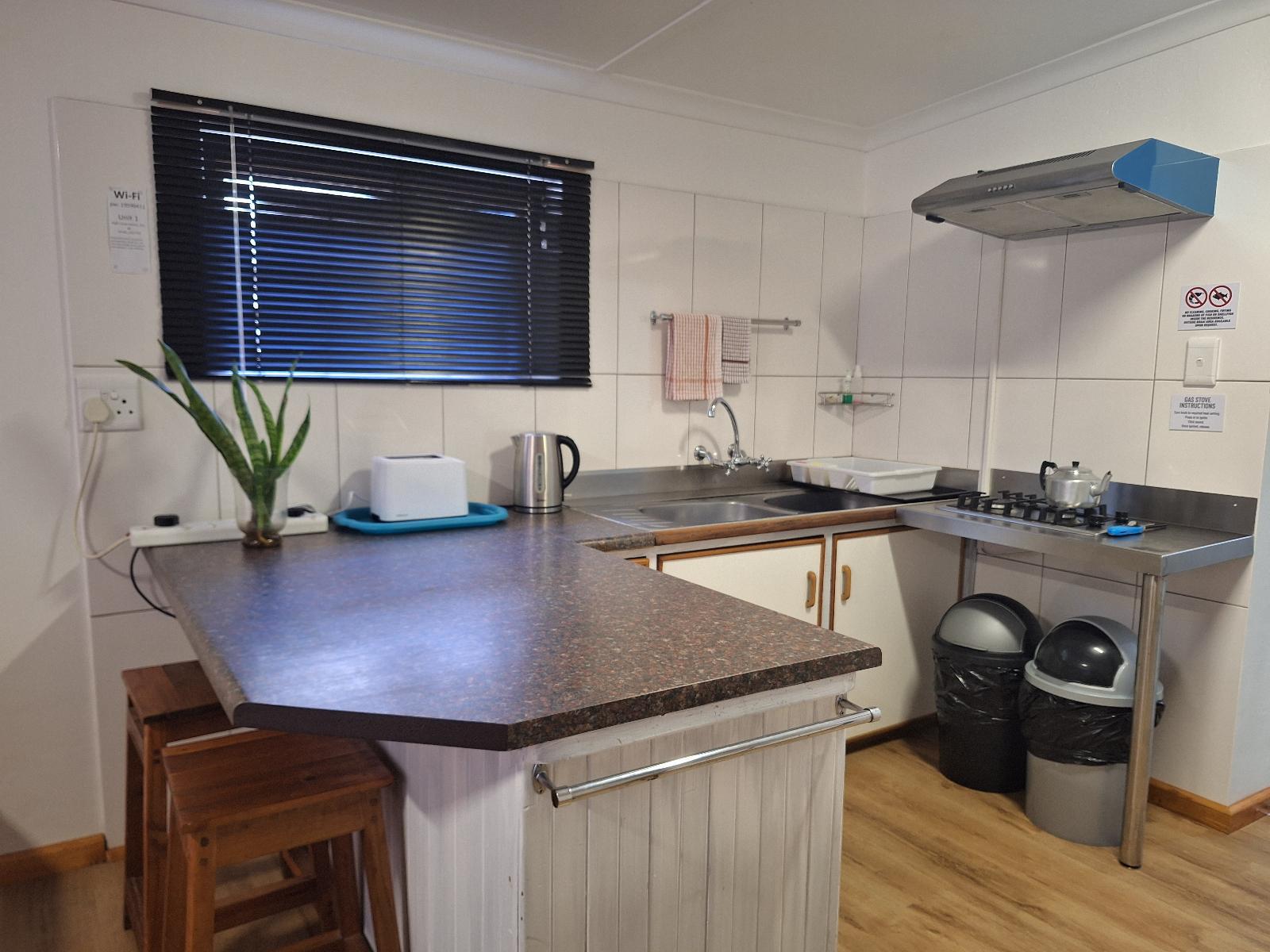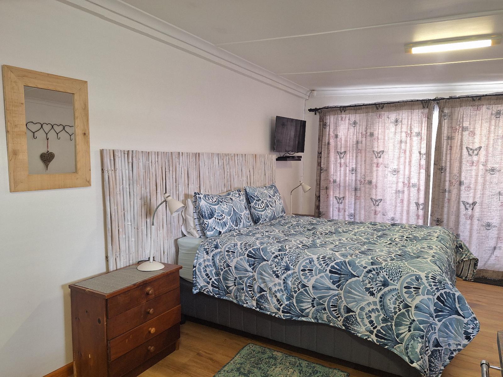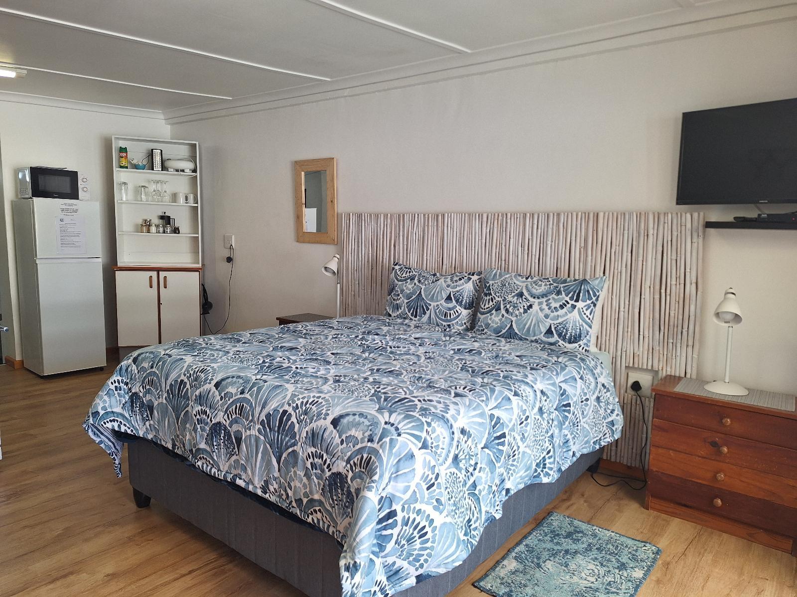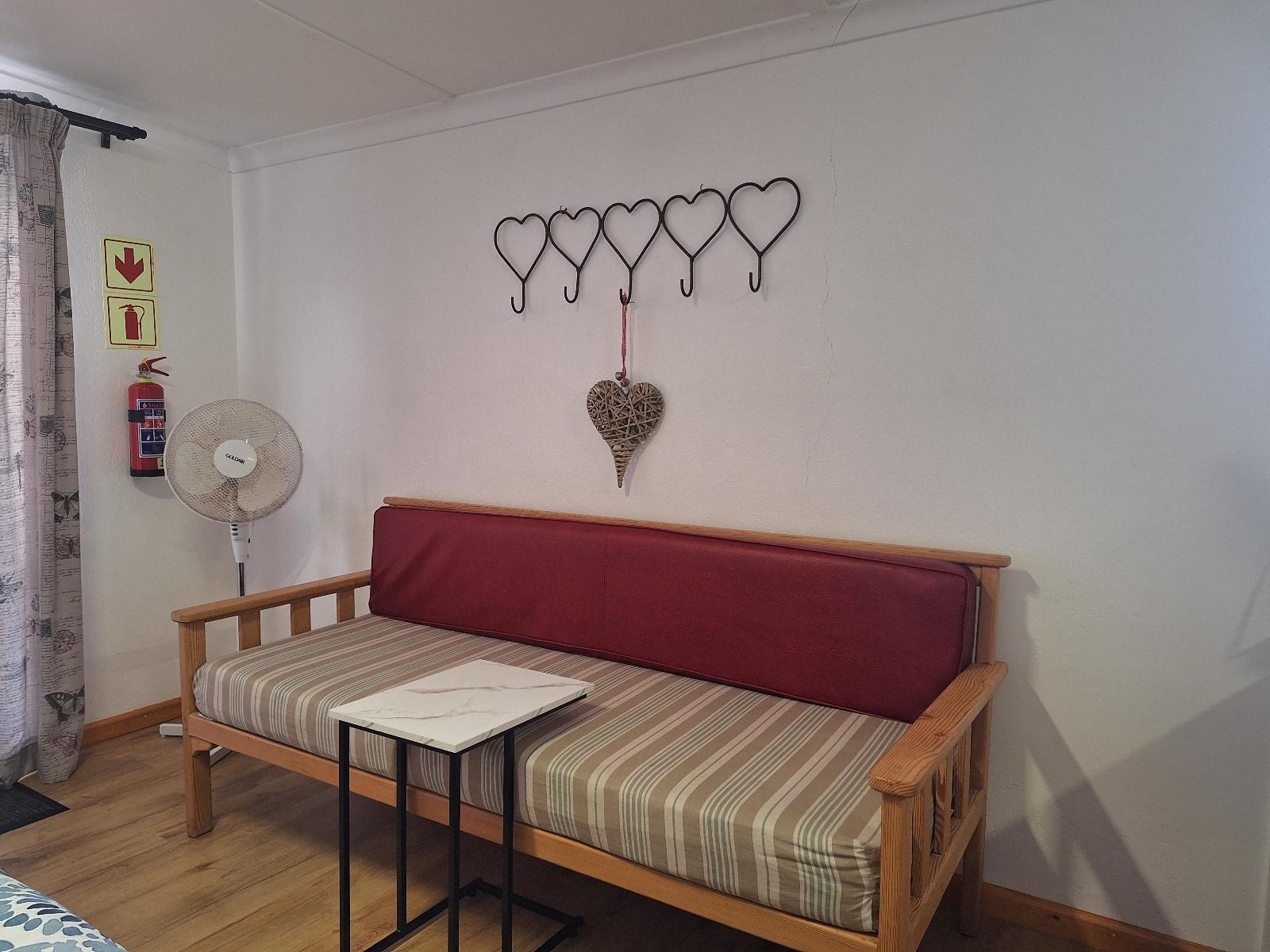 This charming studio has one queen size bed. The en-suite has a shower and include stairs. All self-catering needs are thoughtfully catered for. It has comfortable seating and a dining area. The cozy patio offers a private braai. Free parking and Wi-Fi.