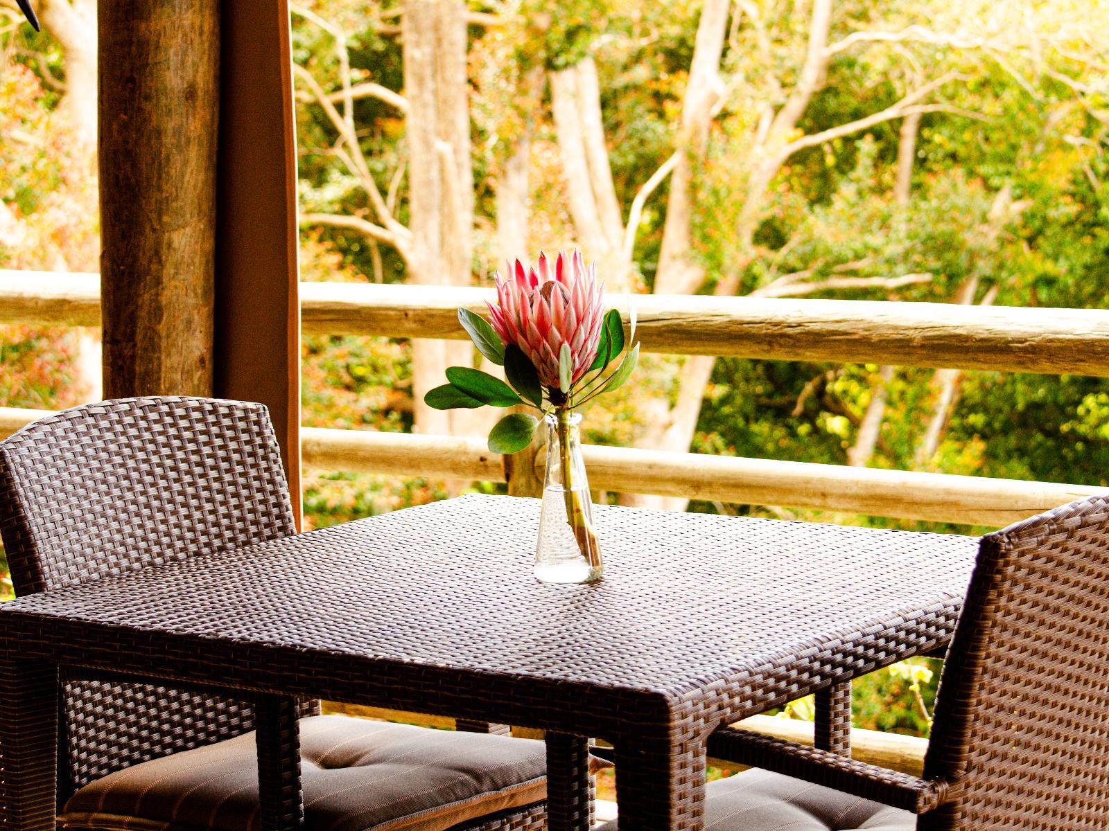 The Pumba Suite features its own private deck with double doors opening onto the tranquil garden. Inside, you’ll find a comfortable lounge area, a queen-size bed, and a luxurious bathroom with a double vanity and an elegant Italian shower.