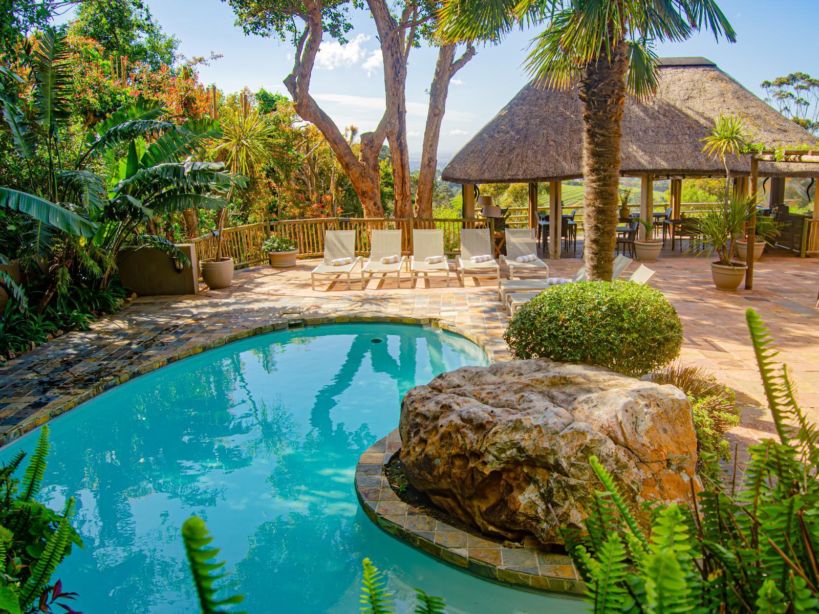 Unique to Cape Town, IKhaya Safari Lodge is decorated in true African safari lodge style. The lounge boasts an enormous fireplace and a wine cellar with the main dining room in open thatch. Kudu and Wildebeest heads adorn the walls with Zebra skins scattered on the wooden floors.