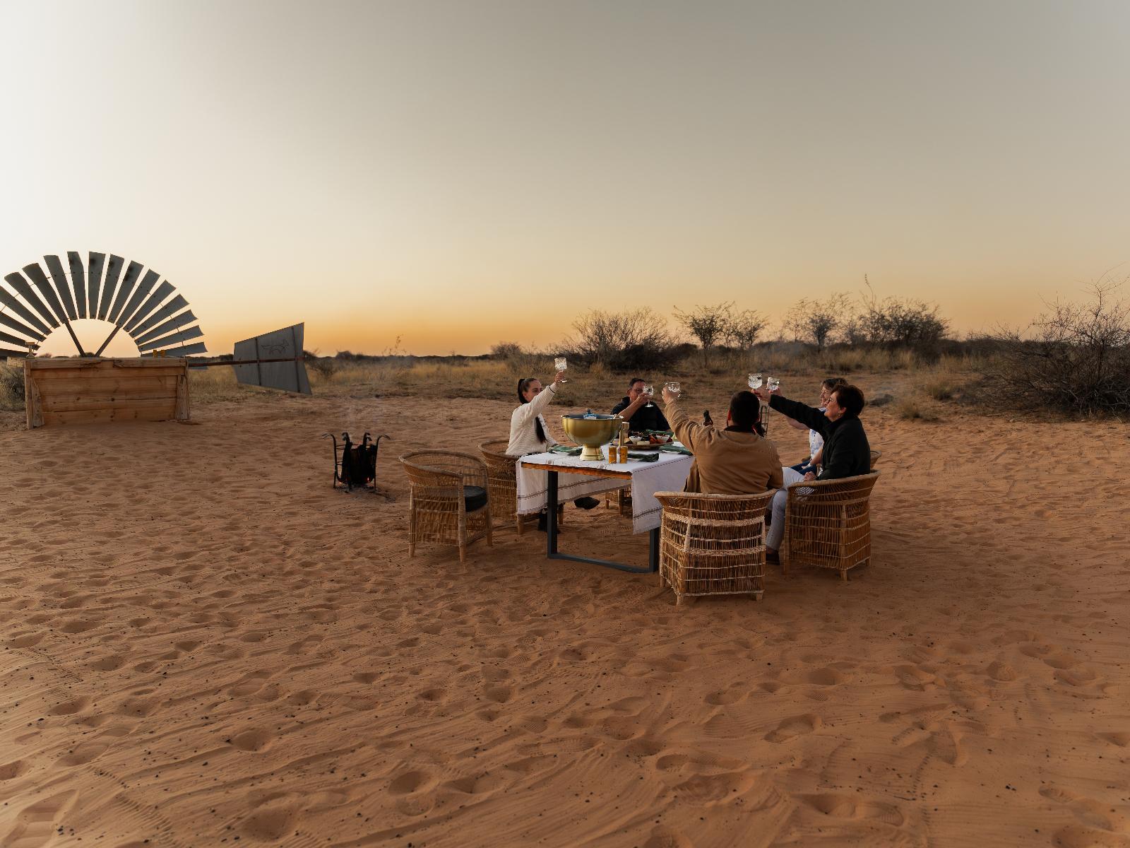 Welcome to Kalahari Erfenis where guests will experience an authentic, atmosphere-filled adventure in the heart of the Kalahari. Located 94 km from Klein Jan and en route to the Tlokweng Border Control for Botswana, Kalahari Erfenis is the perfect stopover on your way to Kgalagadi Transfrontier Park. Guests have a choice of spacious rooms, self-catering units, luxury tents at very reasonable prices and different activities like guided veld walks, bird-watching and sunset game drives to end the day with tranquillity. The lodge offers 4 beautifully appointed and individually designed rooms ensuring guest privacy. The Luxury Rooms contain either comfortable double beds or twin beds that can convert to a king-size bed. The air-conditioned rooms each have an en-suite bathroom with a shower and a toilet. The air-conditioned rooms are equipped with TVs with DStv, free Wi-Fi, a coffee station and open to a private outdoor area with seating. The Safari Units each have private entrances with a private braai area for both indoor and outdoor use. The 3-sleeper unit contains a king-size and a single bed, while the 2-sleeper has a queen-size bed only. Each unit has a private bathroom with a shower and an outdoor shower. The kitchenette offers a 2-plate stove and mini oven, a microwave, a fridge and tea and coffee facilities. Undercover caravan parking is also available. Equipped with solar electricity, the Luxury Tents are furnished with comfortable double or twin beds and have private bathrooms with showers in an ablution block. Each of the tents has a private braai area and all tents share the use of a communal kitchen with a gas stove and a fridge. A function area with a boma, a projector and fans are available. Kalahari Erfenis offers a unique luxurious dining experience in a Kalahari veld setting and various activities from guided veld walks, sundowner game drives, brunch and veld braais, mountain biking trails, eco farm runs and bird watching. The conference and function venue is located near the entrance and is the perfect breathing space for functions or brainstorming sessions while the terrace at the main building is a lovely area with an unobstructed view over the veld, the perfect space for smaller, intimate gatherings. The Veld ceremony offers the ideal setting to celebrate your eternal love and timeless elegance in the heart of the Kalahari DeStoep Winkel offers up-market products and stocked shelves with proudly South African products for our clients’ luxury lifestyle needs. Break away from the city and enjoy uninterrupted Kalahari views to ensure continuous connections with nature. The evenings and early mornings are serene with springbucks and hemsbok roaming on the lodge’s doorstep.