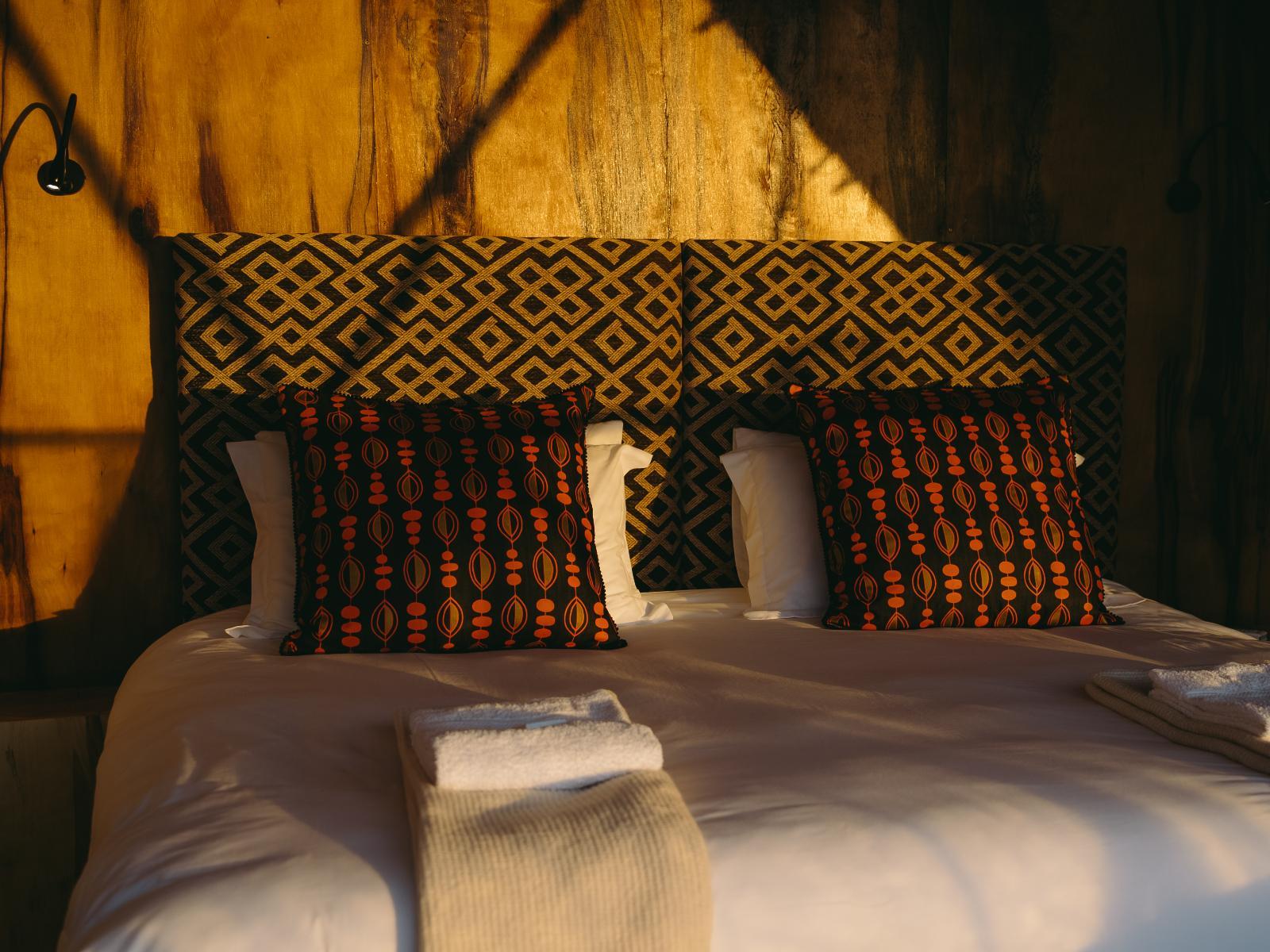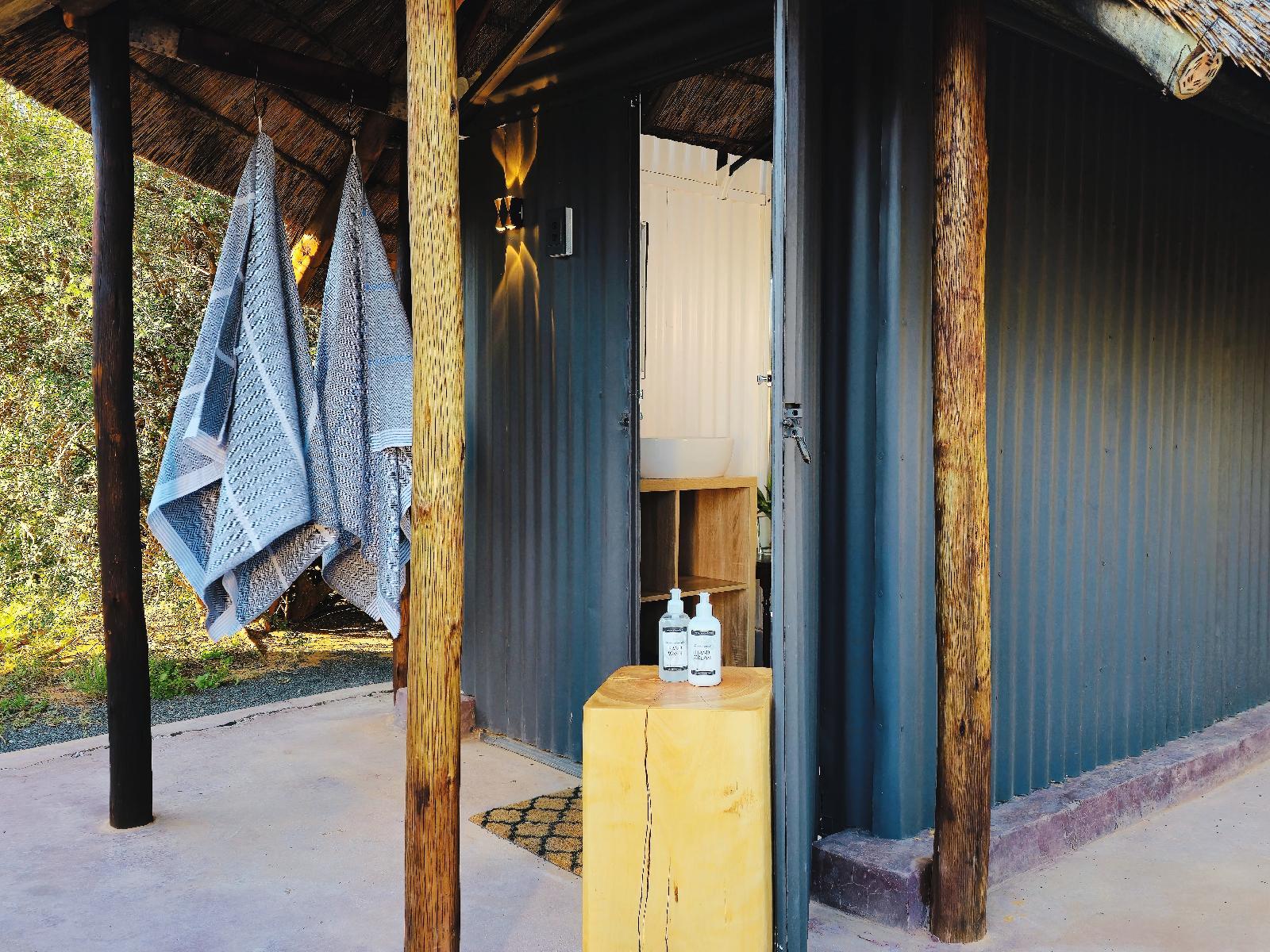 King-size or twin beds. Bathroom with shower. Braai pit, plunge pool / wood-fired hot tub and ample parking space. Fold-up camping mattresses for children. Kitchen rondawel with gas cooker, fridge, microwave.