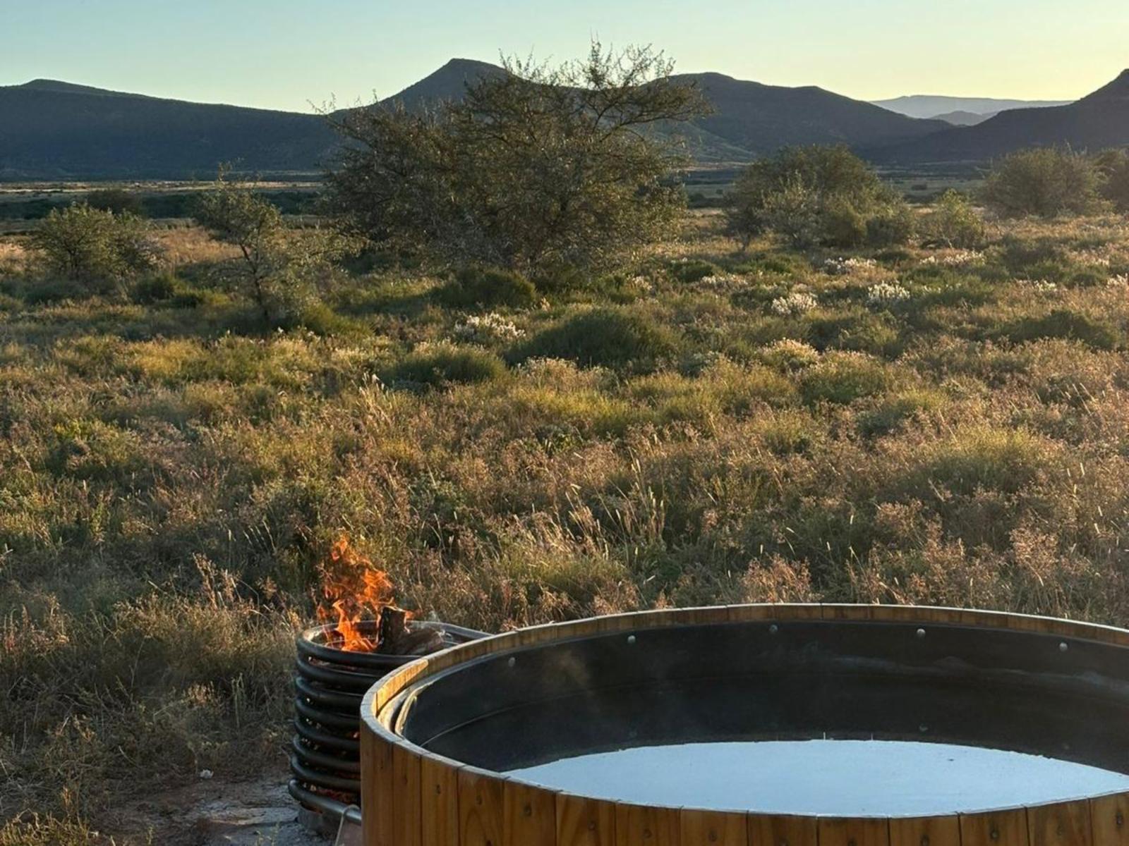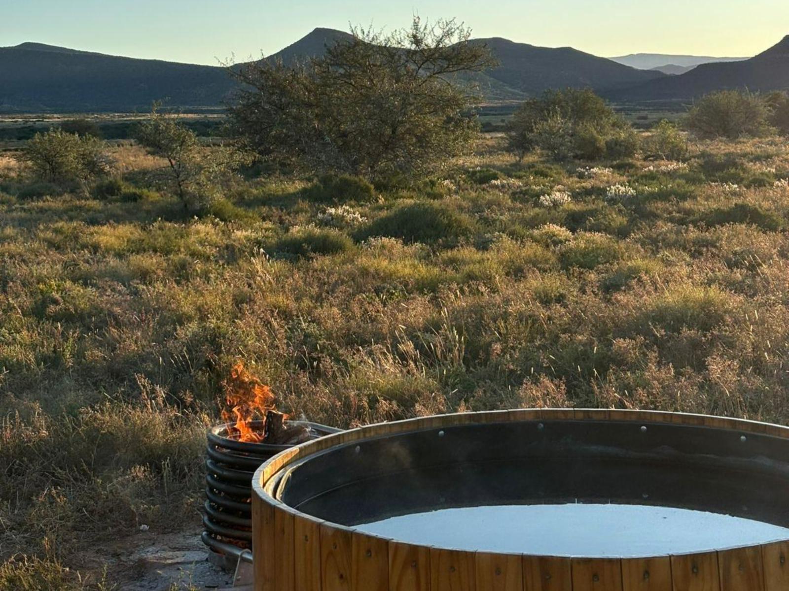 Located on a holistically managed farm in a 76,000-hectare conservancy, The Karoo Dome invites guests to experience a different kind of camping, where the vastness of the semi-desert meets modern amenities. The Karoo Dome features a king or twin beds, a cooking and a dining rondawel, braai pit, rondavel bathroom with a shower and a tasteful blend of contemporary and antique furniture. The Dome also provides a wood-fired hot or cold water tub, ample parking, and a well-equipped kitchen area. There are folding camping mattresses for children. Guests will find the Conservancy secure, with entry by appointment only. Please remember to bring all provisions from Graaff-Reinet, as there are no nearby shops. The Karoo Dome is an ideal destination for those seeking to unwind in a pristine, unspoiled environment. Graaff-Reinet, the fourth oldest town in South Africa, offers a variety of historical attractions, charming shops, and restaurants, providing a delightful complement to your stay in the breathtaking Camdeboo Conservancy.