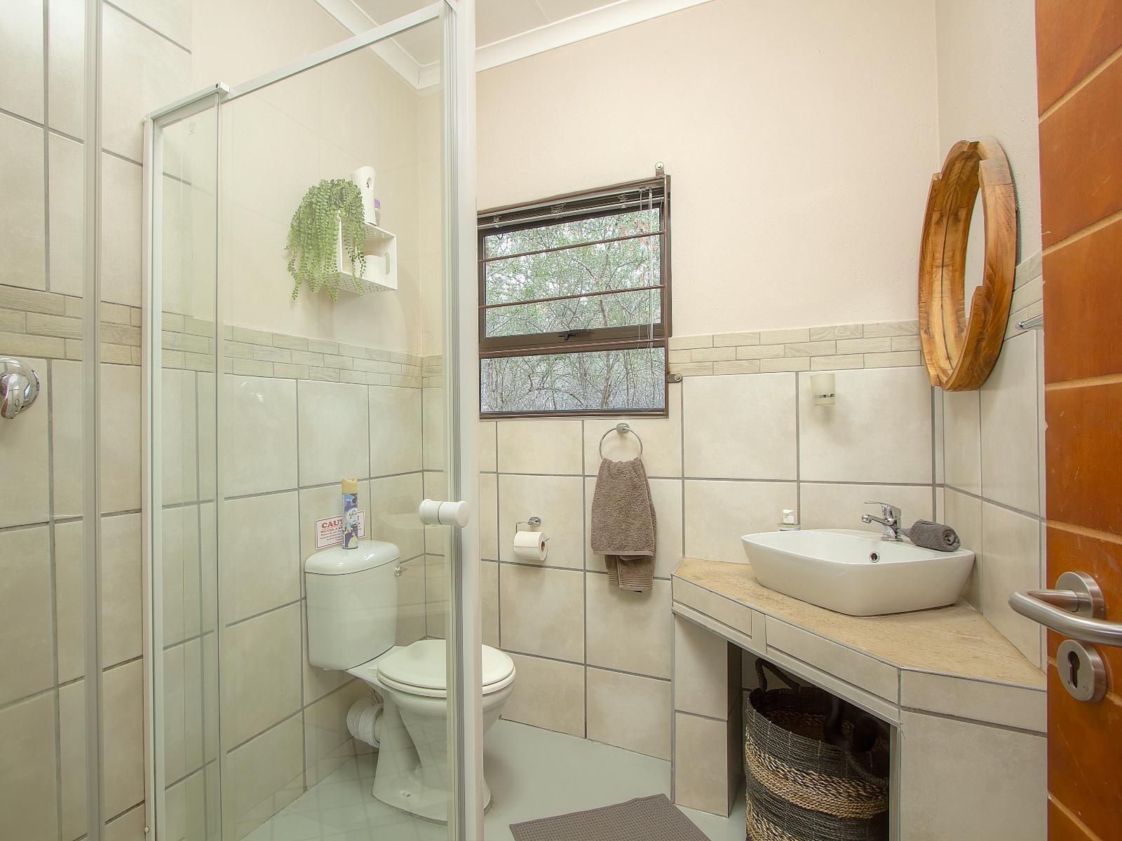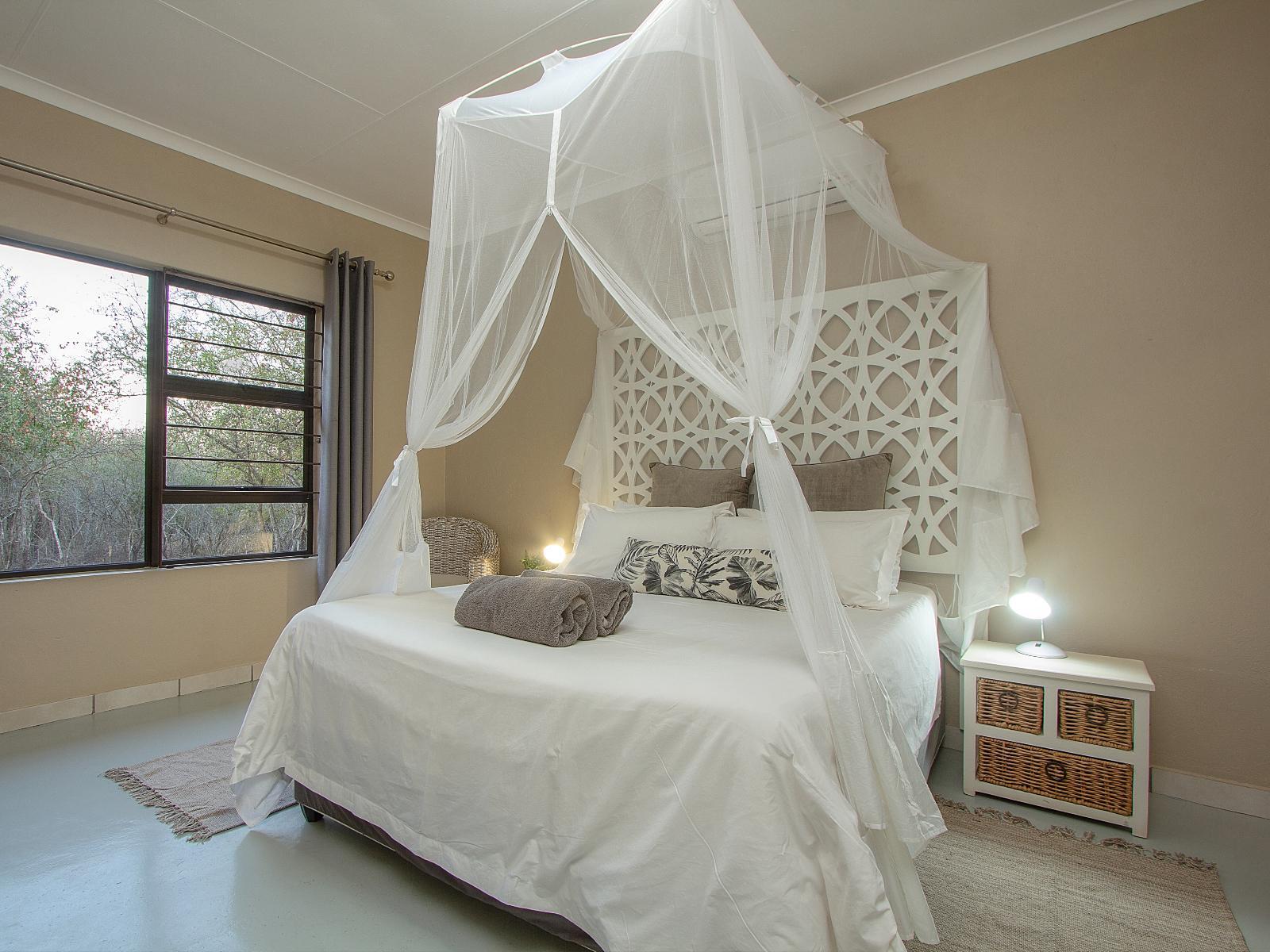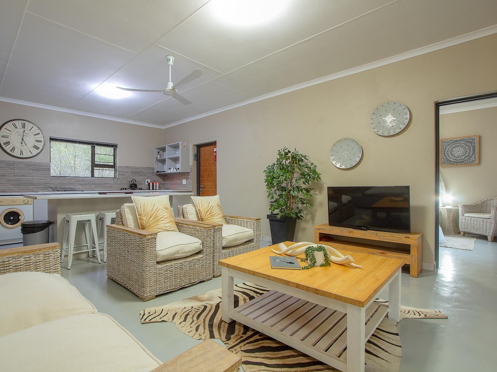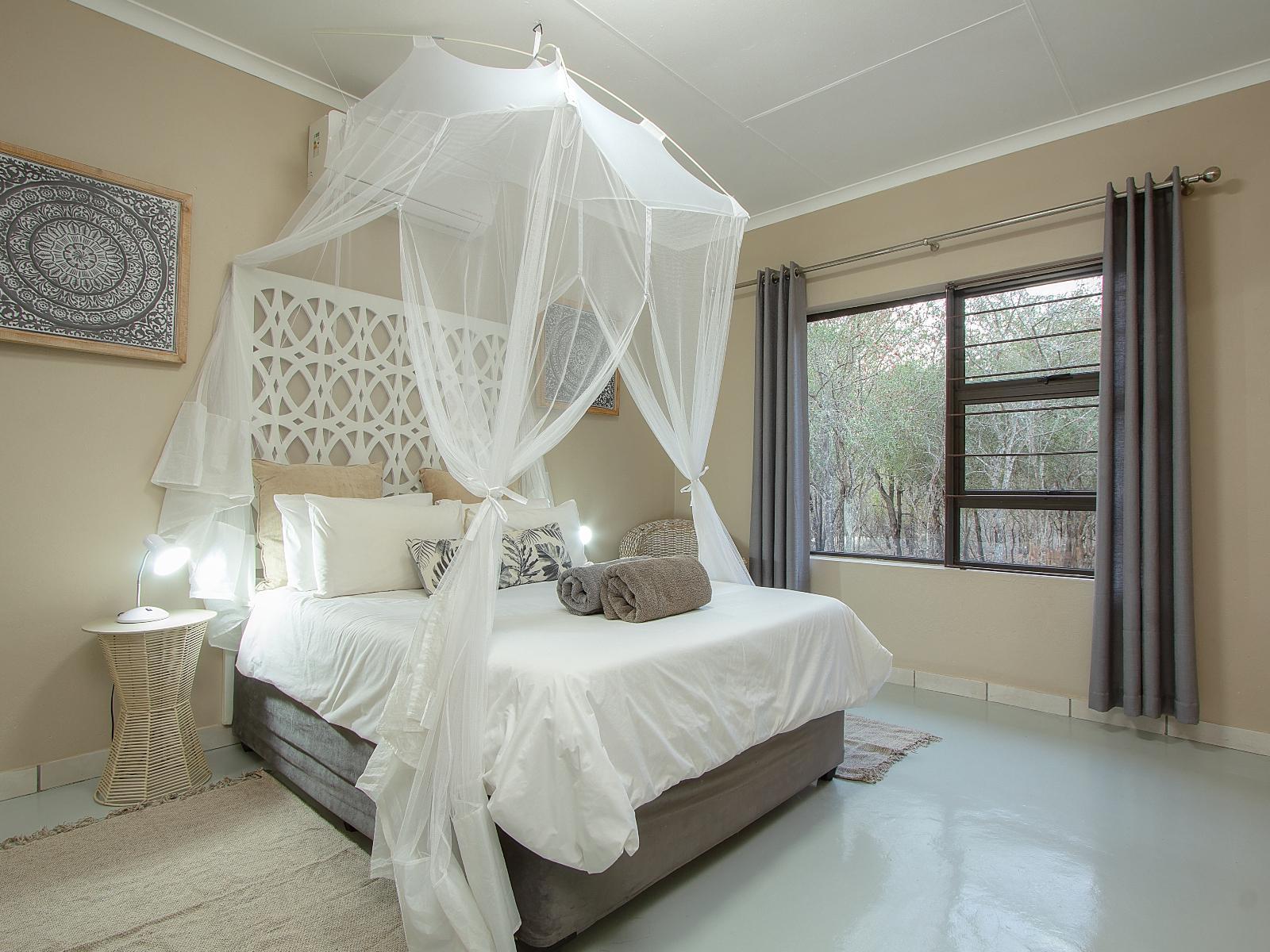 Klein Paradys is situated in Marloth Park and offers quality accommodation for a small family or group of friends. It is within easy reach of the park's shops, restaurants, activities and attractions. The beautifully decorated house comprises 2 bedrooms and can accommodate up to 4 guests at a time. The main bedroom has a queen-size bed and an en-suite bathroom fitted with a shower, toilet and basin. The second bedroom has a double bed and an en-suite bathroom with a shower, toilet and basin. Each room has air-conditioning for those warm summer days. The kitchen is equipped with a stove, oven, fridge-freezer, microwave, coffee- and tea-making facilities, crockery and cutlery. The lounge has comfortable couches as well as a TV and there is a dining area with ample seating where guests can enjoy their meals together. Guests can also enjoy complimentary Wi-Fi access. Netflix and DSTV can be enjoyed with guest' own profile login.