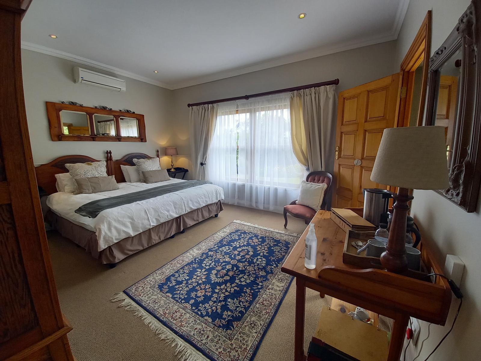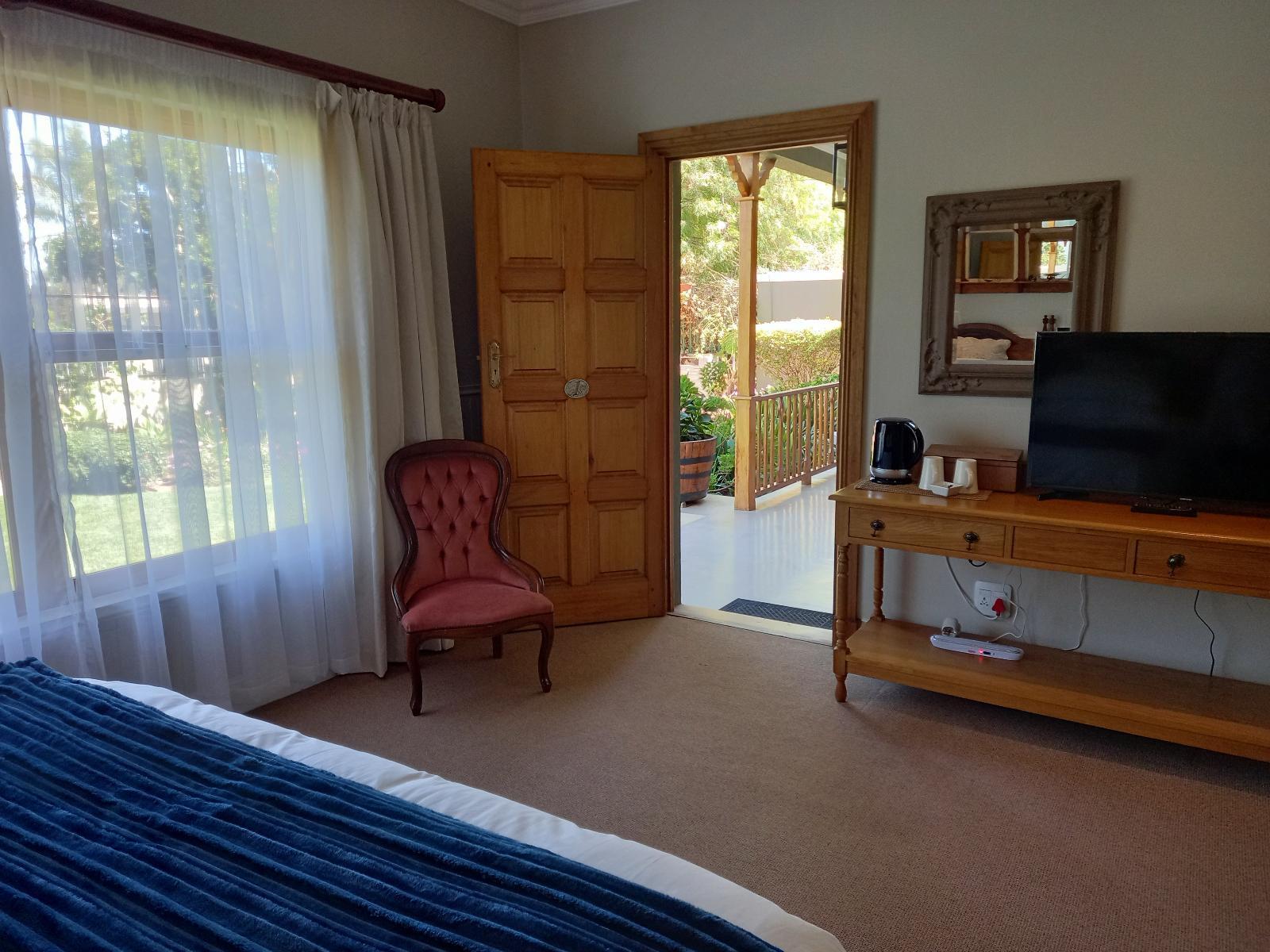 Beautifully decorated, luxurious, large room with beautiful garden view and outside patio. Double slipper bath and shower in en-suite bathroom. Bar fridge and coffee/ tea making facilities.