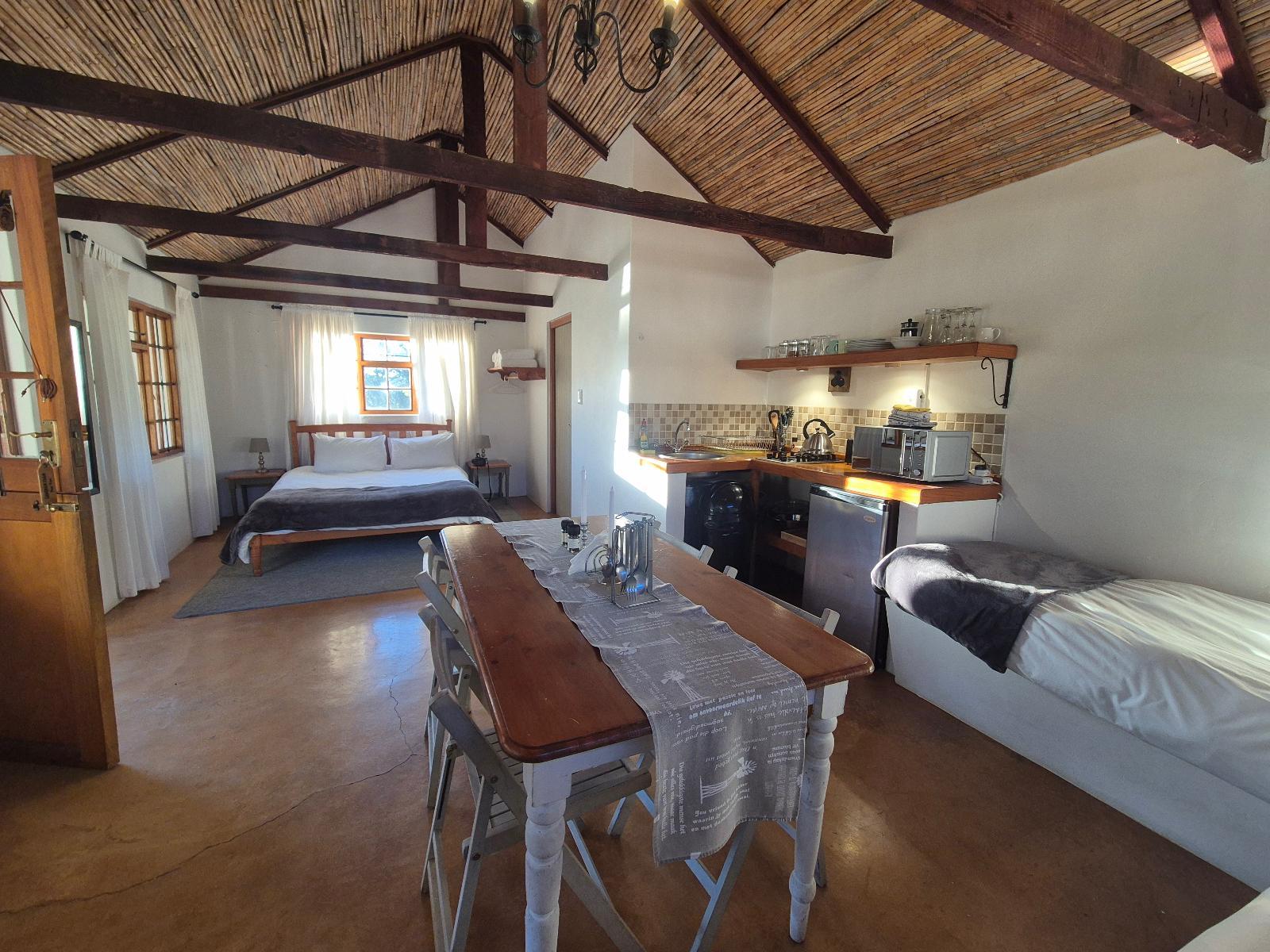 Almond Cottage is family size & designed for easy living with open plan sleeping and dining area. Fully equipped with two ring gas hob, fridge & microwave. Private entrance, stoep, outside braai & indoor fireplace. Linen, crockery & cutlery provided.