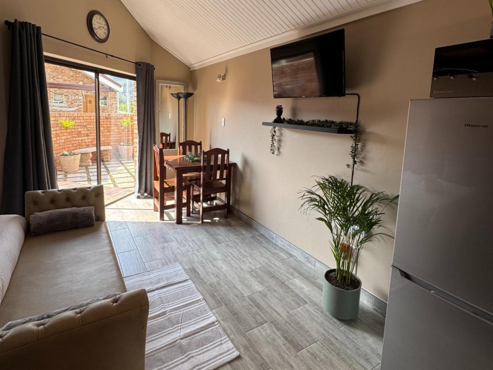 Leanie's Place is a charming self-catering loft apartment located in a secure complex in Clarens. The accommodation is ideal as a base from which to explore the surrounding attractions and beauty the area offers. This fully furnished loft consists of open-plan living with 1 main bedroom containing a queen-size bed with a Sloom mattress and steep stairs leading up to the loft bedroom area that has 1 single bed. There is an electric blanket in the wardrobe if needed. The main bathroom has a walk-in shower, and there is a guest bathroom by the loft area with a toilet and a basin. The unit features a well-equipped kitchenette that contains kitchenware, an induction stove, a kettle, a microwave, a refrigerator, an air fryer, a toaster, cleaning supplies, and a cosy dining table to sit and enjoy meals together. The adjacent lounge offers a free-standing fan and a Smart TV with streaming apps, so guests can log in with their own credentials and stream media using the free Wi-Fi. Guests are welcome to make use of the outdoor furniture and the BBQ/braai facilities and utensils on the patio, overlooking the cute small garden. Free undercover parking is available on-site – no reservation needed to reserve parking. The town offers an array of activities to experience and there are spots to watch live broadcast sports events or enjoy live music/performances. Guests can go hiking in the area, visit the golf course (within 3 km), or relax and rejuvenate themselves at the spa and wellness centre nearby.