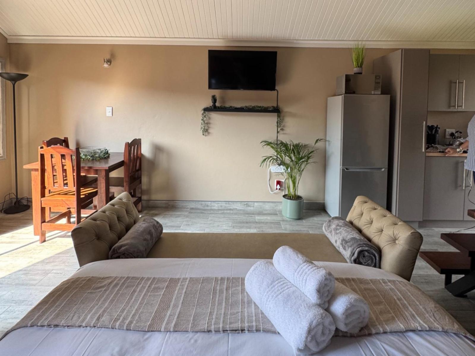 This charming open-plan loft apartment consists of 1 bedroom and an upstairs loft area with 1 single bed and 1.5 bathrooms. The unit features a kitchenette with an air fryer and induction stove, and guests can enjoy using the free Wi-Fi and BBQ/braai.
